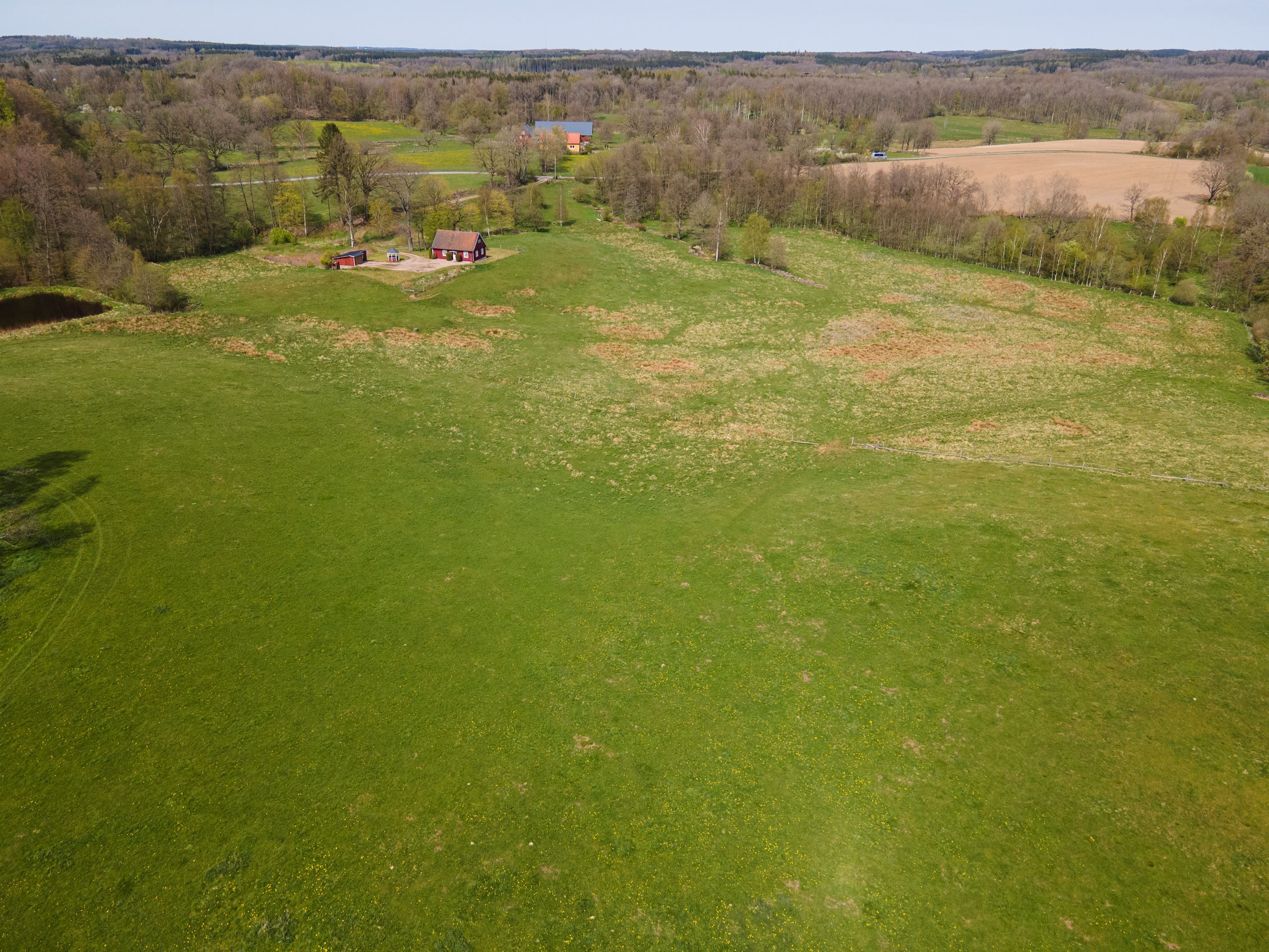 Marken till gården är fördelad på cirka 3 hektar skog samt 14 hektar åker- och betesmark, vilket skapar goda förutsättningar för djurhållning, odling eller annan lantlig verksamhet.