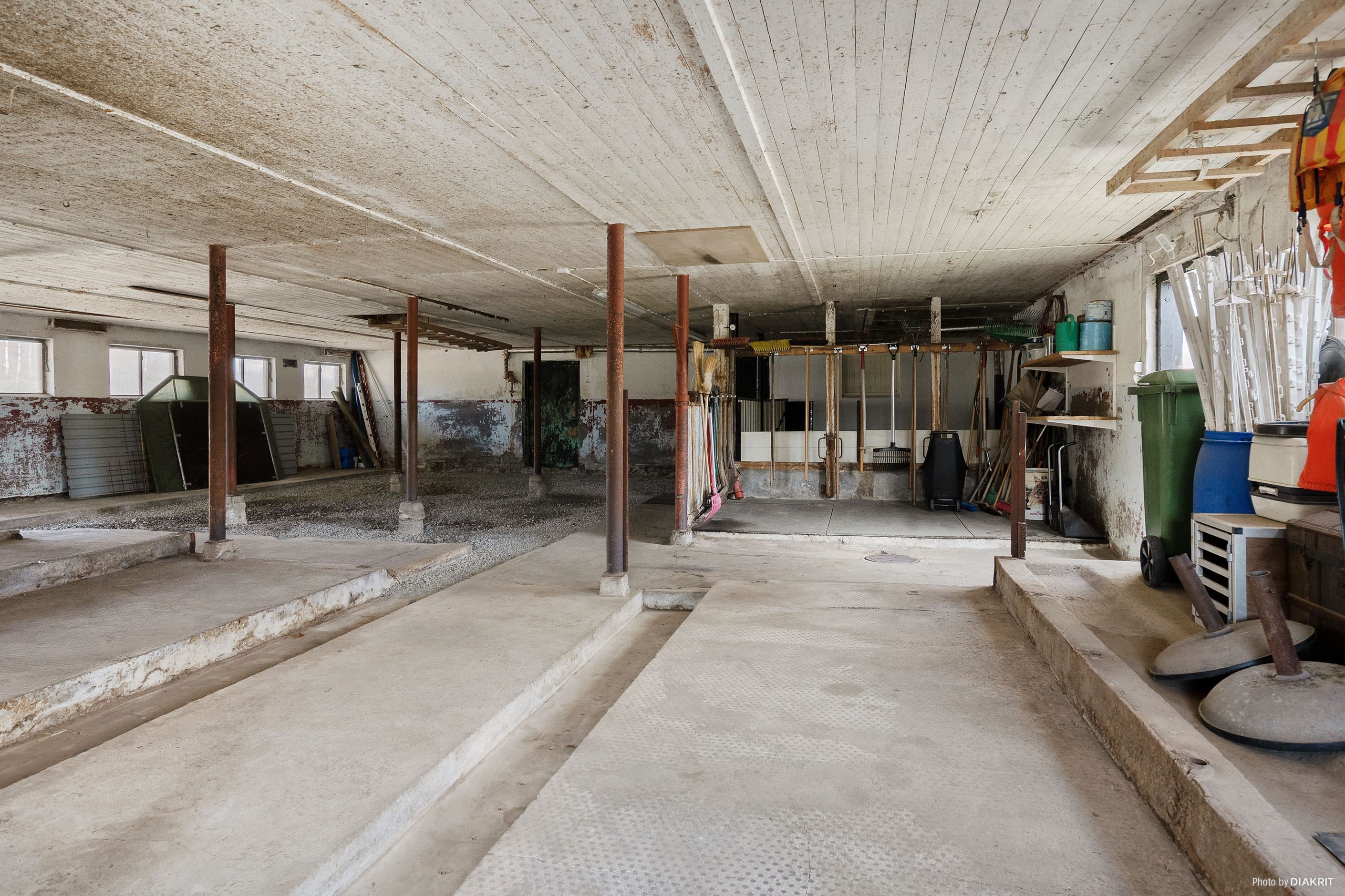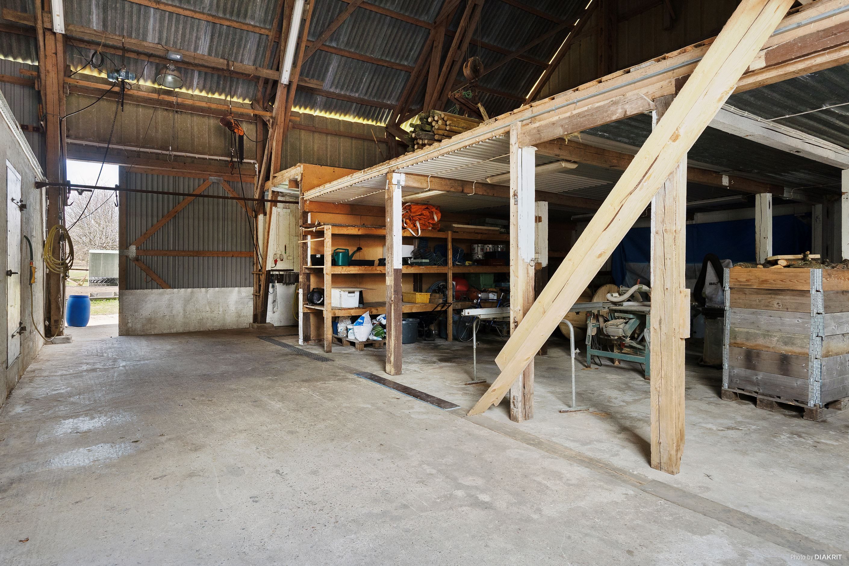 Vidare finns en stallbyggnad med loge, inrett badrum och tvättstuga. Stallet har tidigare använts för kor, men har under senare tid påbörjats anpassning för hästhållning. En stor del av den äldre betongen har bilats upp för att möjliggöra gjutning av ny platta och installation av hästboxar, vilket ger nästa ägare en flexibel möjlighet att färdigställa efter egna behov. Markområdet runt stallet har dessutom under 2025 hägnats in till hagar, särskilt anpassade för hästar.