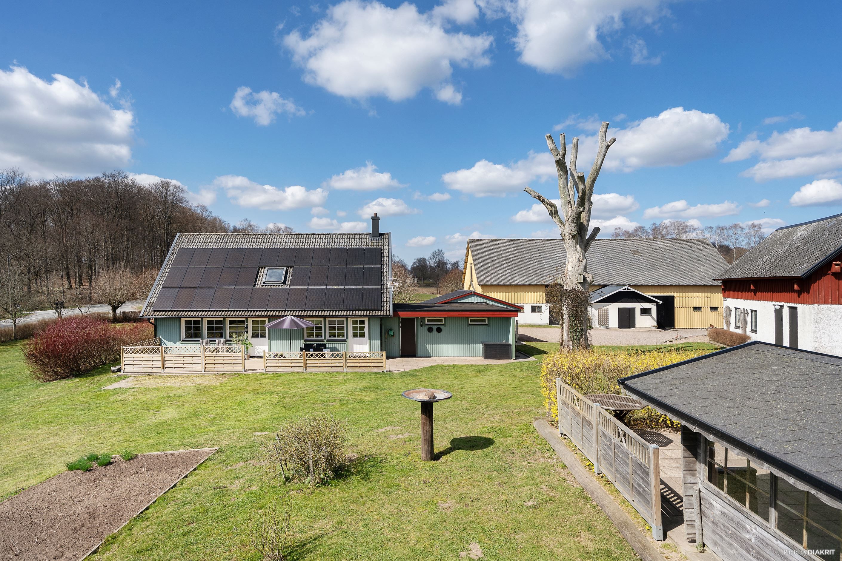 Gårdens boningshus om 148 kvm rymmer 6 rum och kök, varav 4 sovrum och två badrum. Här finns gott om förvaringsutrymmen och huset har löpande underhållits med flera större åtgärder, såsom installation av solceller 2018 och ny 3-kammarbrunn 2016. Runt huset breder en charmig och välskött trädgård ut sig om ca 2 500 kvm med flera uteplatser, trädgårdsland samt nyligen uppfört staket och grind som skapar en tydlig och trivsam inramning.