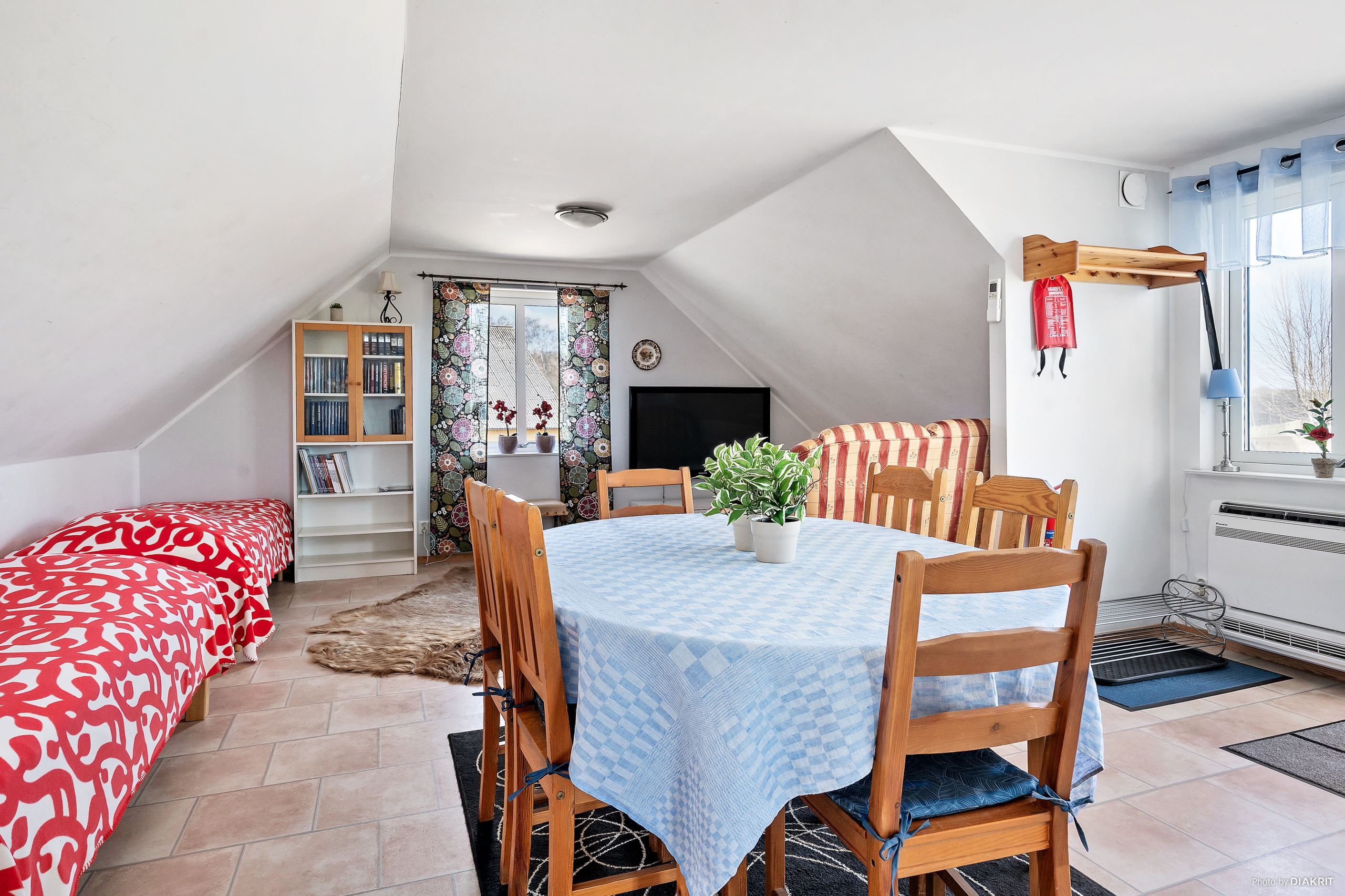 Intill boningshuset finns ett gästhus om ca 50 kvm med kök, allrum och sovrum. Gästhuset har under åren hyrts ut löpande och lockat många återkommande gäster – ett utmärkt komplement för den som önskar extra inkomster eller plats för besökare.