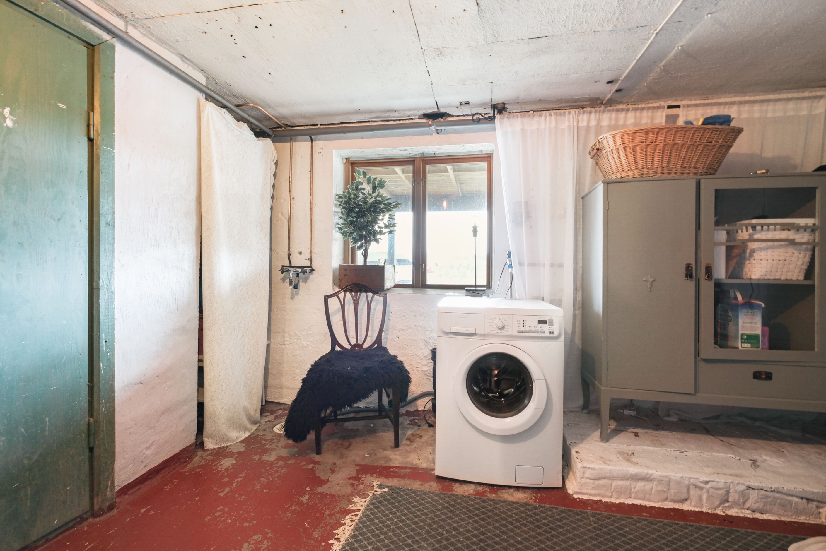 Källarplanet är oinrett och rymmer tvättstuga, pannrum, förråd, garage och matkällare – perfekt för dig som vill skapa egna lösningar. På tomten finns dessutom ett praktiskt dubbelgarage med två portar. Fastigheten värms upp via sjövärme, vilket ger en fördelaktig driftsekonomi. Fiber finns installerat.