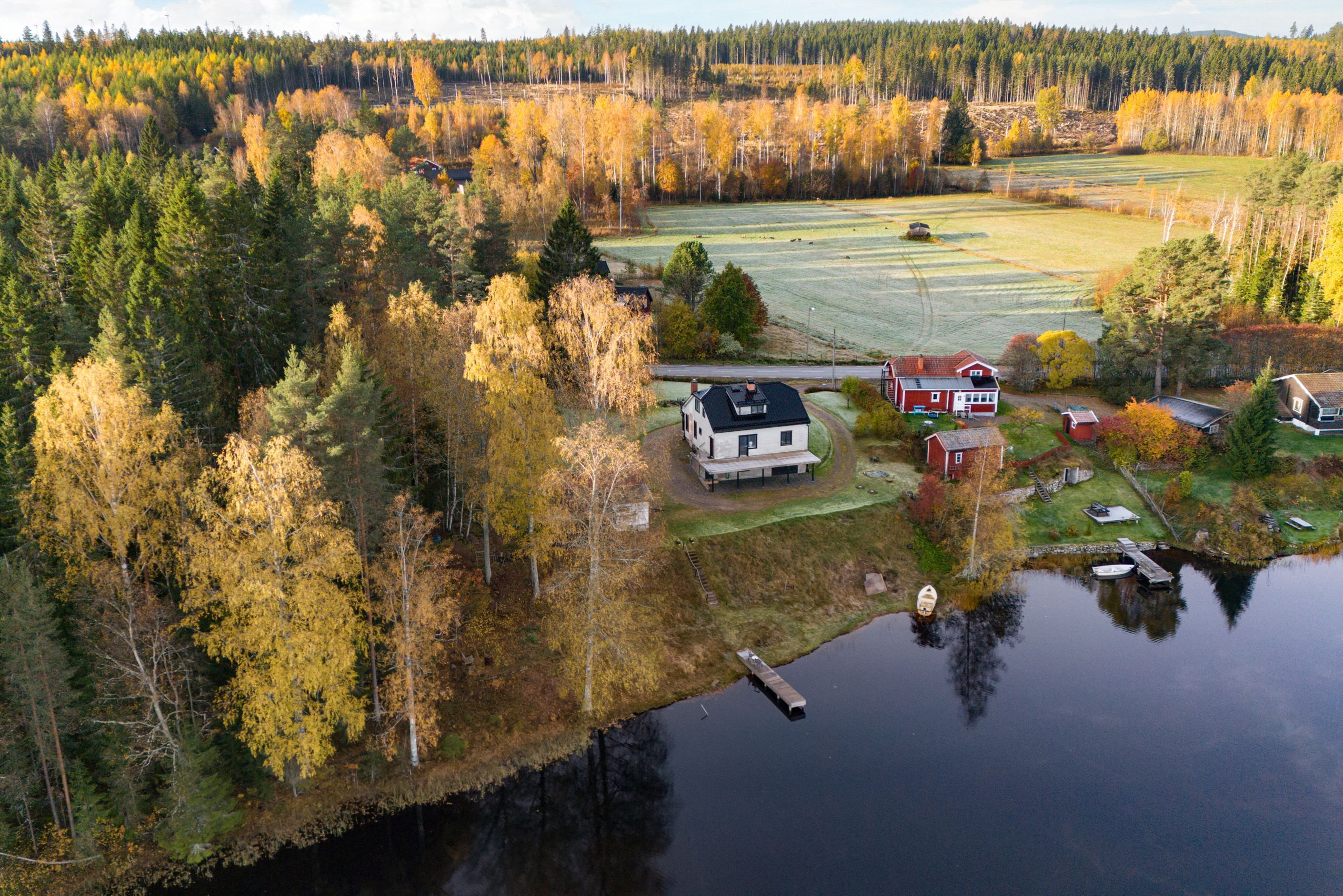 Här bor du ostört och naturnära med sjötomt och egen brygga – en plats för lugn och ro året runt. Föreställ dig tidiga morgnar med dimman som lättar över vattnet, ett dopp från bryggan och kvällar på altanen i stillhet.