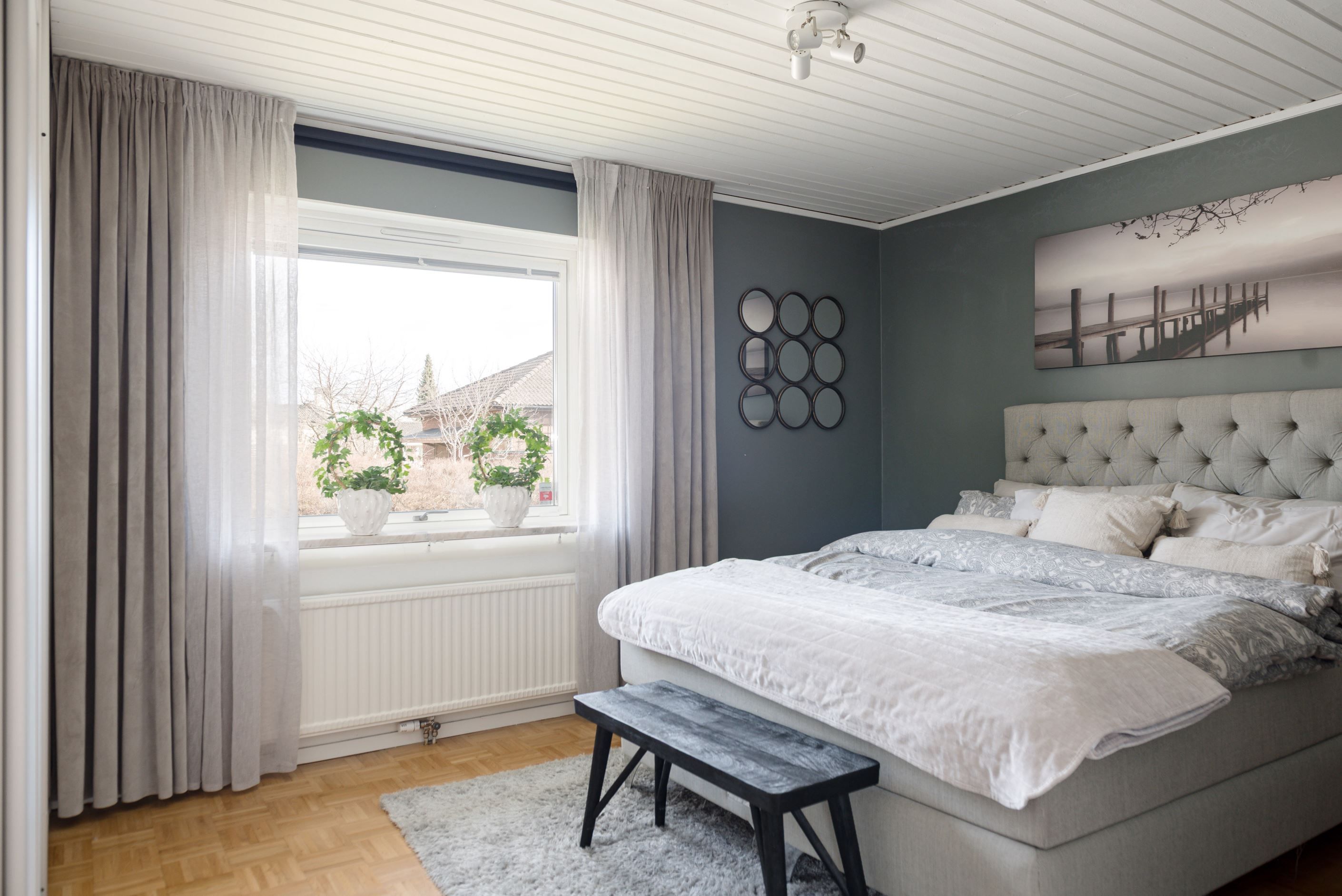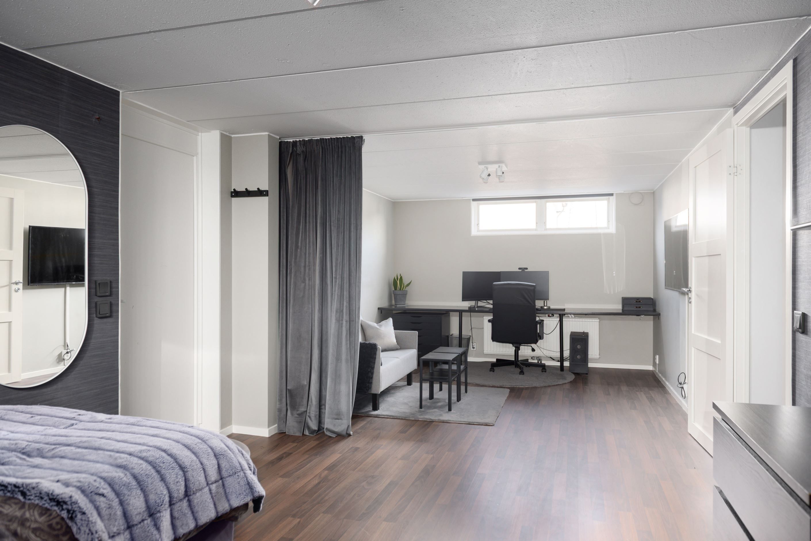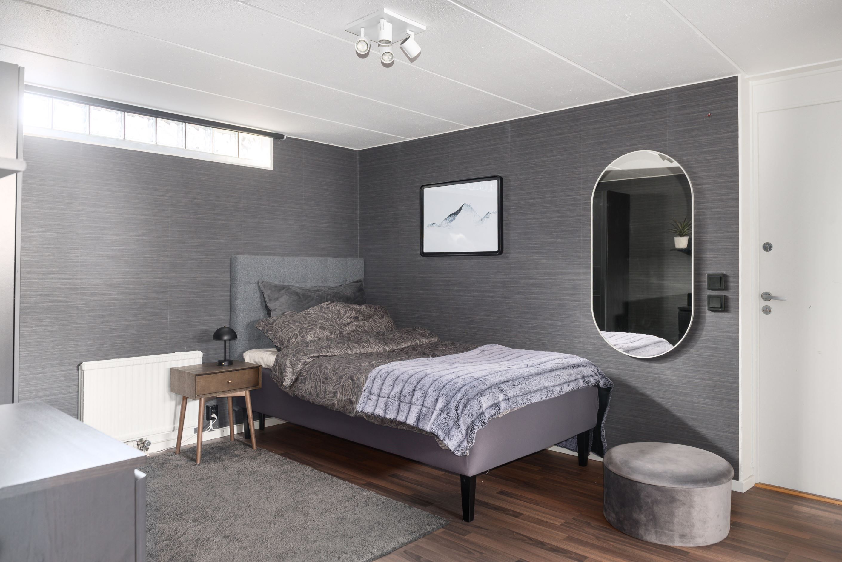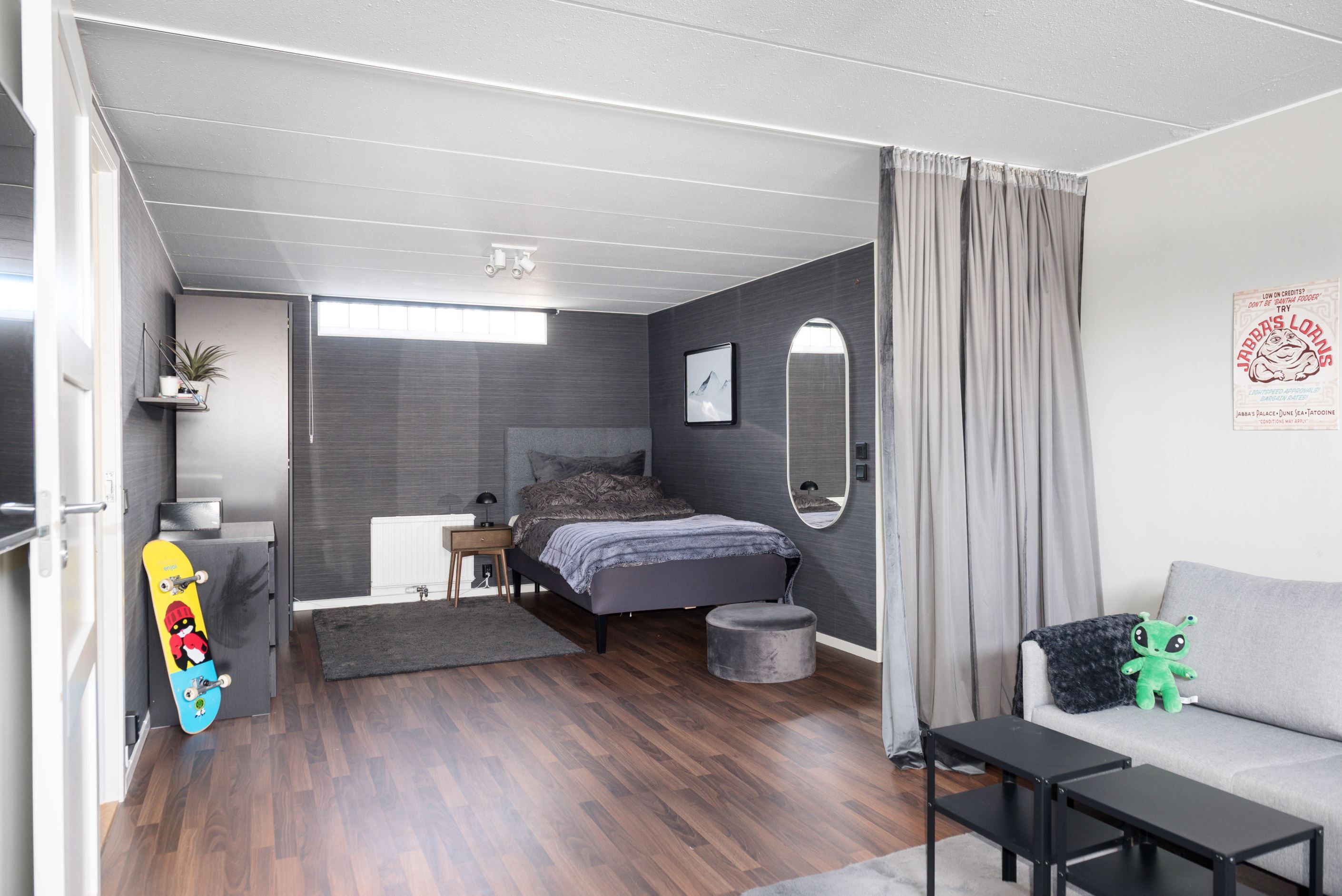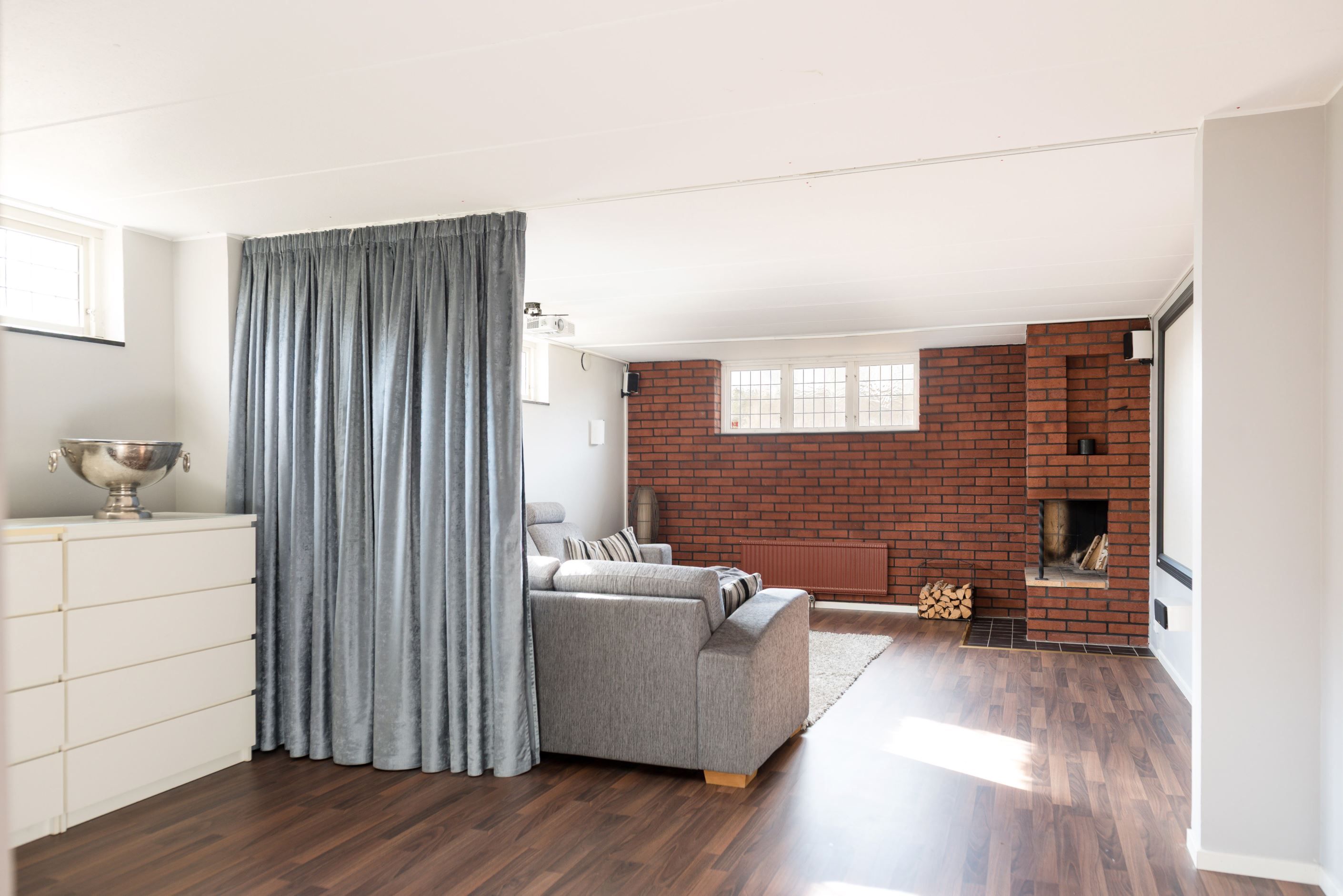 Sovrummen är trivsamma och rogivande med bra förvaringsmöjligheter, och badrummen är helkaklade. Sammantaget är detta ett hem som kombinerar funktion, trivsel och en varm atmosfär – här är det lätt att känna sig hemma. Källarplanet erbjuder ett rymligt allrum med eldstad, gott om förvaringsytor, rymlig tvättstuga, pannrum samt badrum med relax-del. Möjlighet till flertalet sovrum samt ingång till det vidbyggda garaget med både plats för bil, arbetsytor och förvaring.