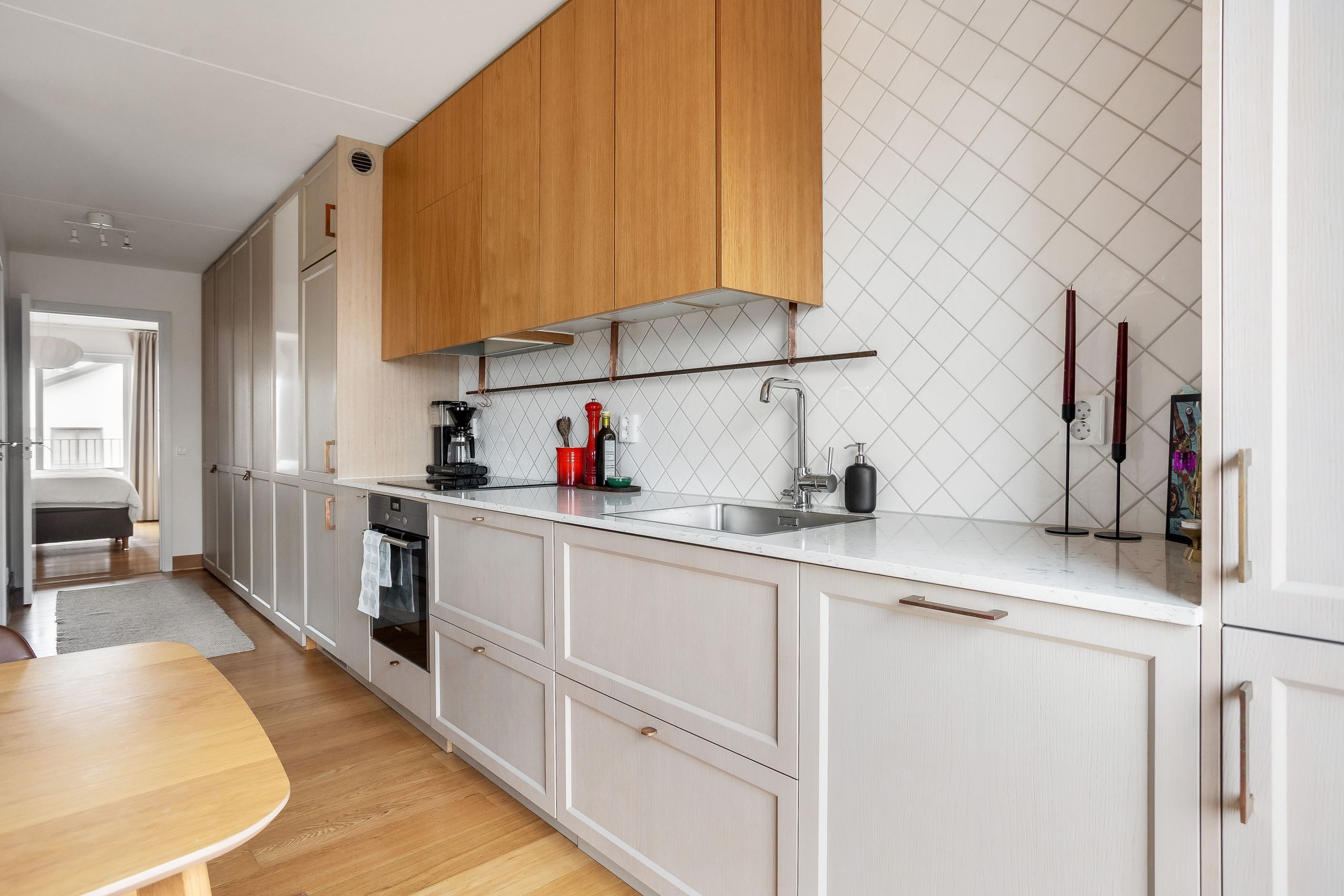 Välkomna till denna fantastiska lägenhet på 56 kvm med solig balkong i sydvästläge. Trevligt planerad med bra sociala ytor och öppen planlösning. Lättmöblerad och ljus sällskapsdel med stora fönsterpartier. Rymligt sovrum med plats för dubbelsäng. Exklusiva materialval och gott om förvaringsmöjligheter. I huset finns det hiss som enkelt tar dig upp till föreningens gemensamma takterrass.