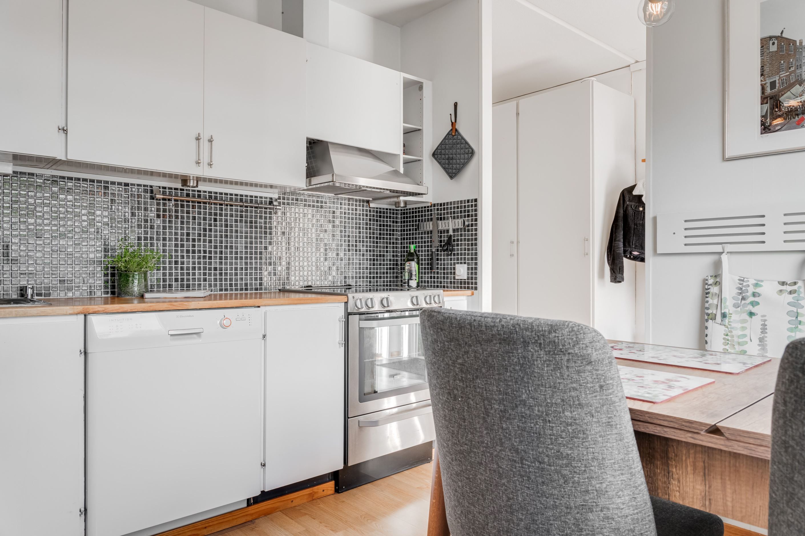 Välkommen till denna mycket fina etta om 47 kvm, perfekt för dig som söker ett hem med både komfort och bekvämlighet. Den rymliga hallen leder ut till en stor balkong som vetter mot innergården, vilket ger en härlig plats för avkoppling. Köket är smakfullt inrett med ljusa köksluckor och har gott om förvaringsmöjligheter. Mosaik ovanför diskbänken, diskmaskin och en rymlig matplats gör det idealiskt för både vardag och fest. Vardagsrummet, med sina stora fönster och fantastiska ljusinsläpp, erbjuder generöst utrymme med plats för säng eller sovalkov.