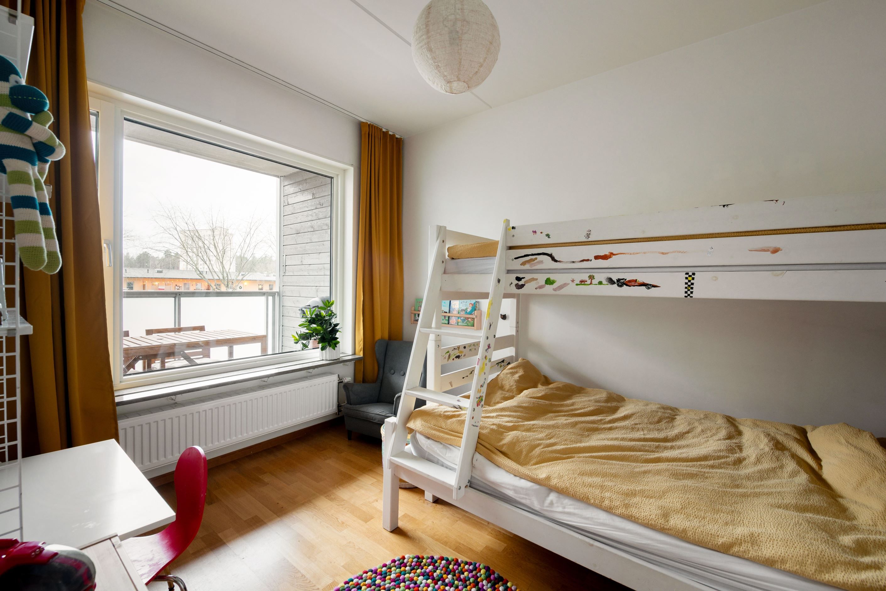 I de tre sovrummen ryms ett komplett sovrumsmöblemang och invid ett av dem finns en rymlig klädkammare.