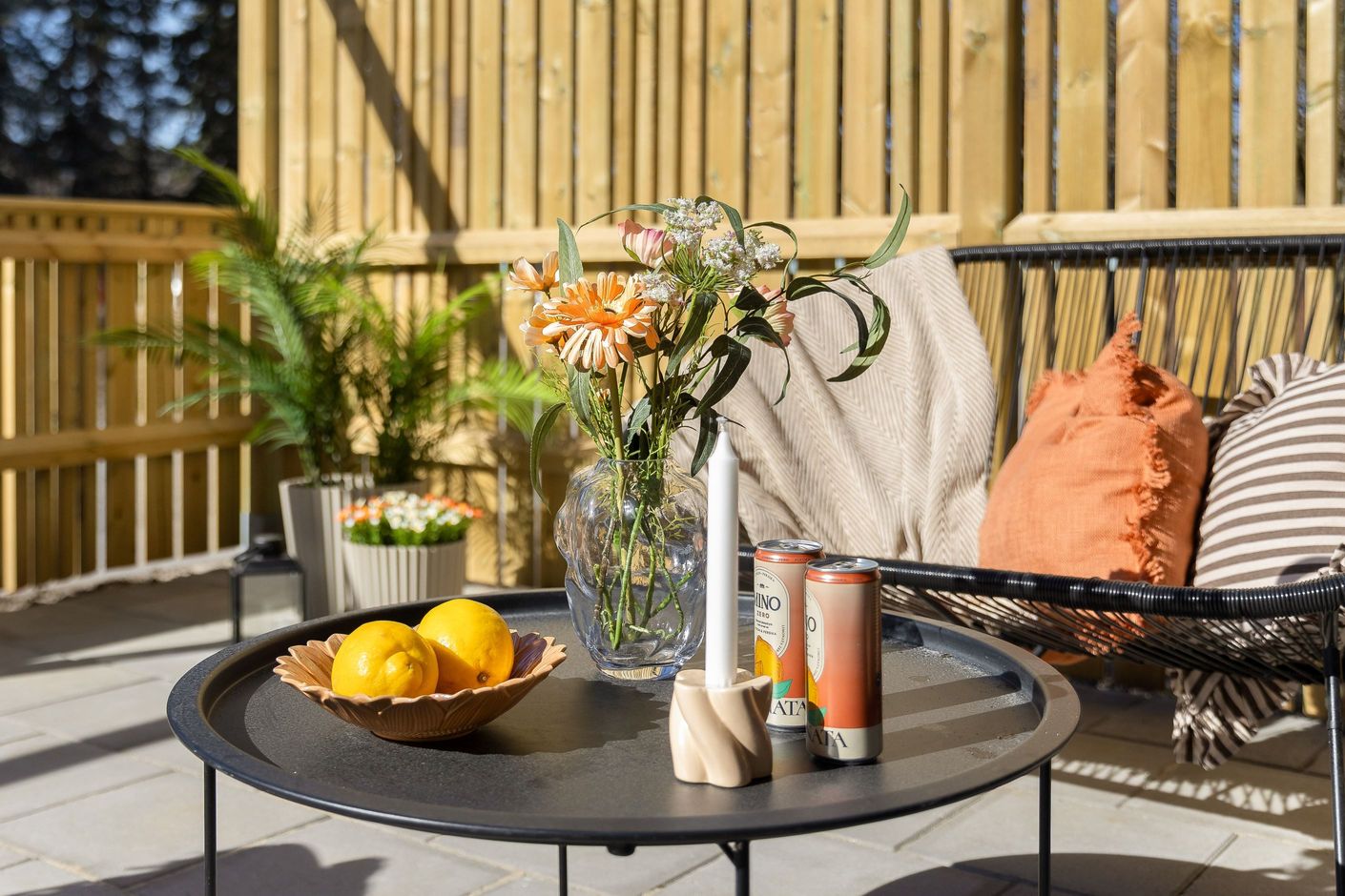 Bostaden erbjuder tre rymliga sovrum och två stilrena, helkaklade badrum, varav ett är utrustat med både tvättmaskin och torktumlare för en smidig vardag. Det moderna köket från Vedum är utrustat med alla bekvämligheter man kan önska och ligger i en delvis öppen planlösning mot vardagsrummet, vilket skapar en social och luftig känsla. Ett av hemmets absoluta guldkorn är de dubbla uteplatserna, där den ena vetter mot väst och bjuder på härlig eftermiddags- och kvällssol. Ett perfekt läge för middagar utomhus eller avkoppling efter jobbet. I bostaden finns även ett rymligt förråd.