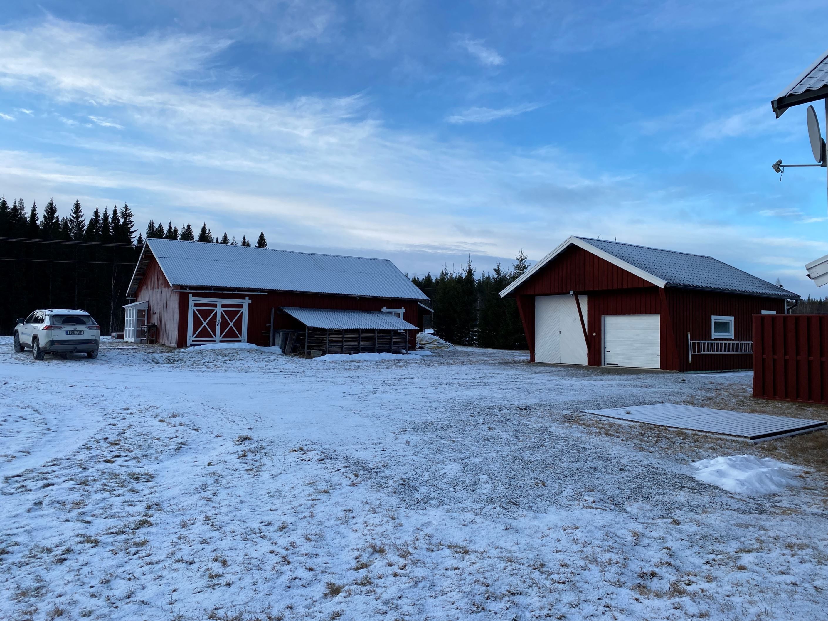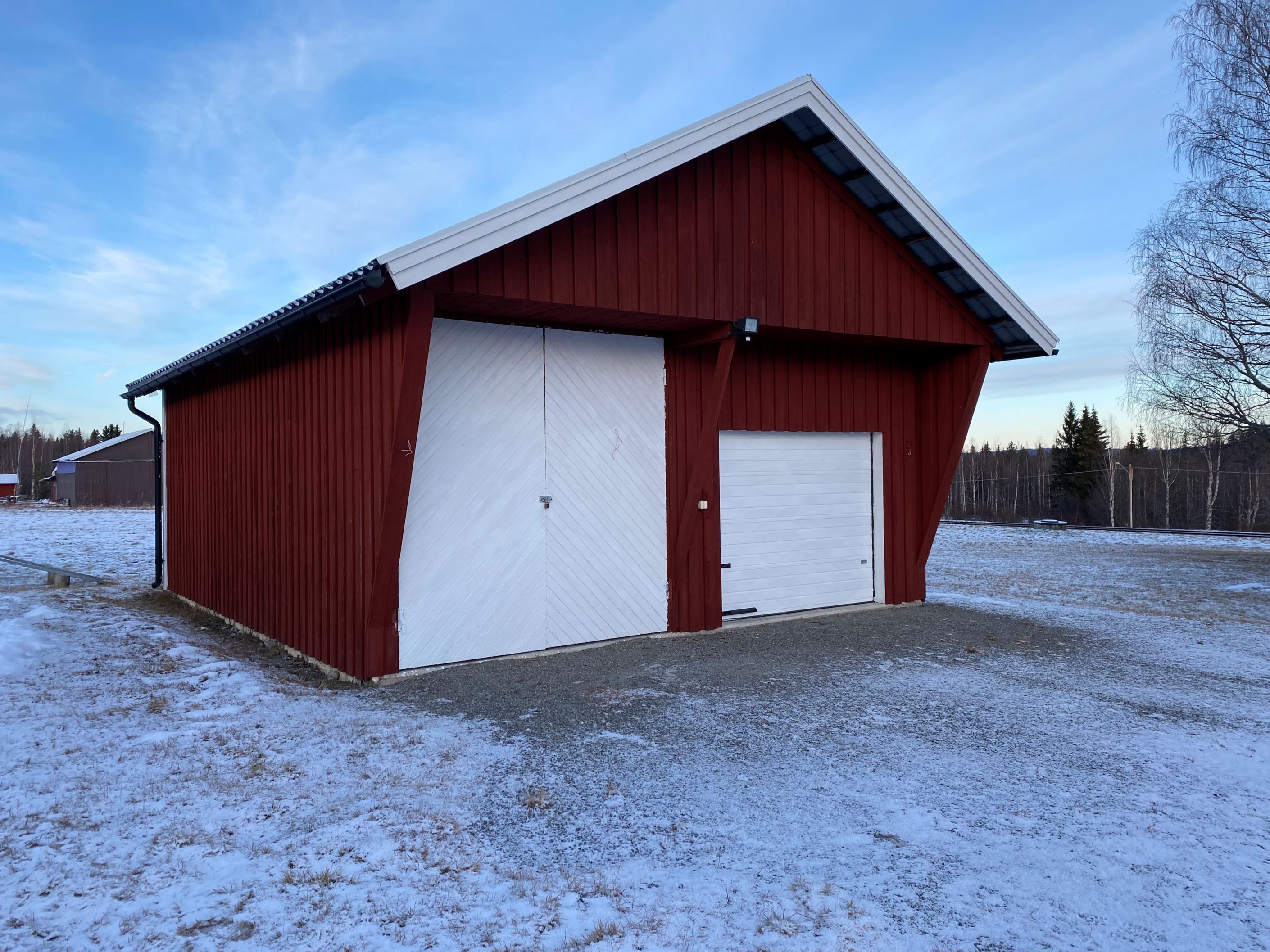 Garage byggt 1997 som är ca 40 kvm har en varmbonad del med plats för en bil och en kall del med plats för traktor, husvagn eller liknande. I garaget finns även en toalett med dusch.