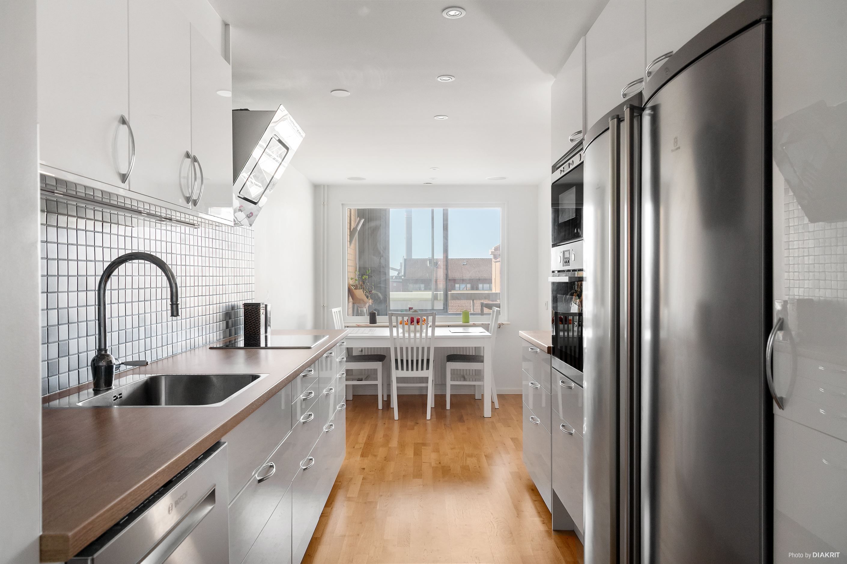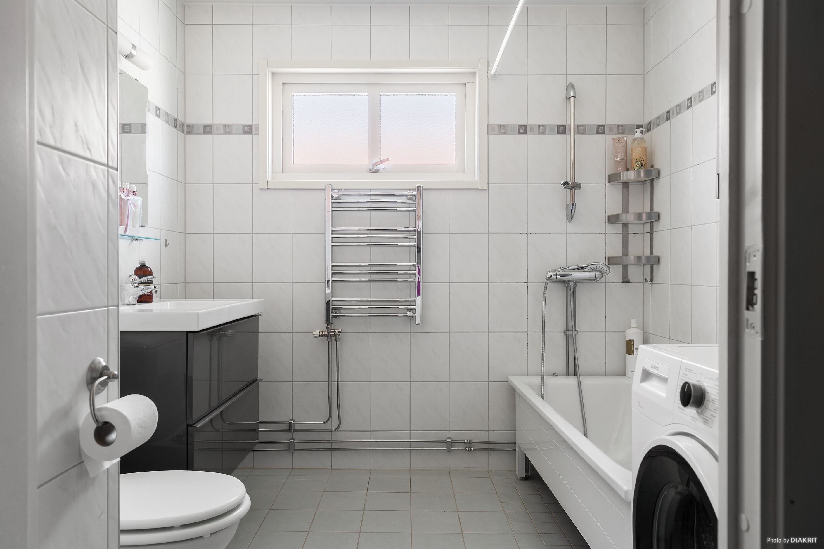 Köket är funktionellt utformat med en trevlig matplats i anslutning. Badrummet renoverades 2018 och är utrustat med badkar. Vidare erbjuds två sovrum i fil, varav det ena har praktiska garderober.