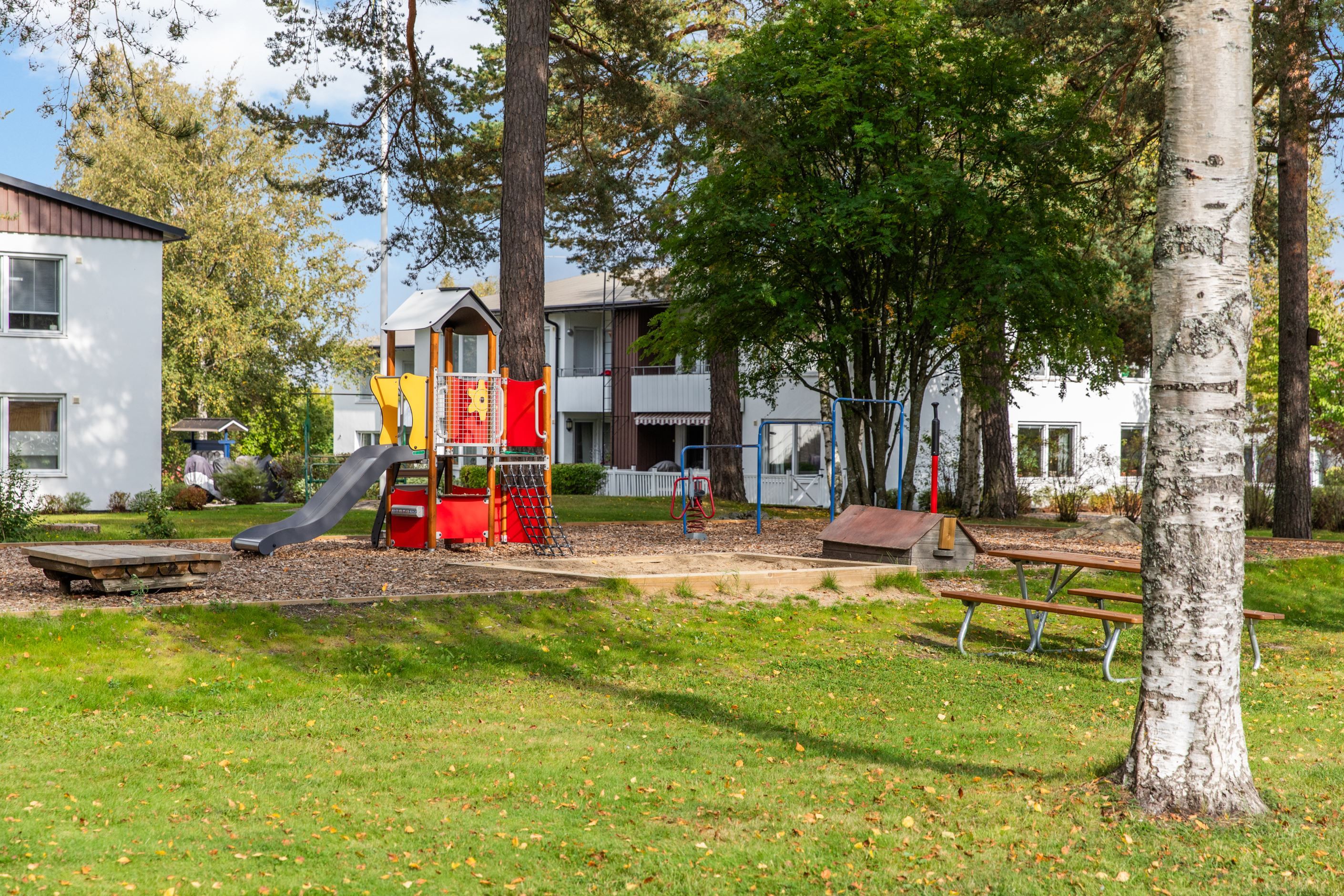 En helt fantastisk uteplats med med direkt tillgång till föreningens stora grönområden.
