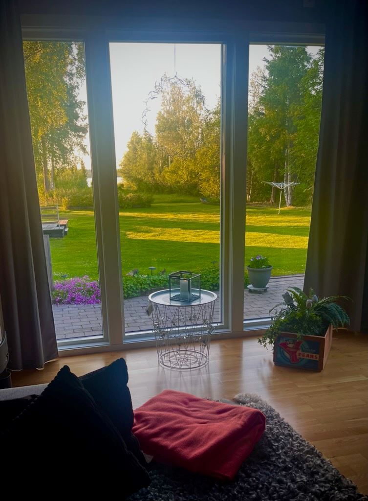 Här kan man njuta av vatten utsikt och de sprakande ljudet från någon av de två kaminerna som finns monterade i både i vardagsrum och köket.