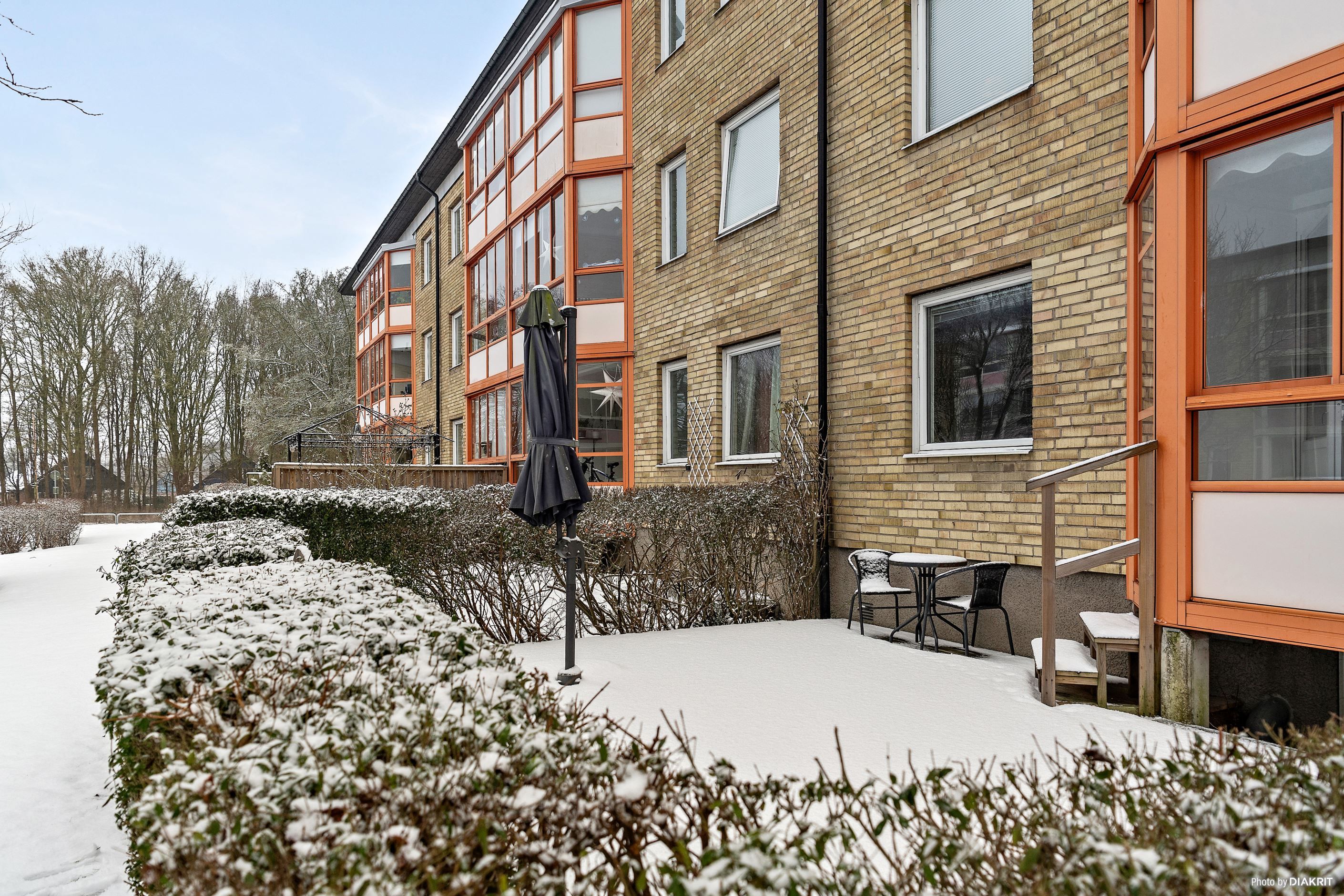 Välkommen till en trivsam och välplanerad 2:a i markplan med både inglasad balkong och uteplats!