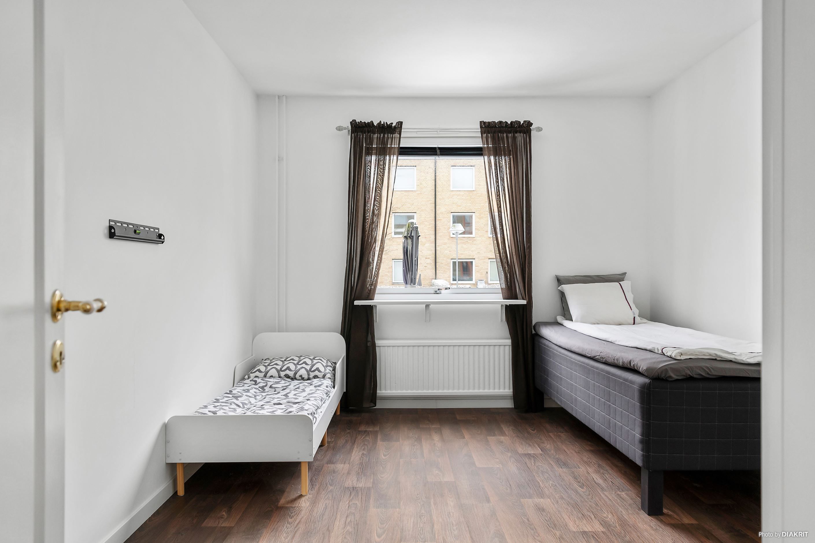 Med ingång från hallen till sovrummet. Rymligt rum med laminatgolv.