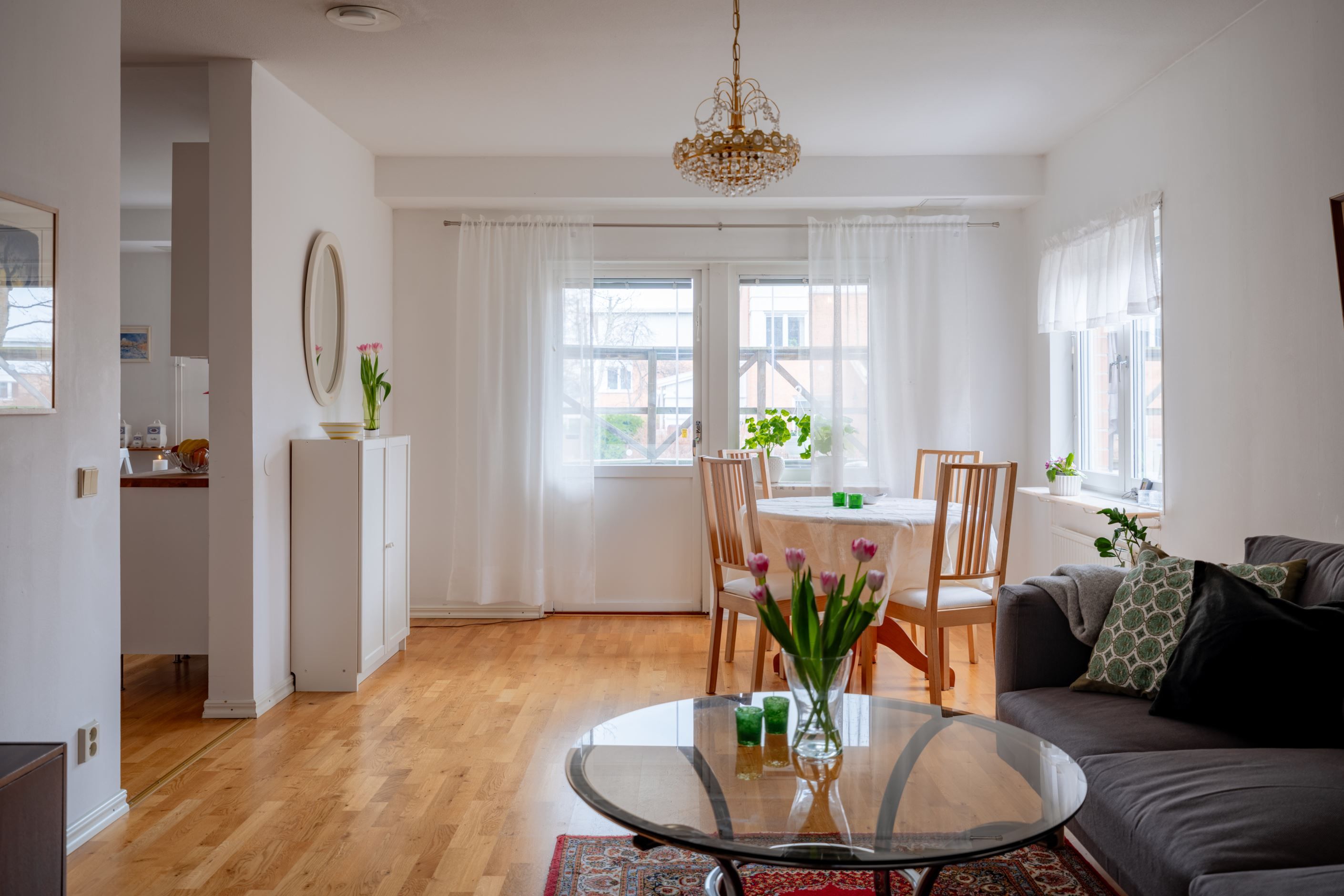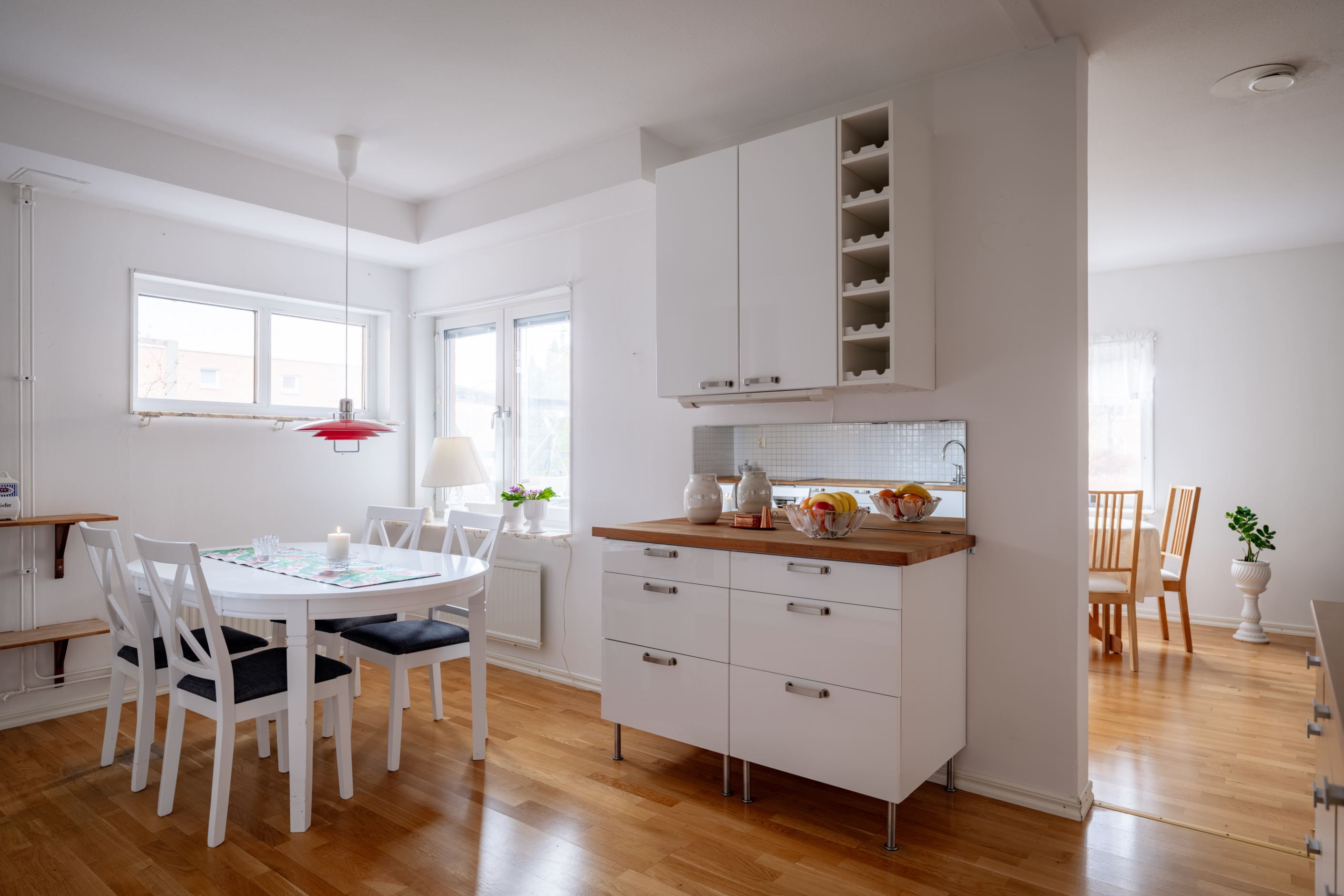 Här finns även ett inbjudande stort vardagsrum med plats för matplats och soffgrupp samt access ut till uteplatsen i söderläge.
