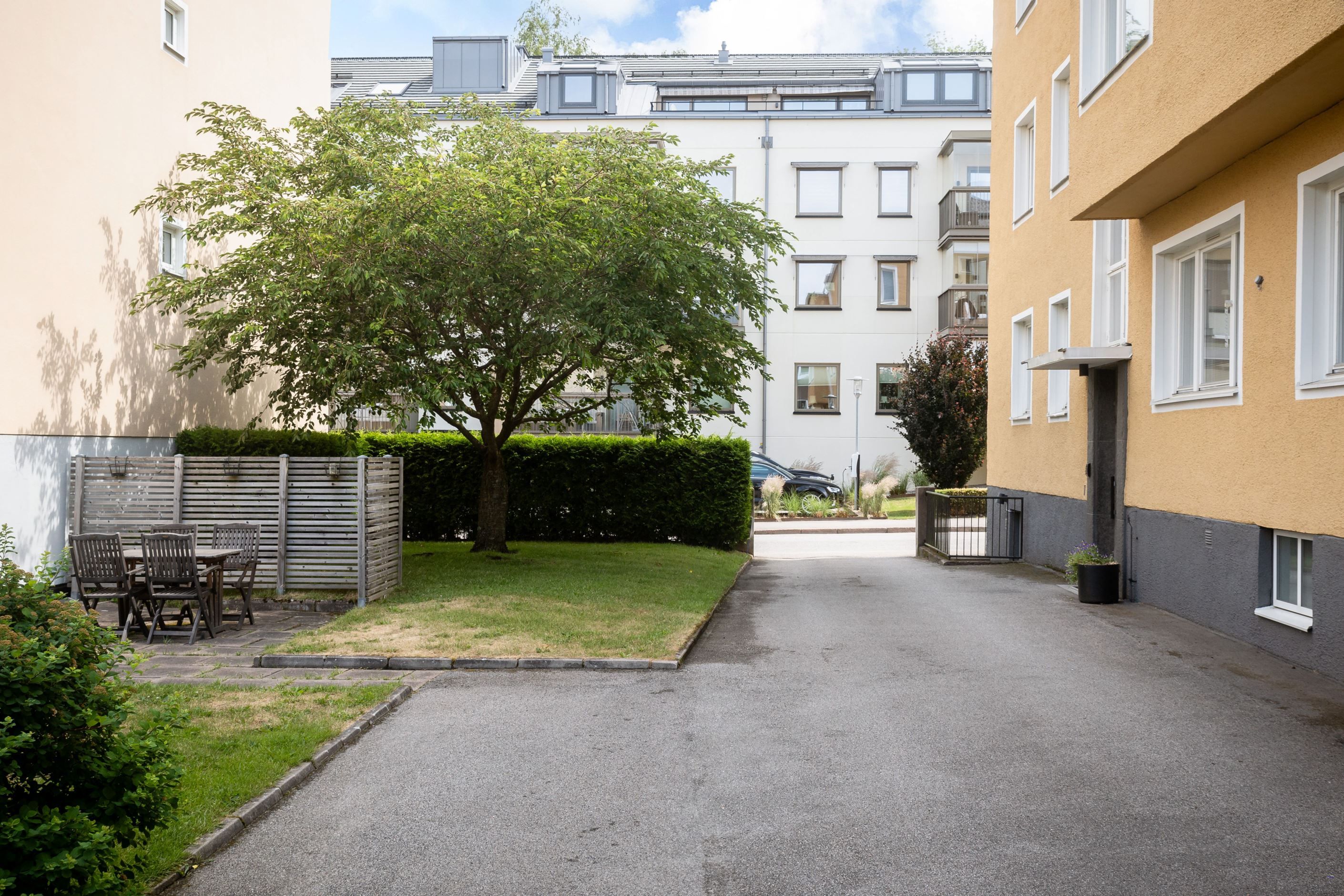 Väl omhändertagen gaveltrea med balkong på attraktiv adress