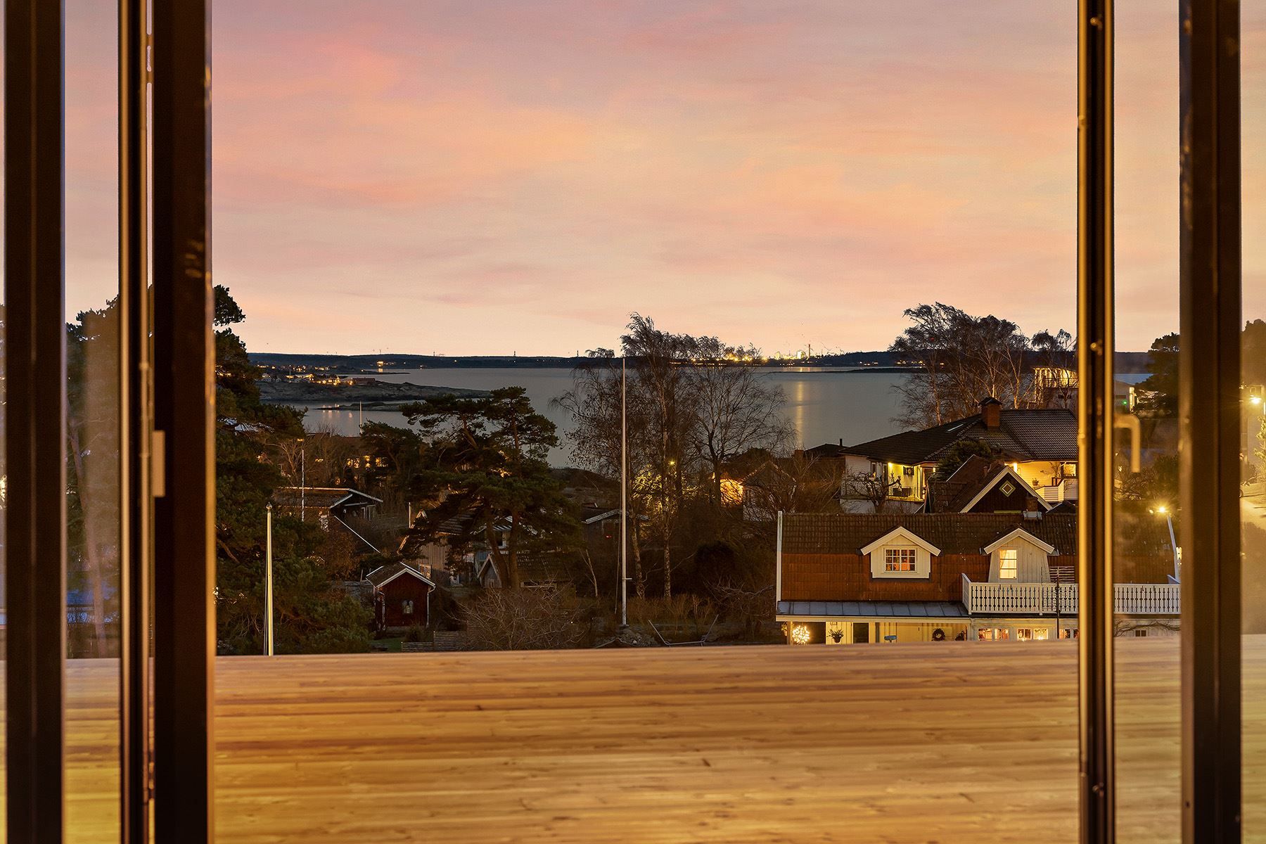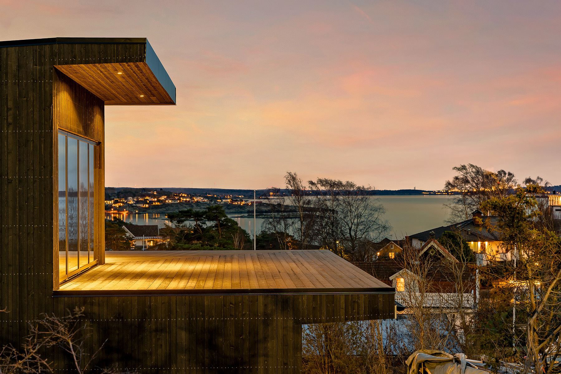 Havsutsikt från nybyggd, stor och exklusiv villa.