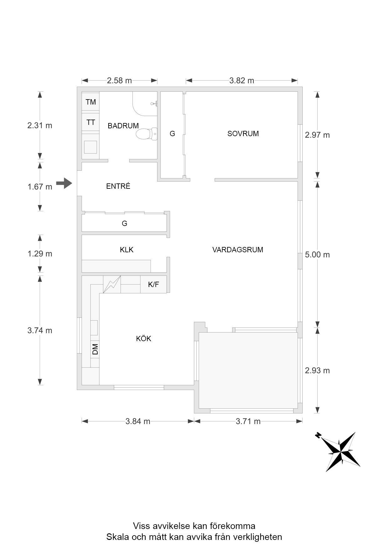 Ljus och modern lägenhet med inglasad balkong och hiss