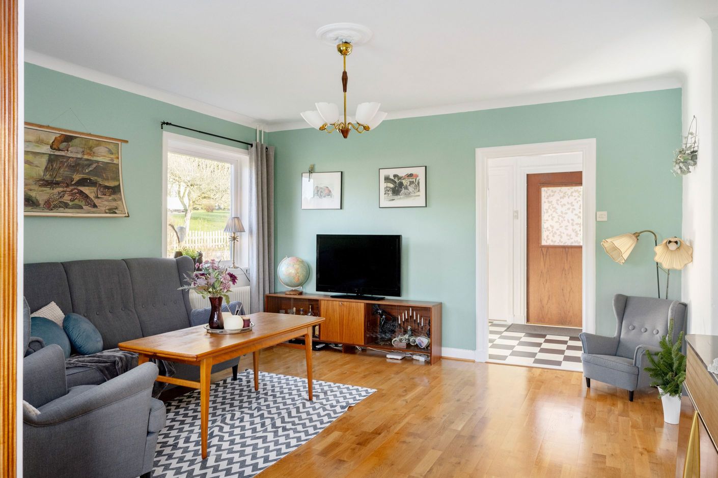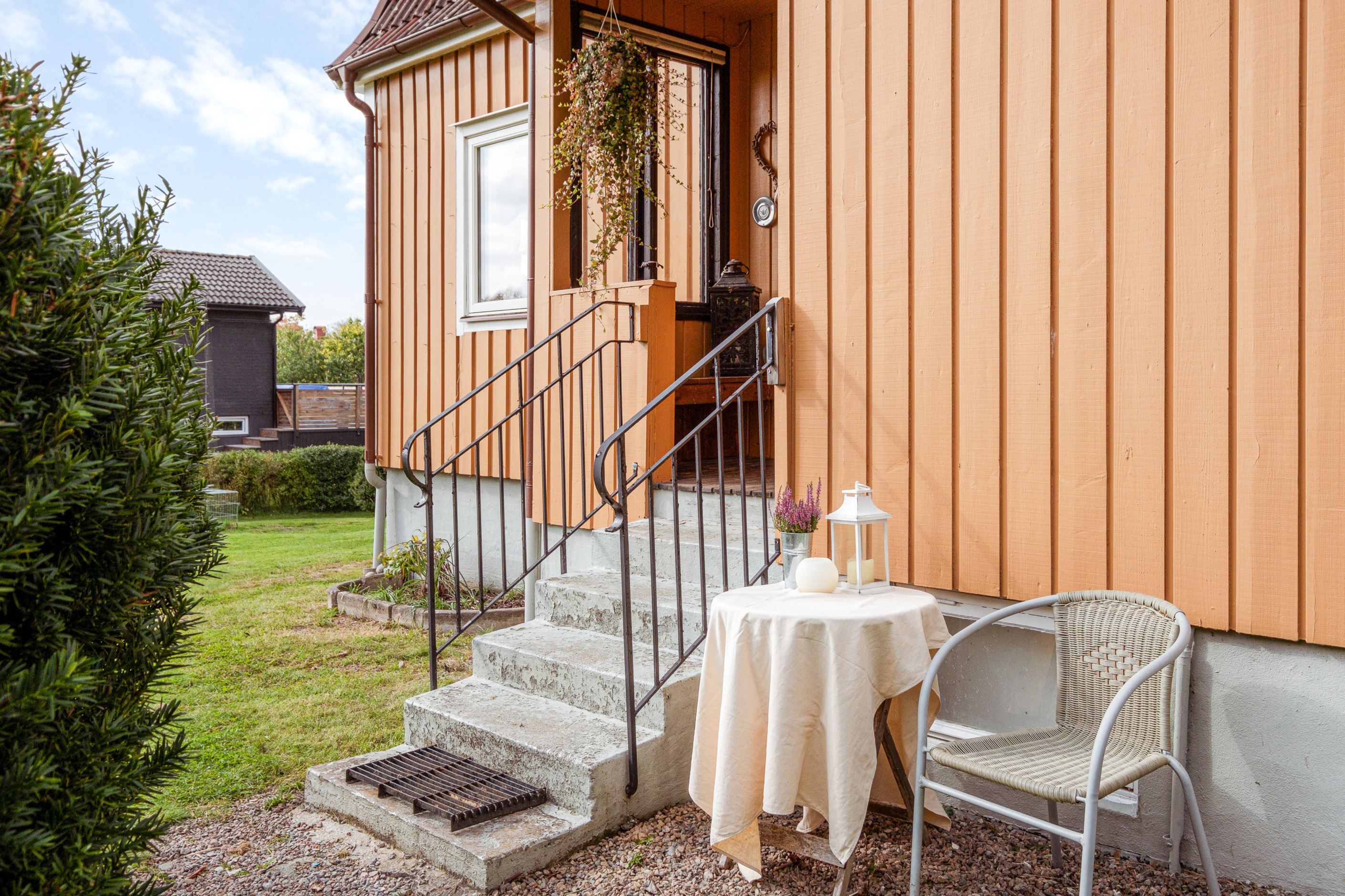 Huset byggdes 1927 och byggdes om 1979, men har bevarat mycket av sitt ursprungliga uttryck. Entréplanet rymmer ett inbjudande vardagsrum med utgång till terrass/altan – en naturlig förlängning av bostaden under årets varmare månader. Köket går i originalstil och andas tidlös charm – här finns en varm och hemtrevlig känsla som är svår att återskapa i nyproduktion. Här finns även ett sovrum samt WC.