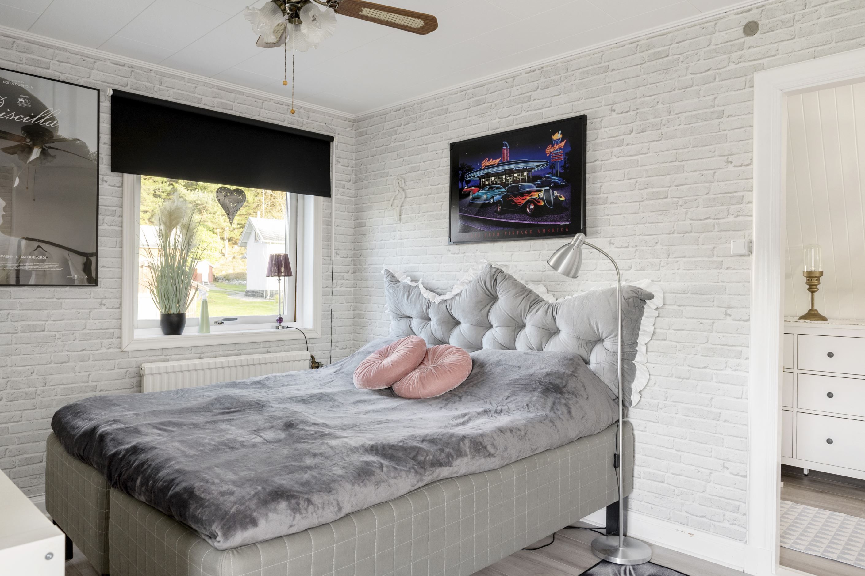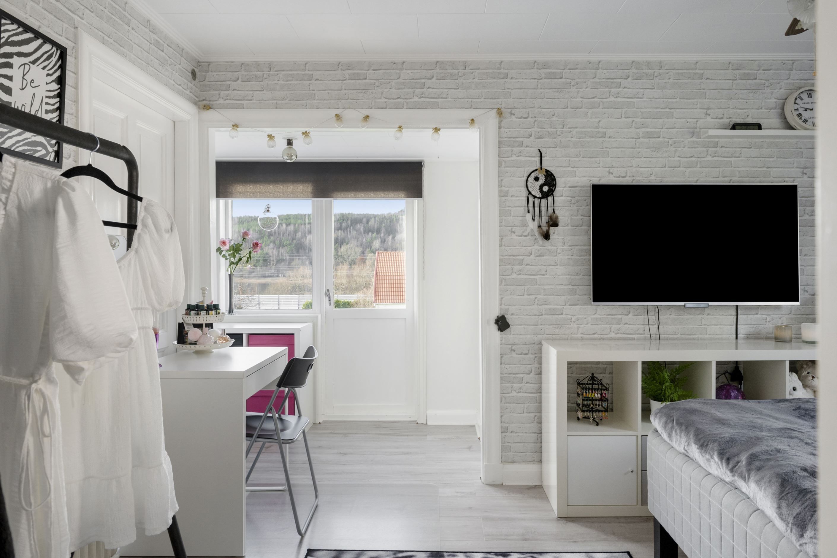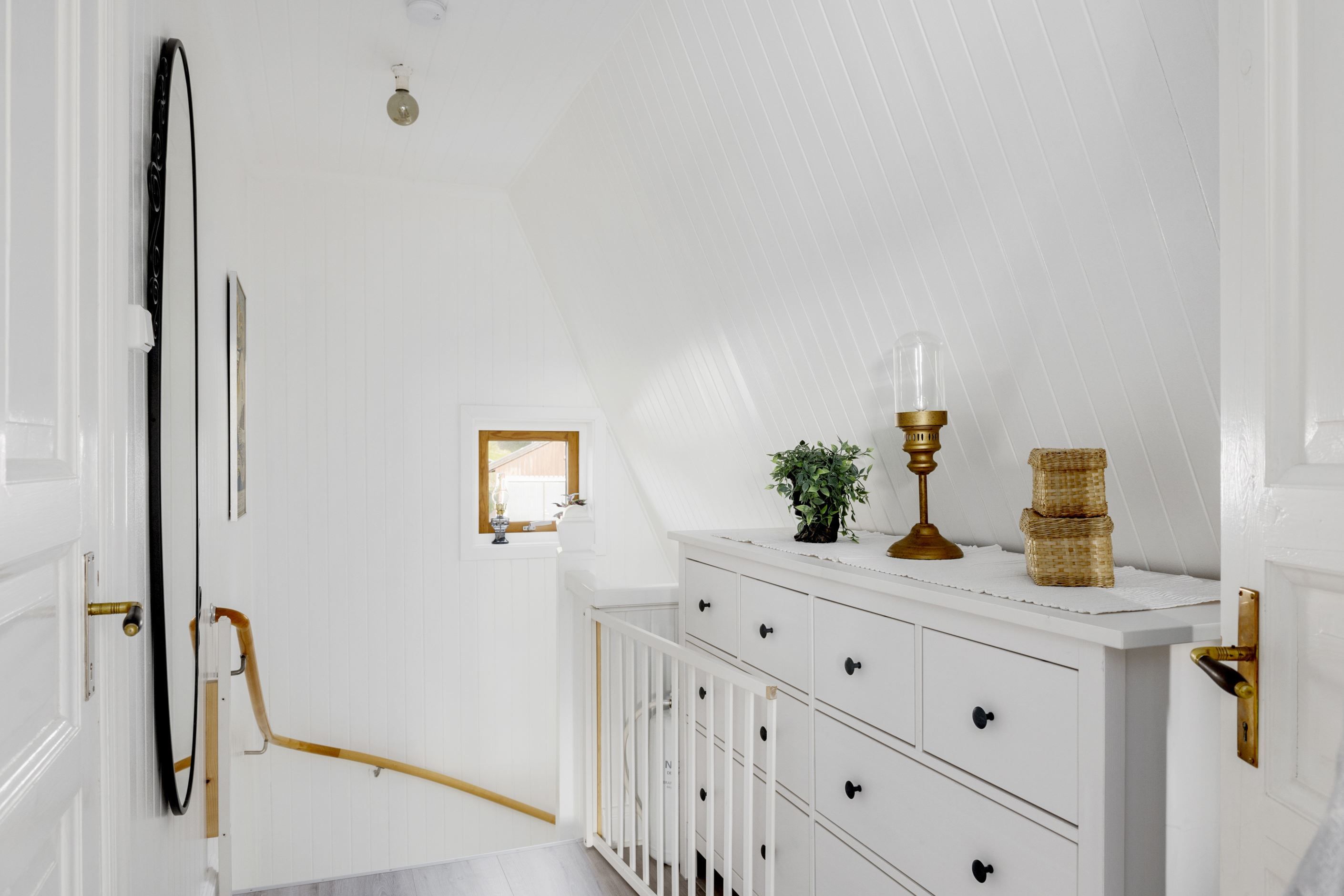 På övre plan möts ni av ett rofyllt master bedroom samt ett allrum som idag används som sovrum – ett flexibelt utrymme som enkelt kan anpassas efter behov, oavsett om ni önskar ytterligare sovplats, kontor eller mysigt tv-rum.