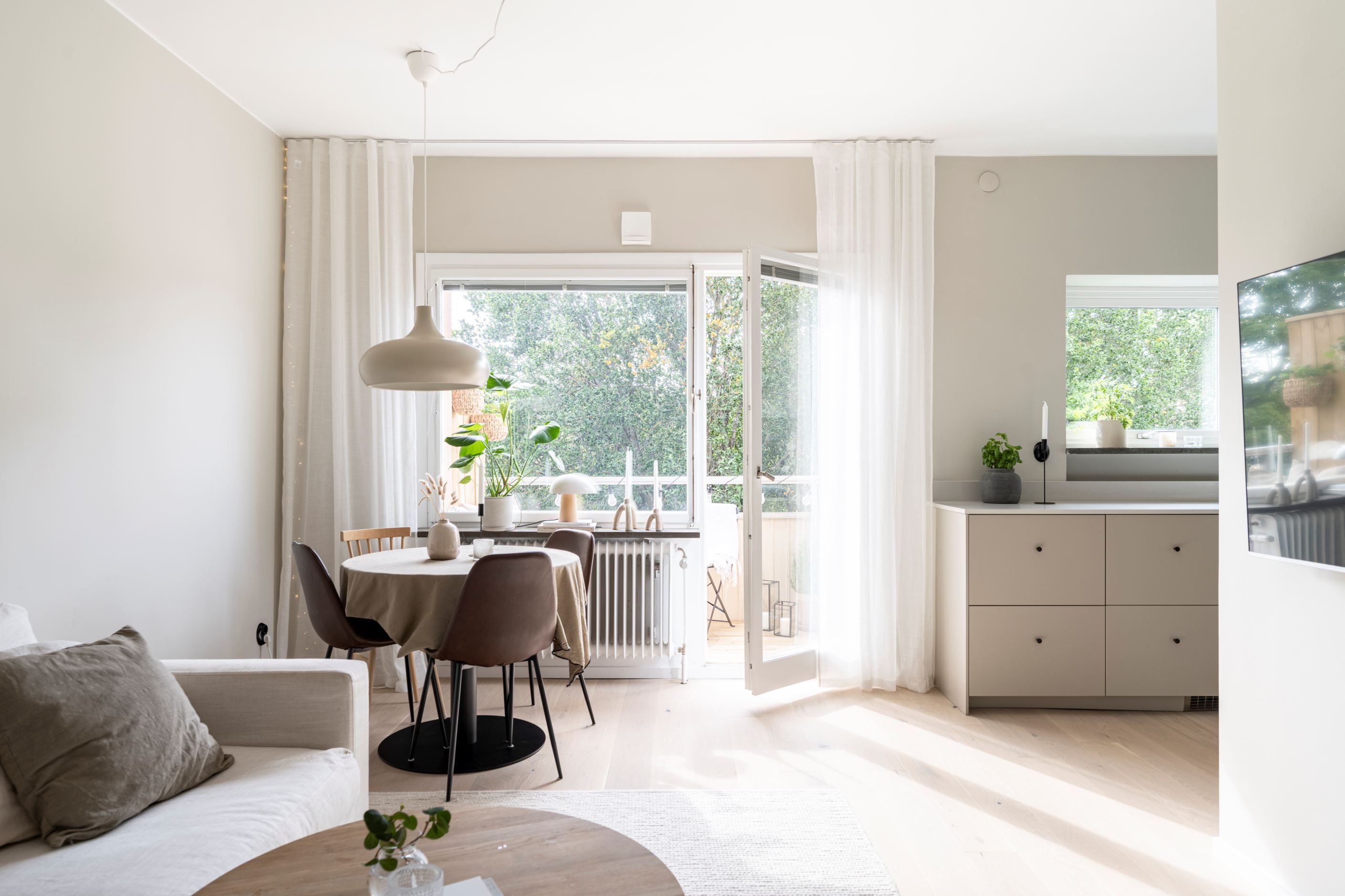 Nu förbereds försäljningen av denna härliga trea i absolut toppskick belägen högst upp i huset med balkong i ett fördelaktigt söderläge! På Sofielundsplan 51 erbjuds ett bekvämt boende med hög standard och detta hem har precis allt man kan önska med bland annat vardagsrum och kök i öppen planlösning som nås av mängder med naturligt ljus året om. Här finner man även två rymliga och rogivande sovrum med fönster mot grönskan utanför samt ett stilrent badrum med tvättmöjligheter, renoverat under 2023. Bostaden bjuder på tilltalande detaljer med te.x Plejdsystem, nya vitvaror från 2023, bänkskiva i komposit och 1-stavsparkett i vitlaserad ek i vardagsrum, kök och bägge sovrummen samt platsbyggd garderob och en rymlig klädkammare för ypperlig förvaring. Denna bostad måste upplevas på plats!