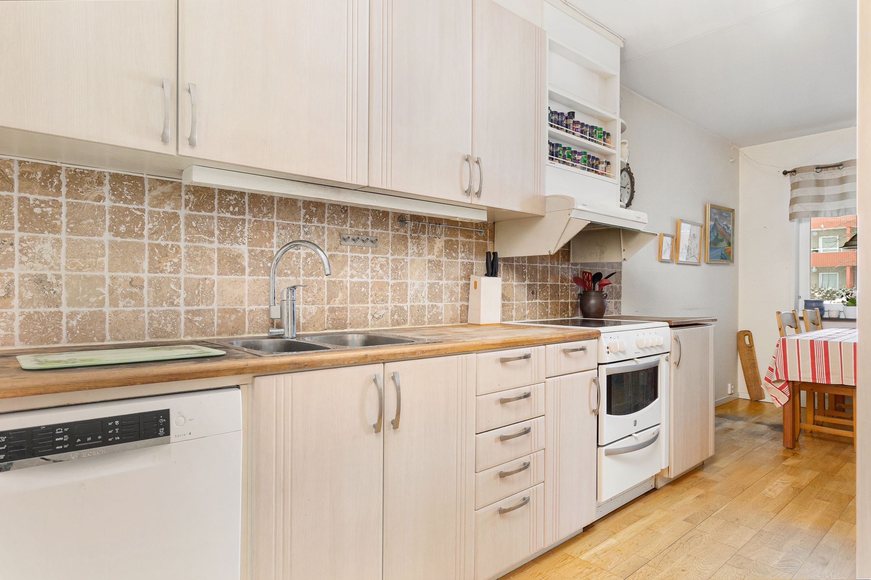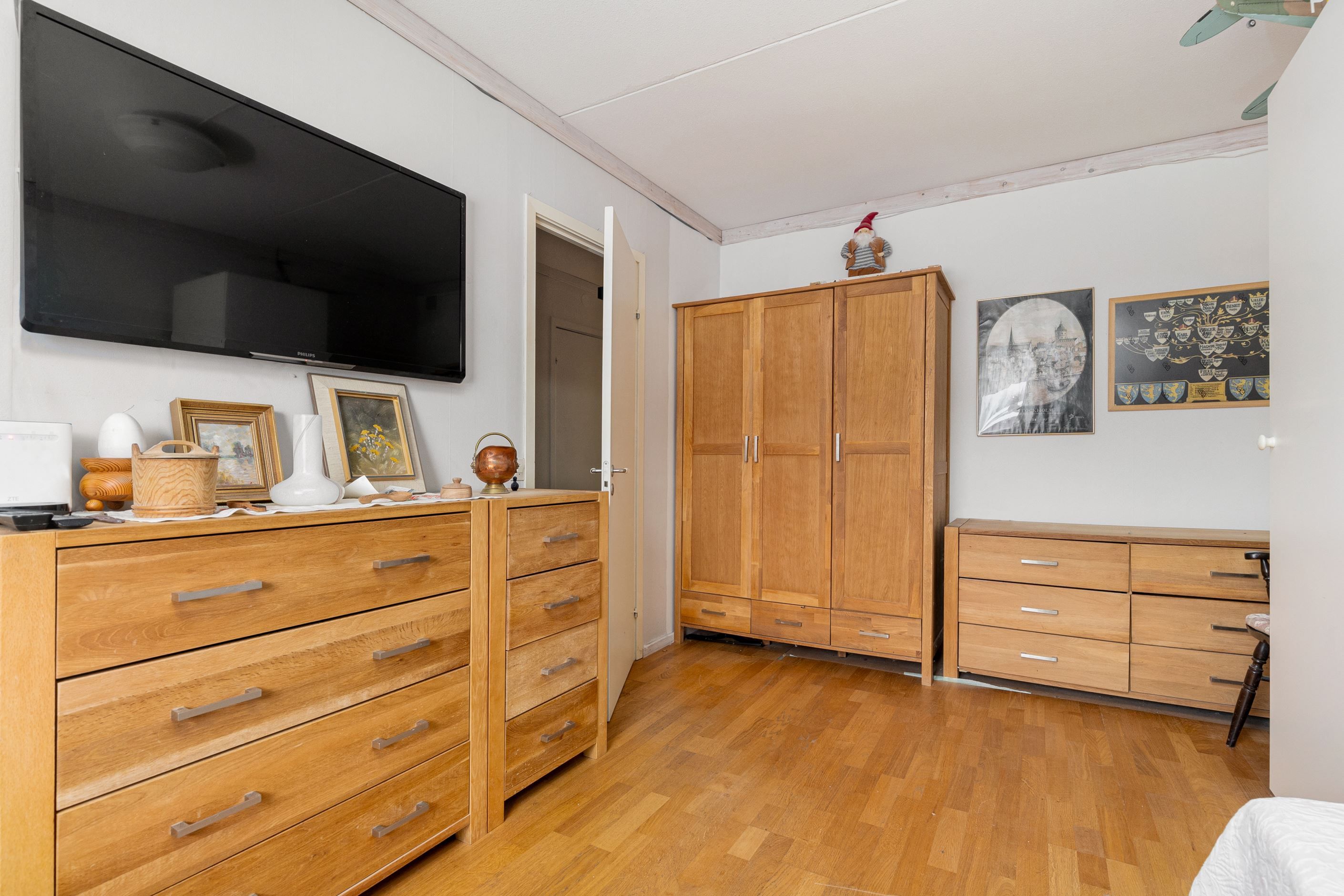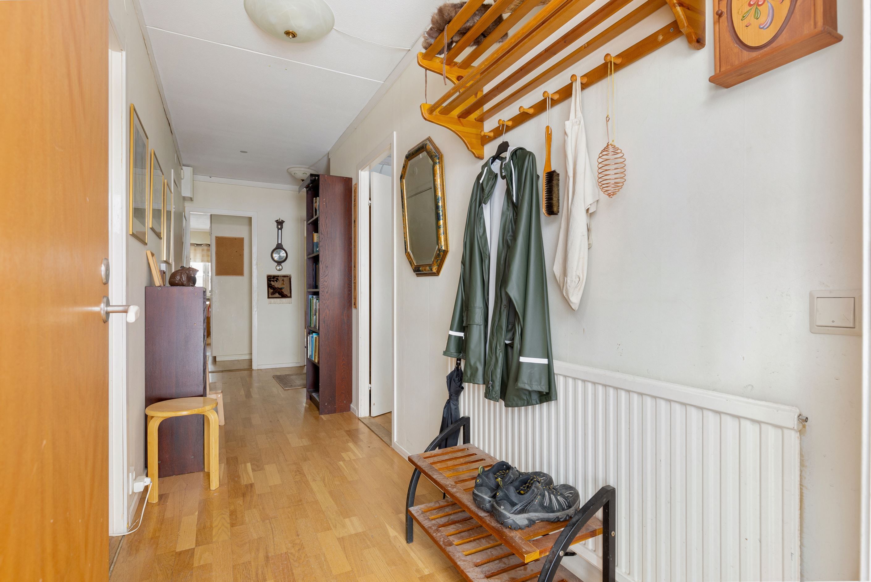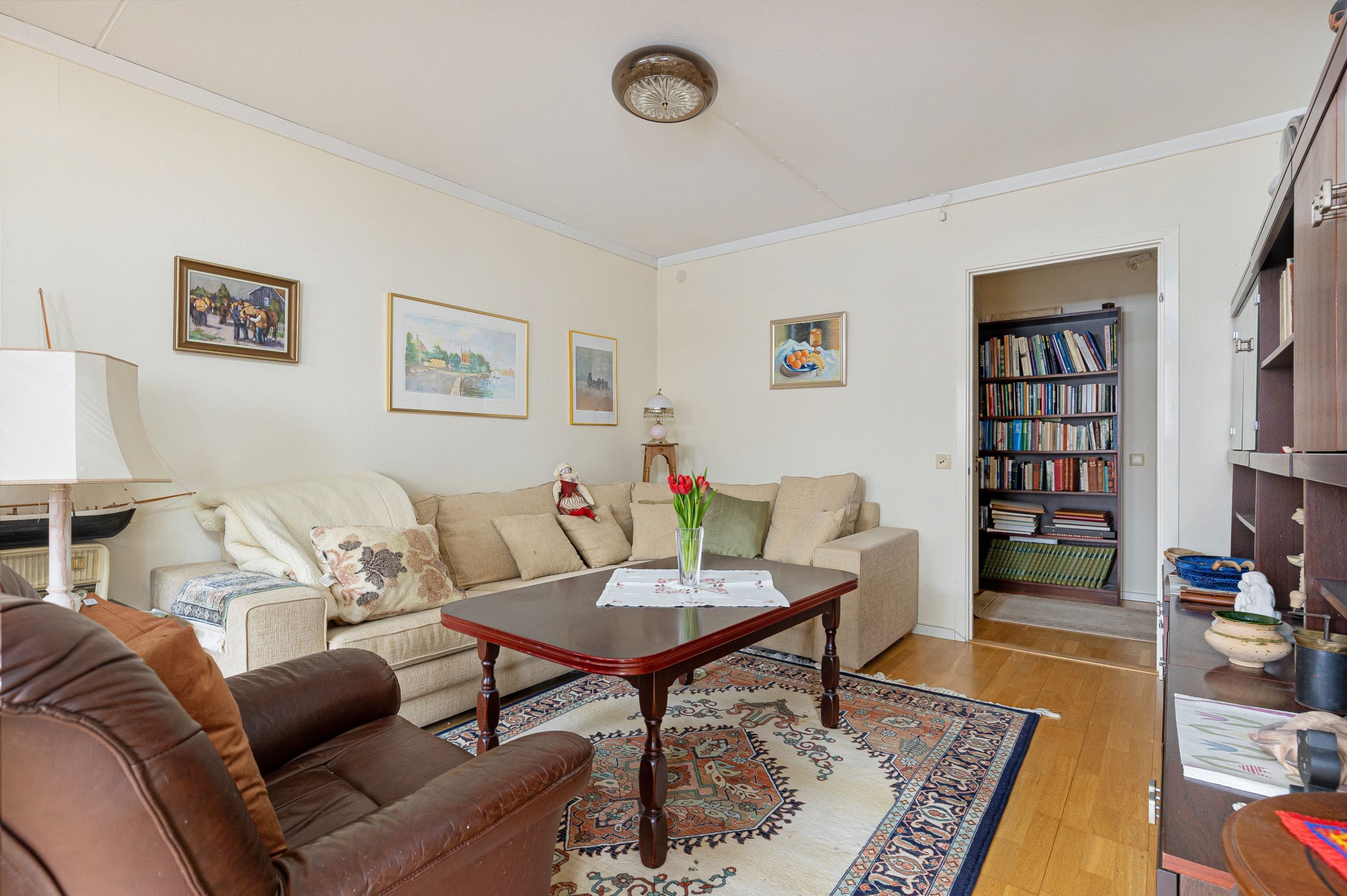 Den halvöppna planlösningen mellan kök och vardagsrum skapar ett härligt flöde och en luftig känsla, samtidigt som den sociala ytan blir naturlig för både vardag och umgänge. Markplansläget ger dessutom en bekväm och lättillgänglig boendemiljö, idealiskt för såväl barnfamiljen som den som vill slippa trappor. Som en extra bonus finns ett praktiskt förråd som med enkelhet kan omvandlas till ett extra sovrum eller hemmakontor, vilket ger bostaden en flexibel planlösning som kan anpassas efter livets olika skeden.