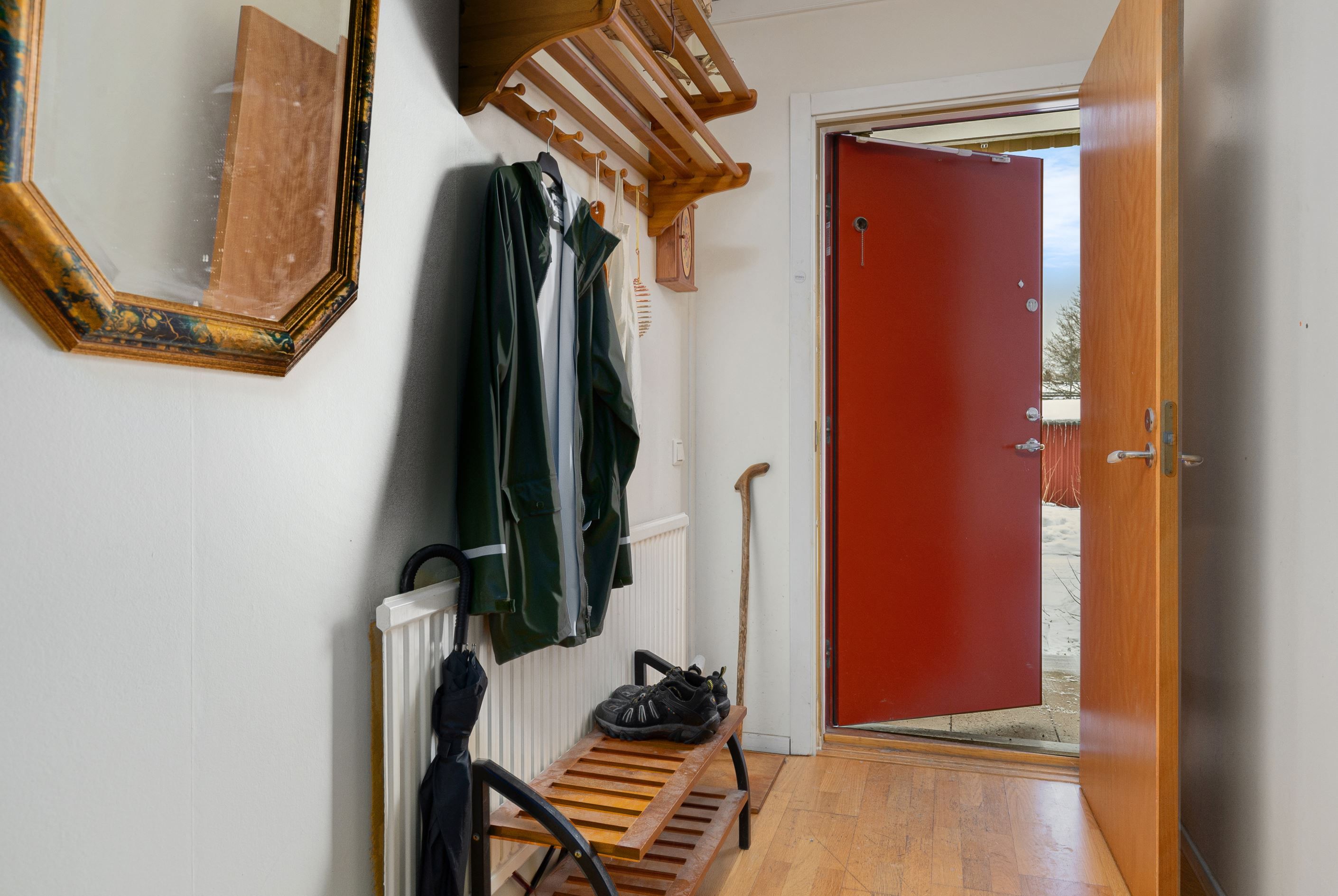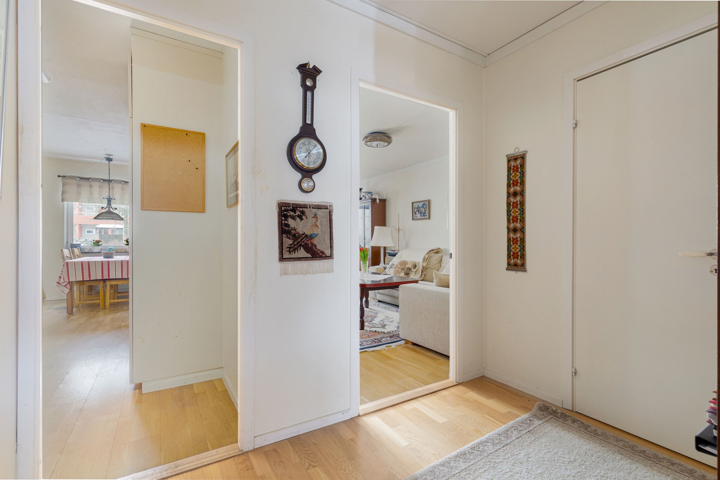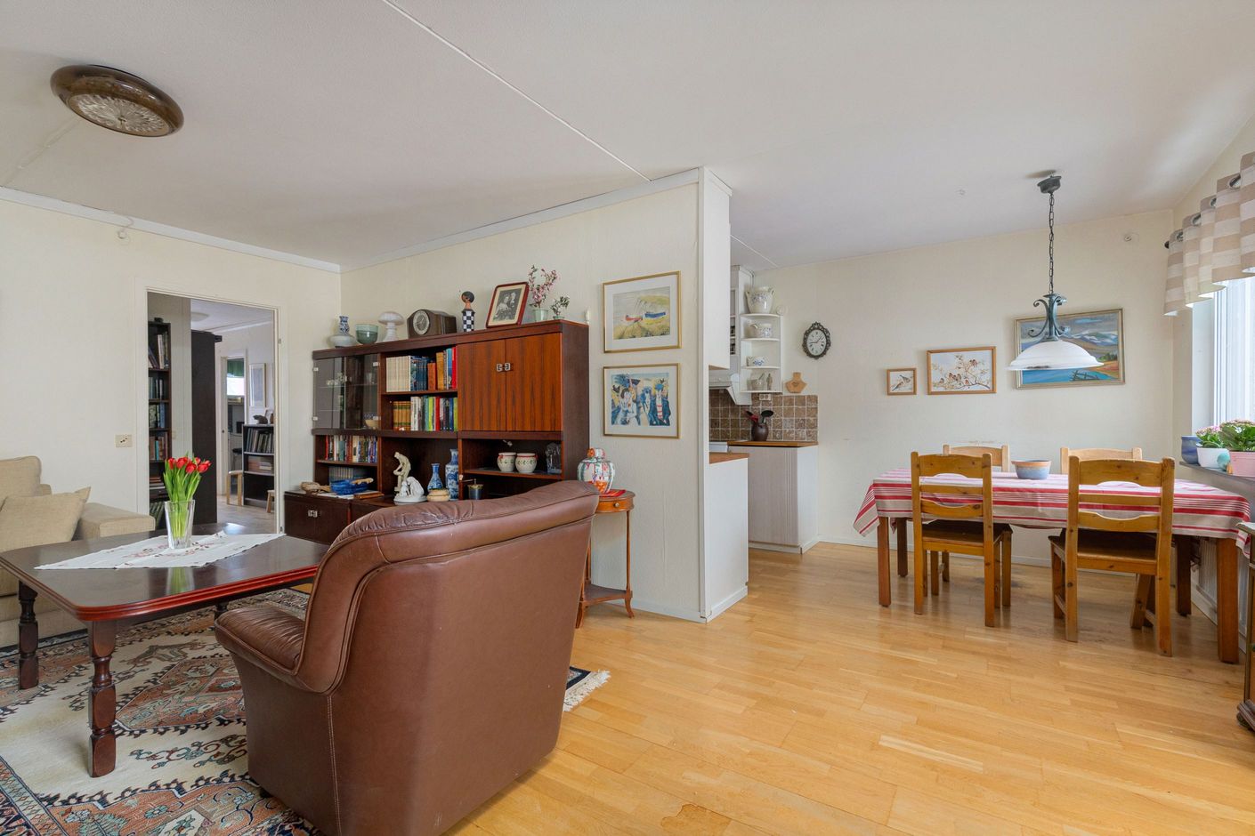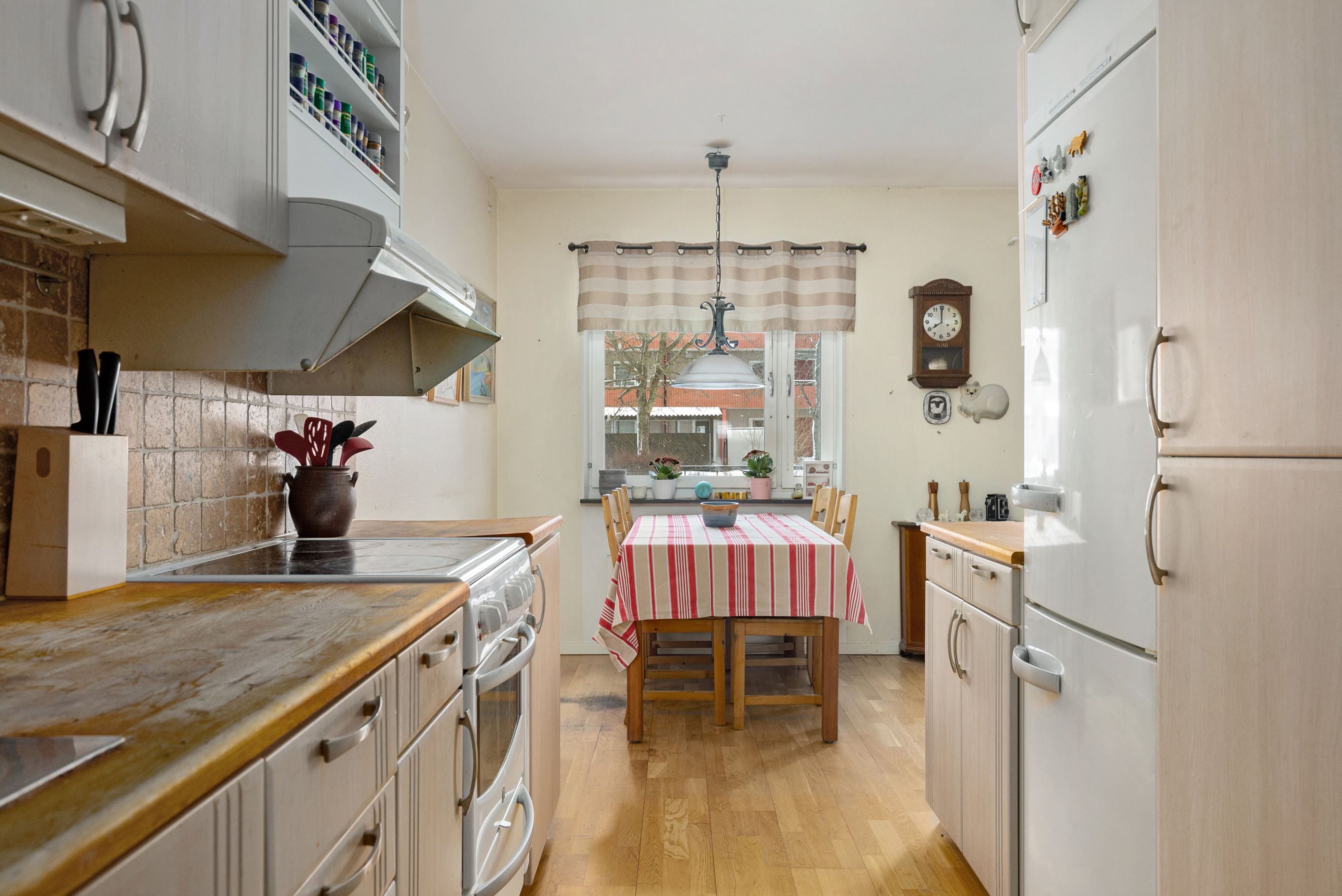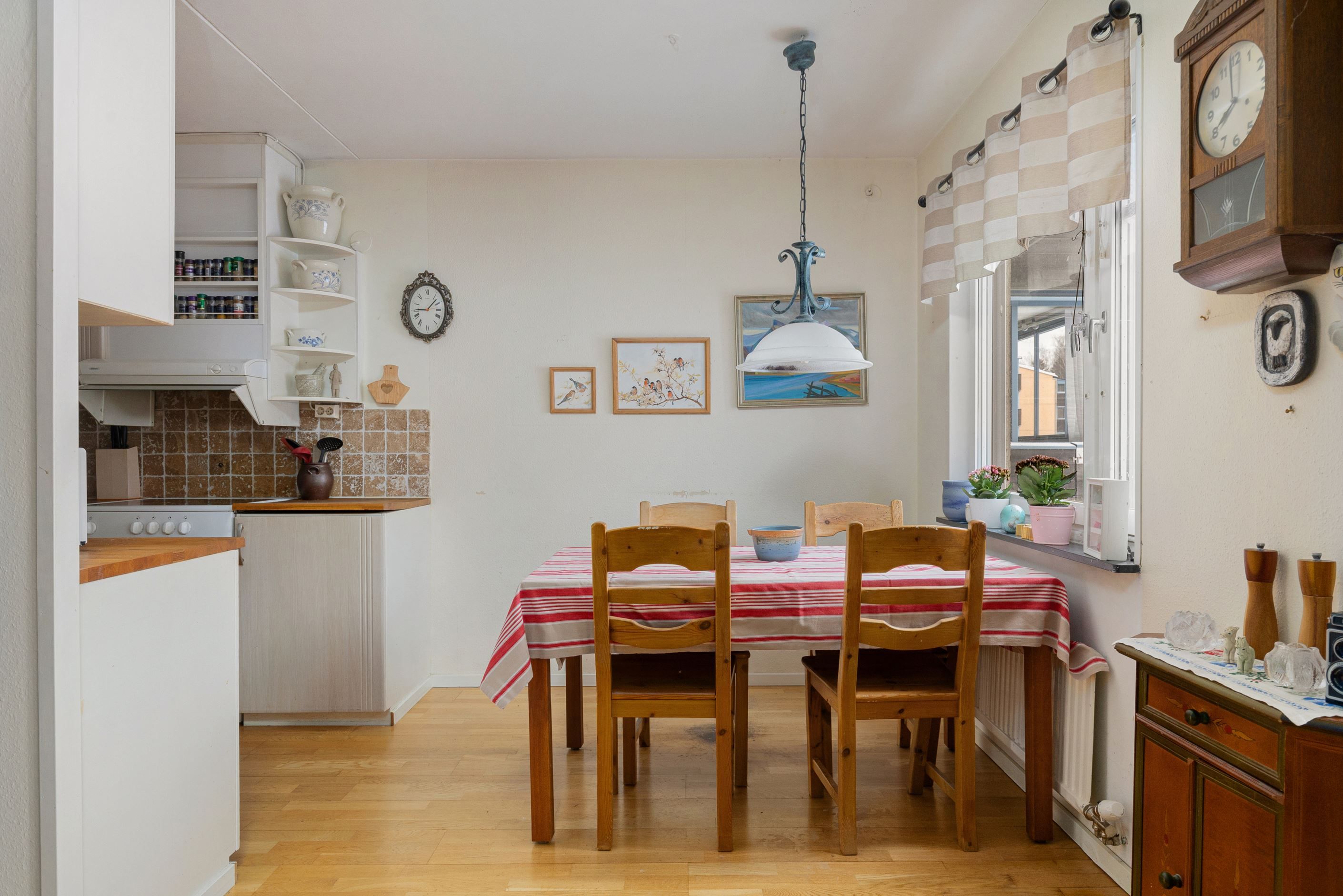 Den halvöppna planlösningen mellan kök och vardagsrum skapar ett härligt flöde och en luftig känsla, samtidigt som den sociala ytan blir naturlig för både vardag och umgänge. Markplansläget ger dessutom en bekväm och lättillgänglig boendemiljö, idealiskt för såväl barnfamiljen som den som vill slippa trappor. Som en extra bonus finns ett praktiskt förråd som med enkelhet kan omvandlas till ett extra sovrum eller hemmakontor, vilket ger bostaden en flexibel planlösning som kan anpassas efter livets olika skeden.