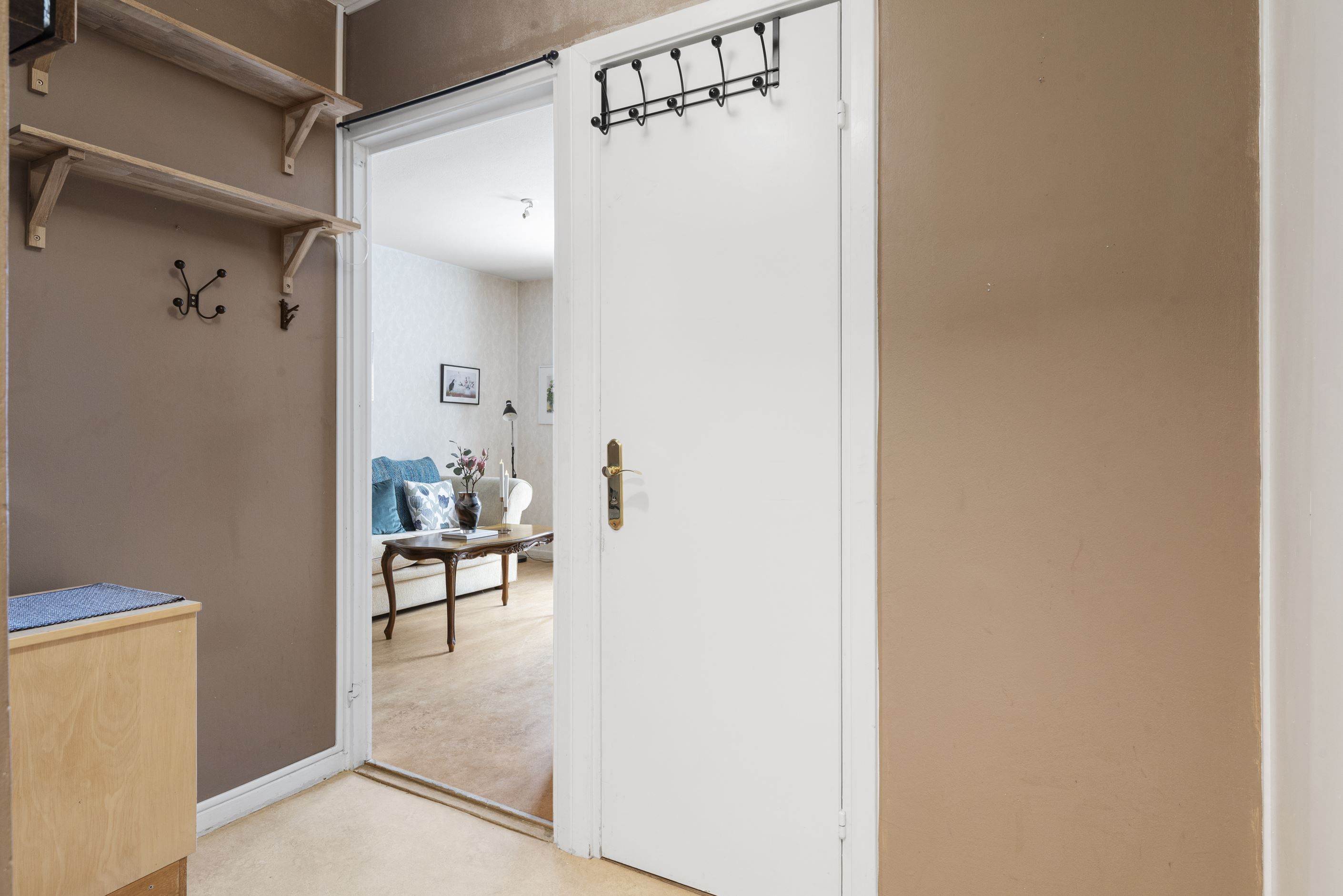 Redan i entrén möts du av en välkomnande hall med plats för avhängning samt garderober som erbjuder god förvaring. Säkerhetsdörr ger extra trygghet och ett ombonat första intryck.