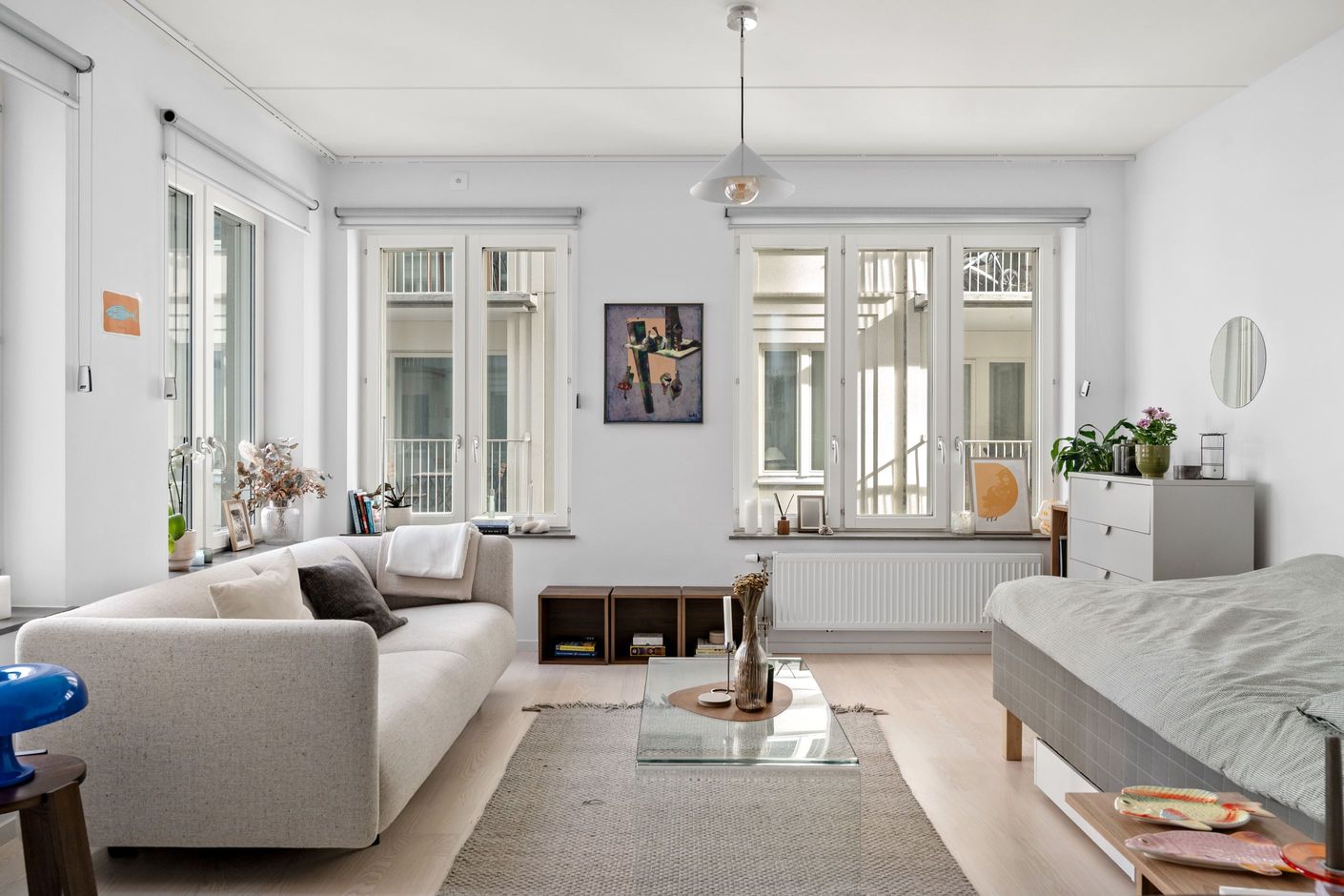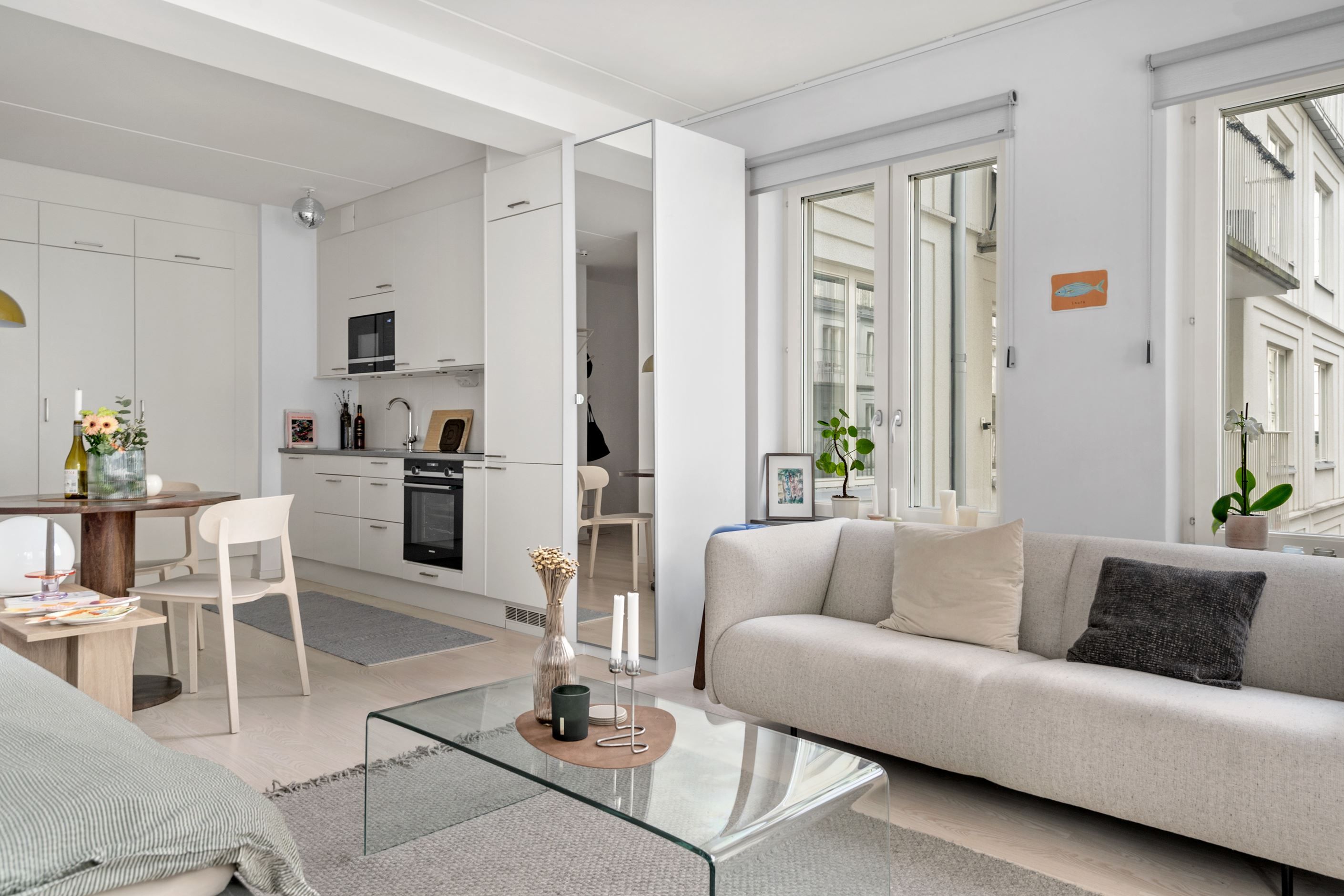 Här erbjuds en stilren och mycket välplanerad bostad med modern känsla och hög komfort. Den öppna planlösningen mellan kök och sällskapsdel skapar en social och luftig atmosfär med plats för både soffgrupp, matplats och sovdel.
