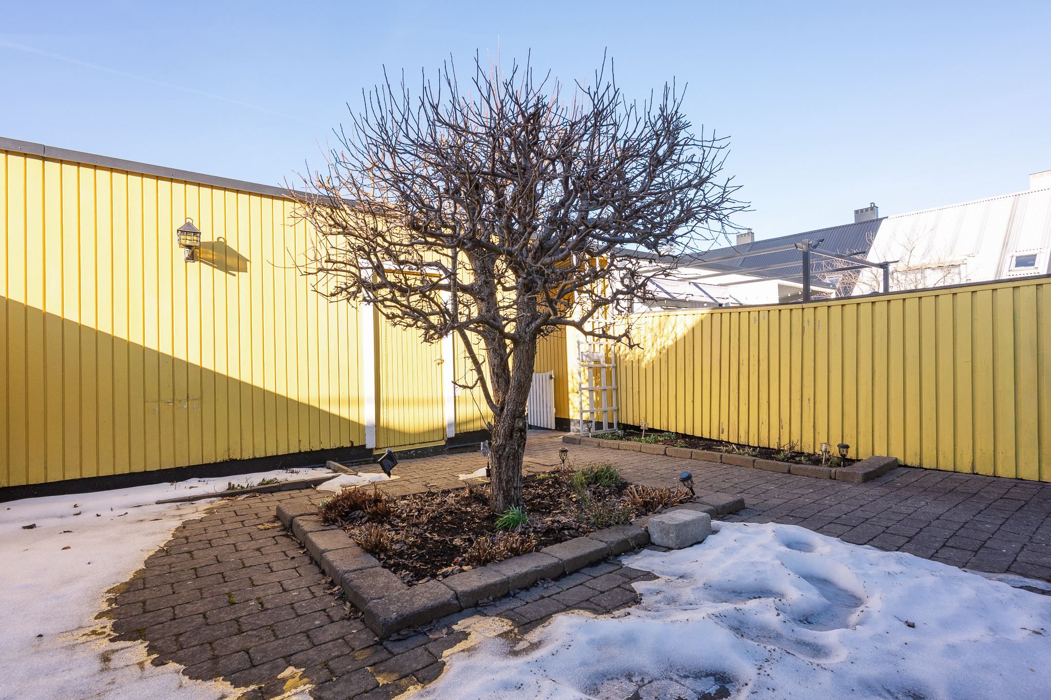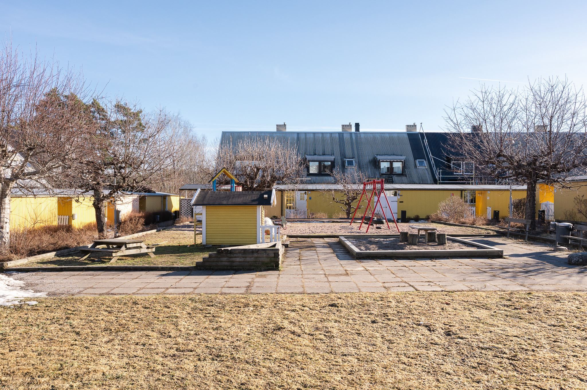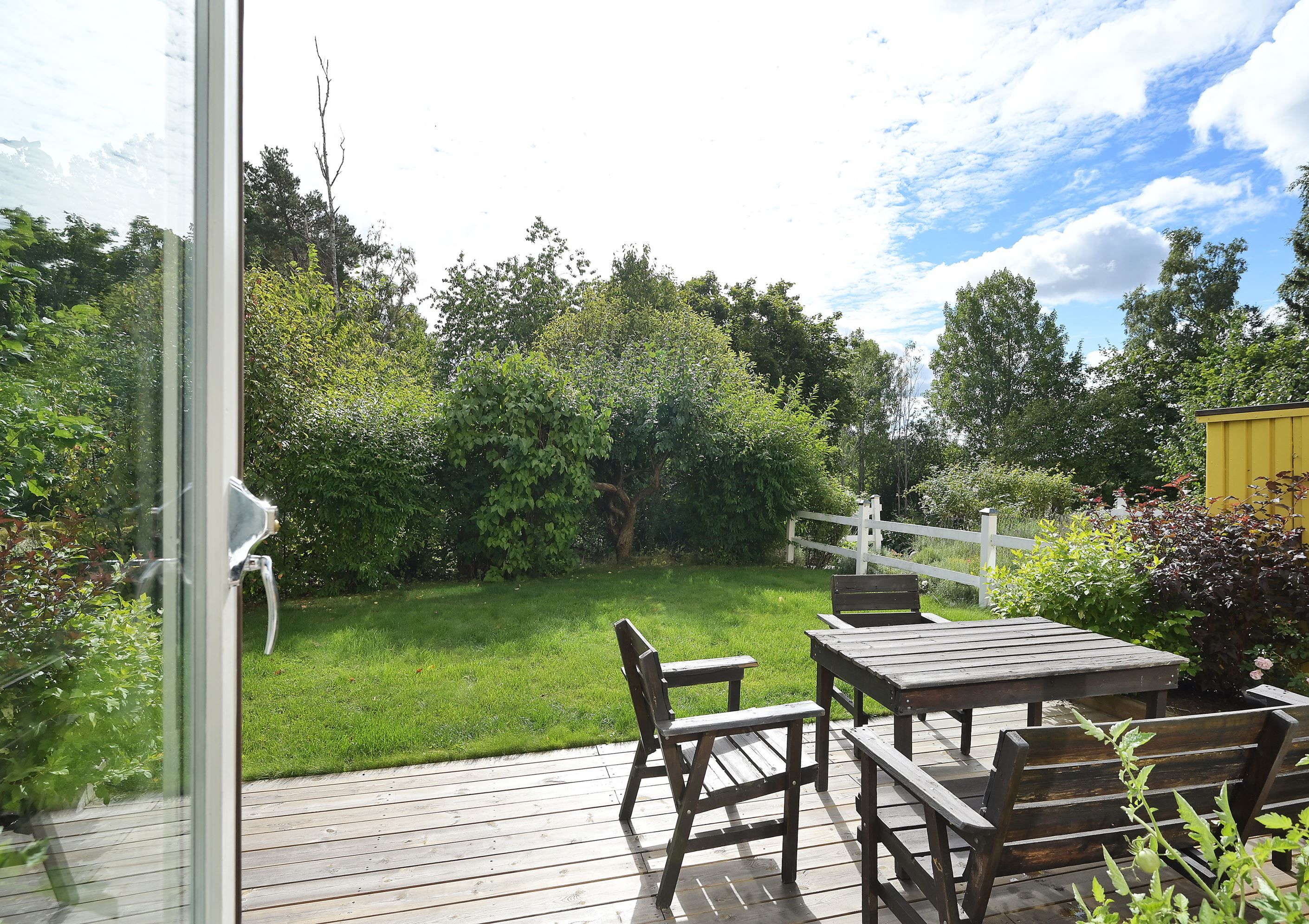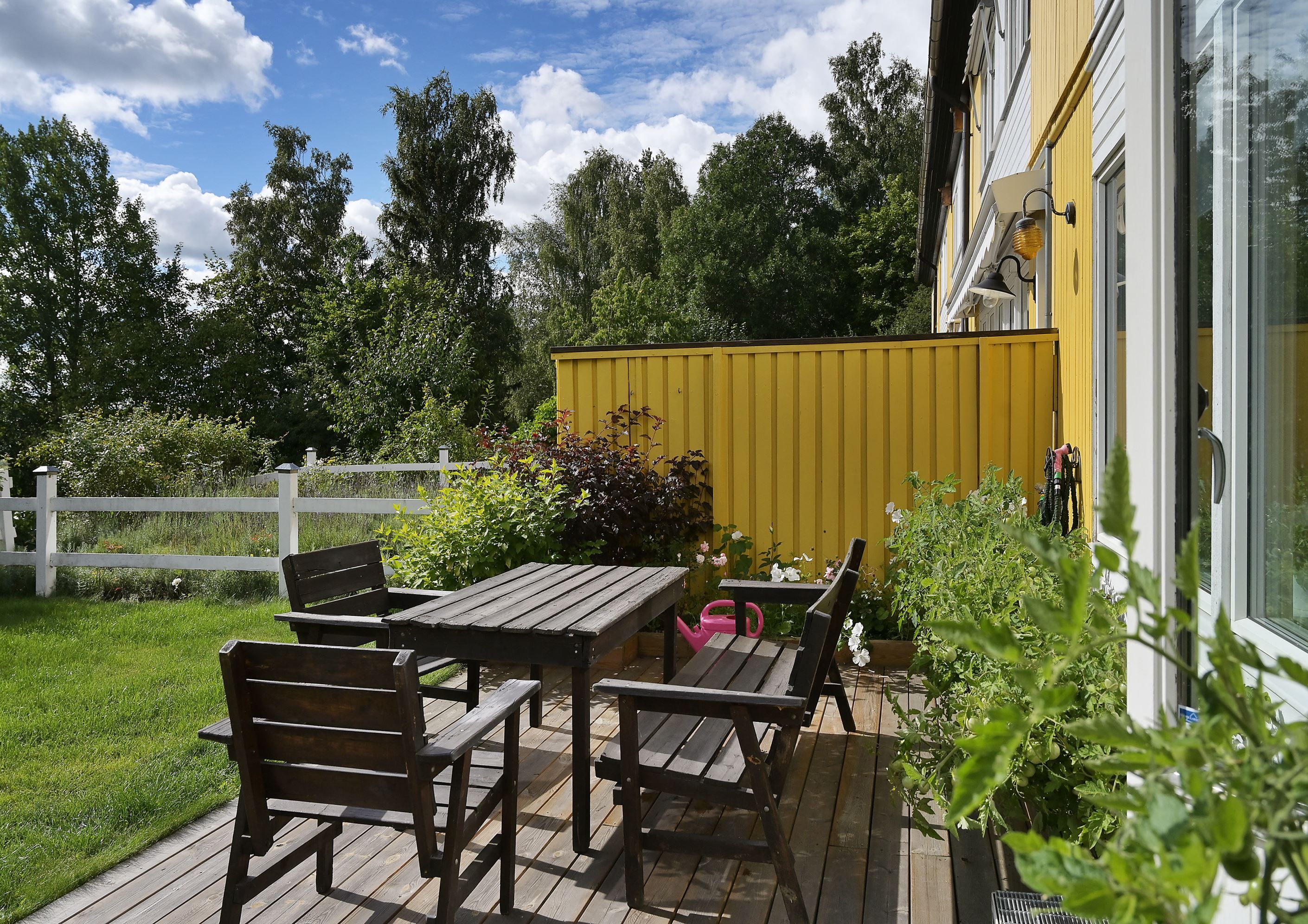 Välkommen till ett rymligt radhus i tre plan med en totalyta om ca 187 kvm, sällan till salu! Här bor du med ett perfekt och insynsskyddat läge samt två härliga uteplatser som låter dig följa solen från morgon till kväll. På framsidan möts du av en stenlagd uteplats med morgonsol – en underbar plats för dagens första kaffe. På baksidan väntar en solig altan som vetter mot en liten träddunge och erbjuder ett privat och rofyllt läge.