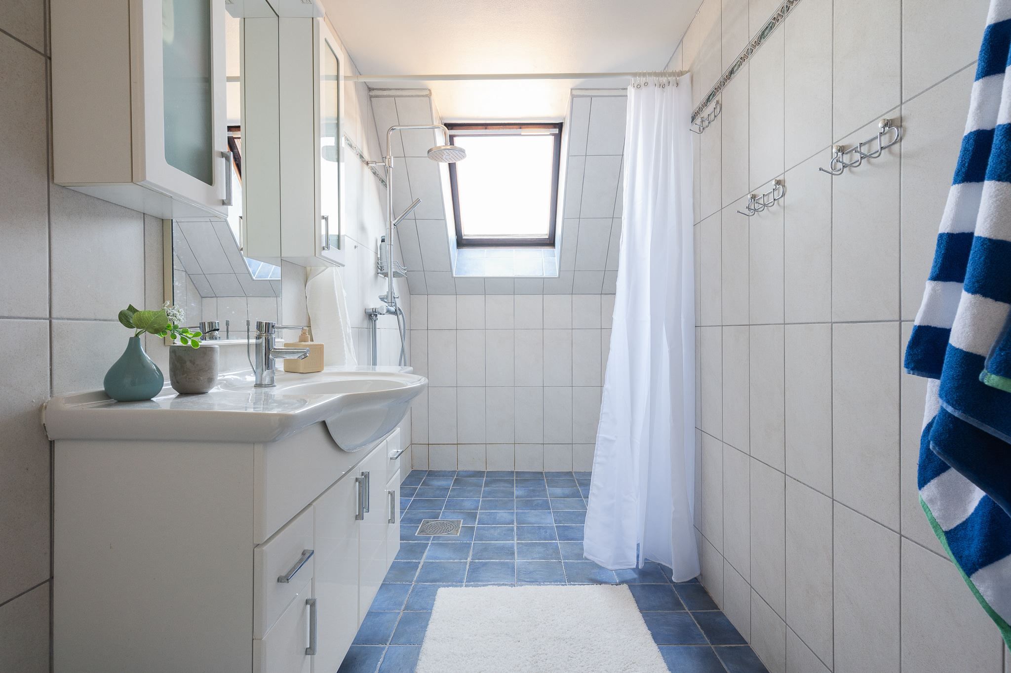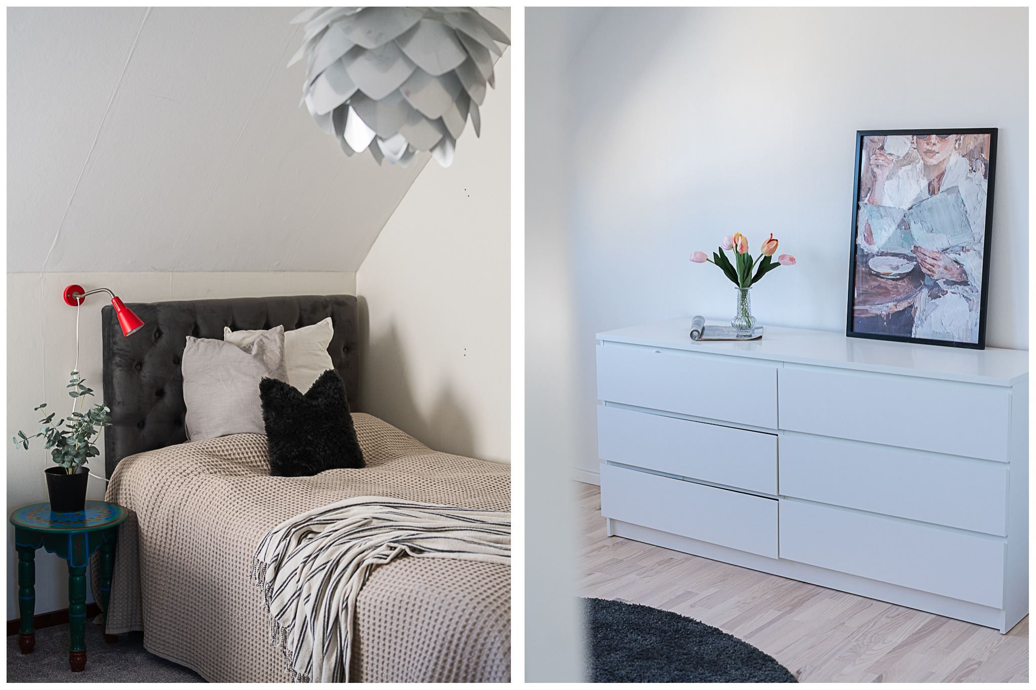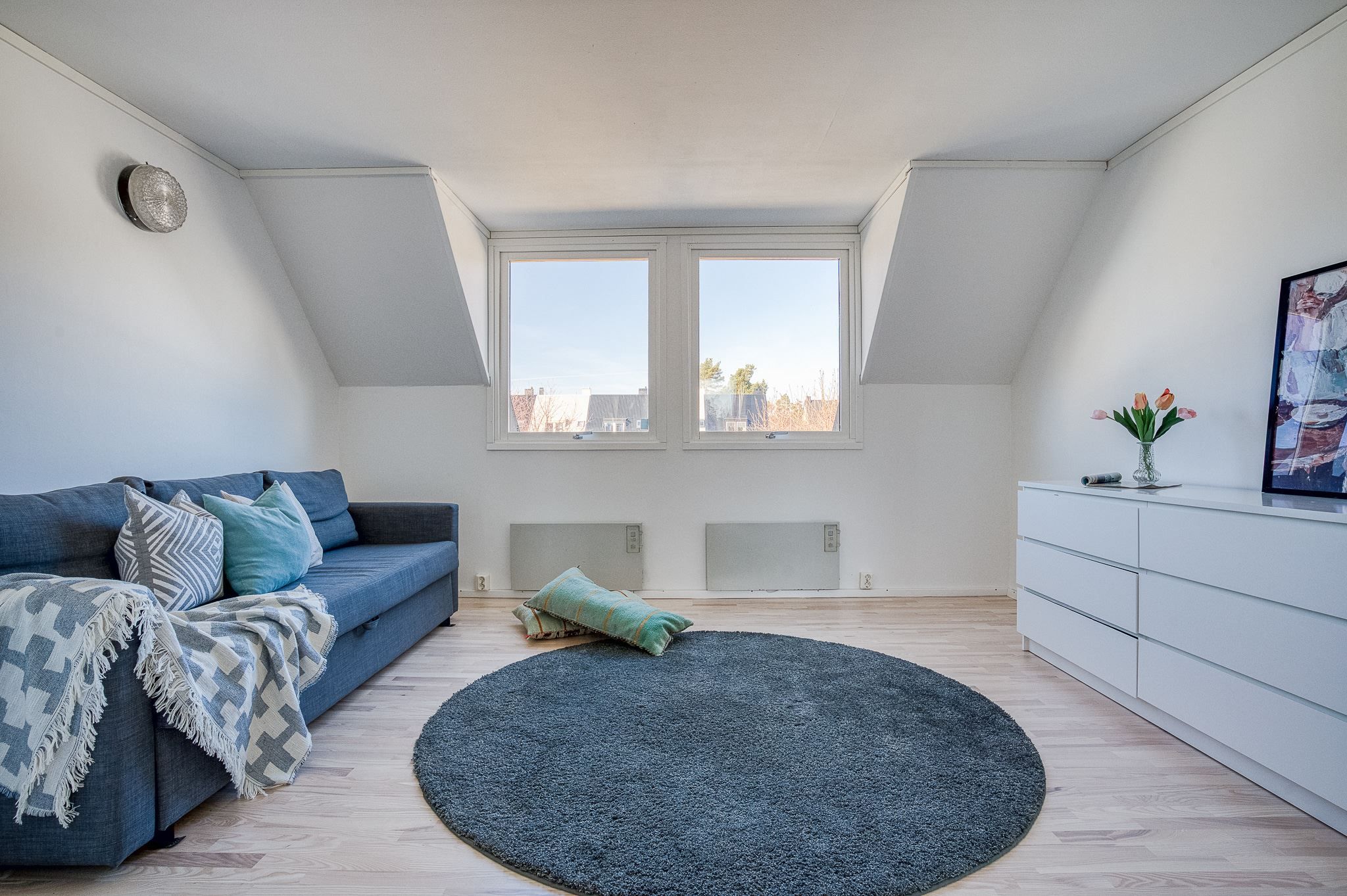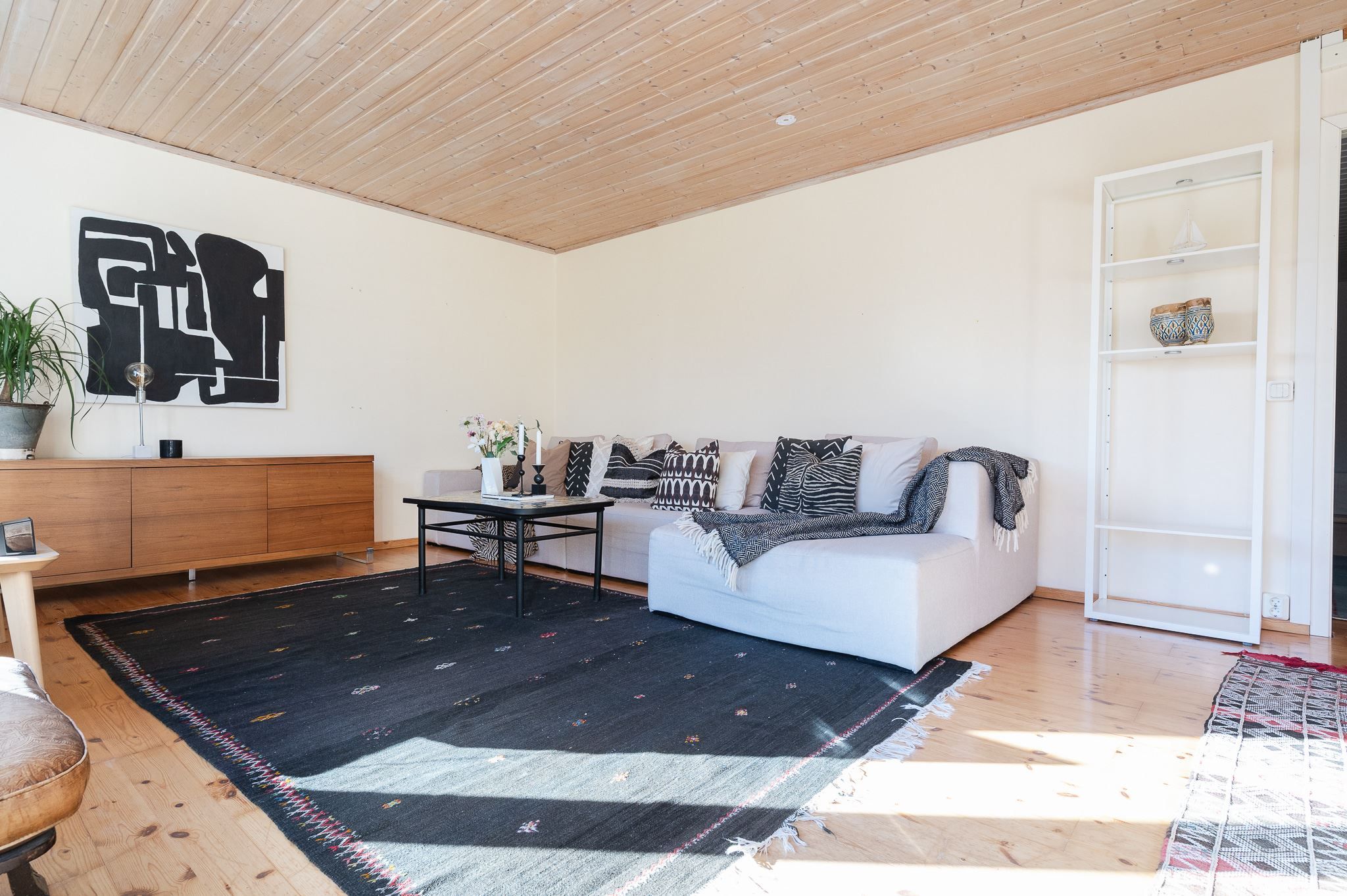 En trappa upp finner du tre väl tilltagna sovrum och ett helkaklat badrum med dusch. På nedre plan öppnar sig ett stort allrum med utgång till den insynsskyddade och soliga baksidan – perfekt som familjerum, tonårsdel eller gästavdelning. Här finns dessutom badrum med dusch och bastu, och ett rum för relax eller som idag gym.