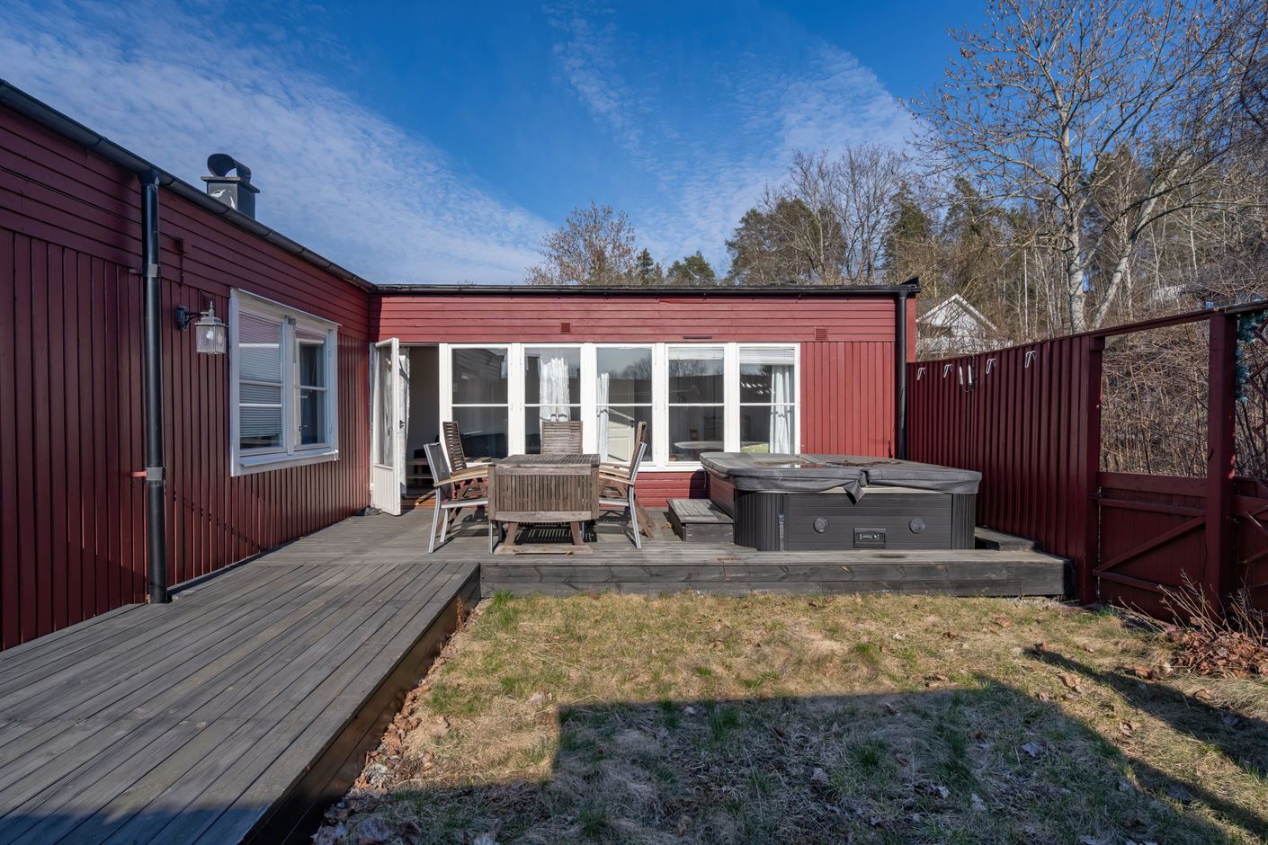 Välkommen till ett välplanerat enplanshus i vinkel om ca 120 kvm. Huset erbjuder rymligt vardagsrum med stor murad eldstad, kök i öppen planlösning med matplats för 8 - 10 personer, tre sovrum med möjlighet till fyra, helkaklat duschrum, extra gäst-wc och tvättstuga. Gott om förvaringsutrymme och garage i länga. Altan med utespa på skyddad baksida med bästa solläge.