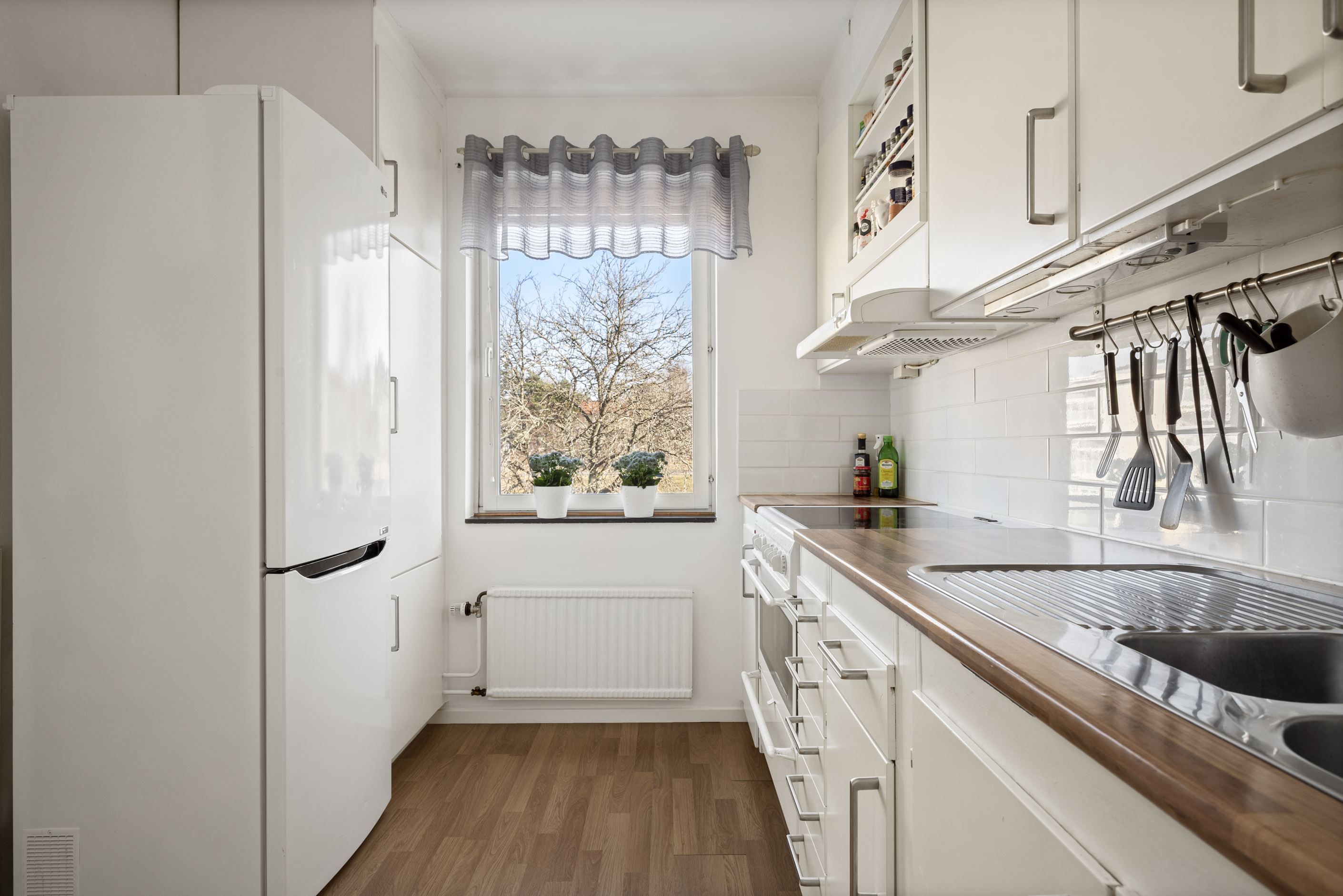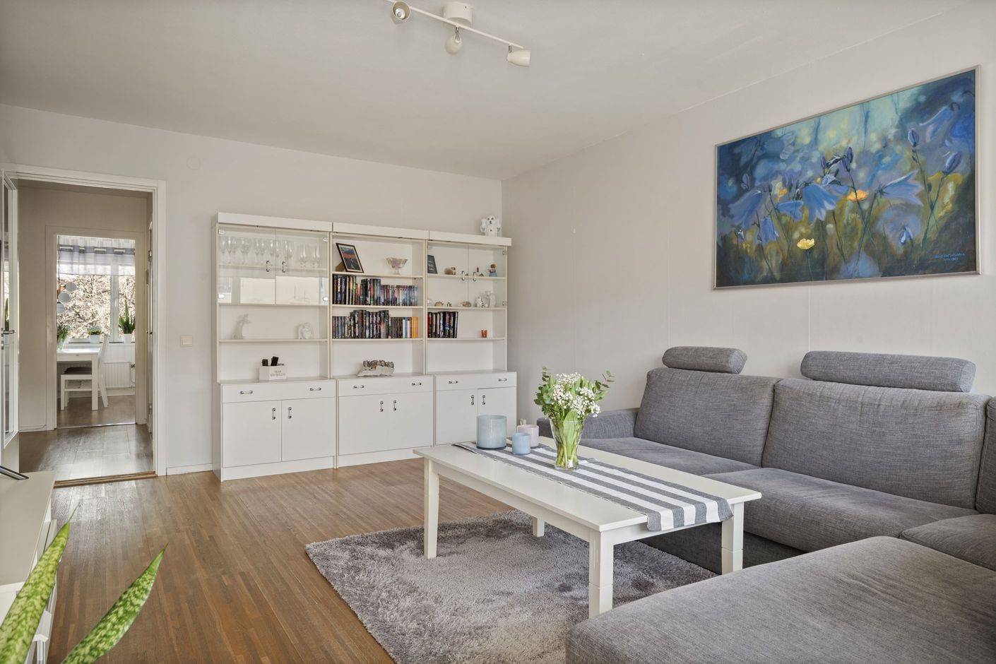 Lägenheten erbjuder en genomtänkt planlösning med generösa ytor och ett härligt ljusinsläpp. Den rymliga hallen välkomnar dig med gott om plats för avhängning samt en praktisk klädkammare. Köket är stilrent och inbjudande med en stor matplats där 6–8 personer får plats – perfekt för både vardagsmiddagar och trevliga sammankomster.