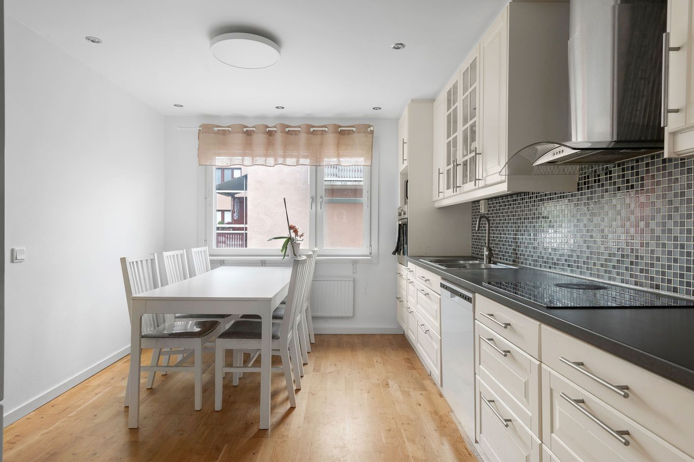 - Välkomna till en mycket hemtrevlig 3:a i populära och stabila HSB-föreningen Fanö! Detta hem inkluderar ett modernt vitt kök med spotlightbelysning och en stor matplats för hela familjen. Fullutrustad maskinpark med diskmaskin och full size kyl samt frys. Parkettgolv och vtimålade väggar i hela bostaden samt säkerhetsdörr i den välkomnande hallen. Förråd av största modell som delvis är inredd som walkin-closet samt den innersta delen är ett renodlat förråd. Bra storlek på vardagsrummet med spotlightbelysning och utgång till balkongen som ligger i ett mysigt läge mot föreningens lugna innergård. Bra storlek på båda sovrummen som rymmer dubbelsäng. Det största sovrummet går även att dela upp till 2 mindre sovrum för den som önskar att skapa en yteffektiv 4:a. Modernt badrum med tvättmaskin samt spotlightbelysning och helkaklade väggar samt klinkergolv.