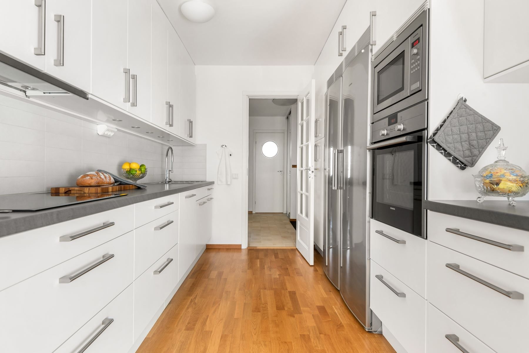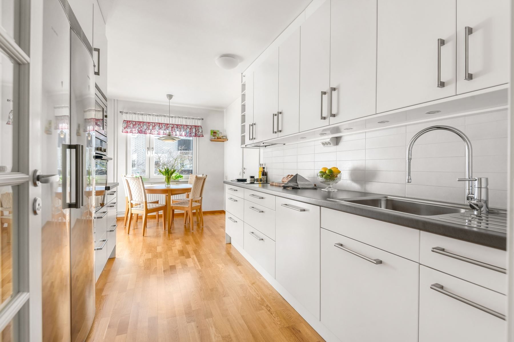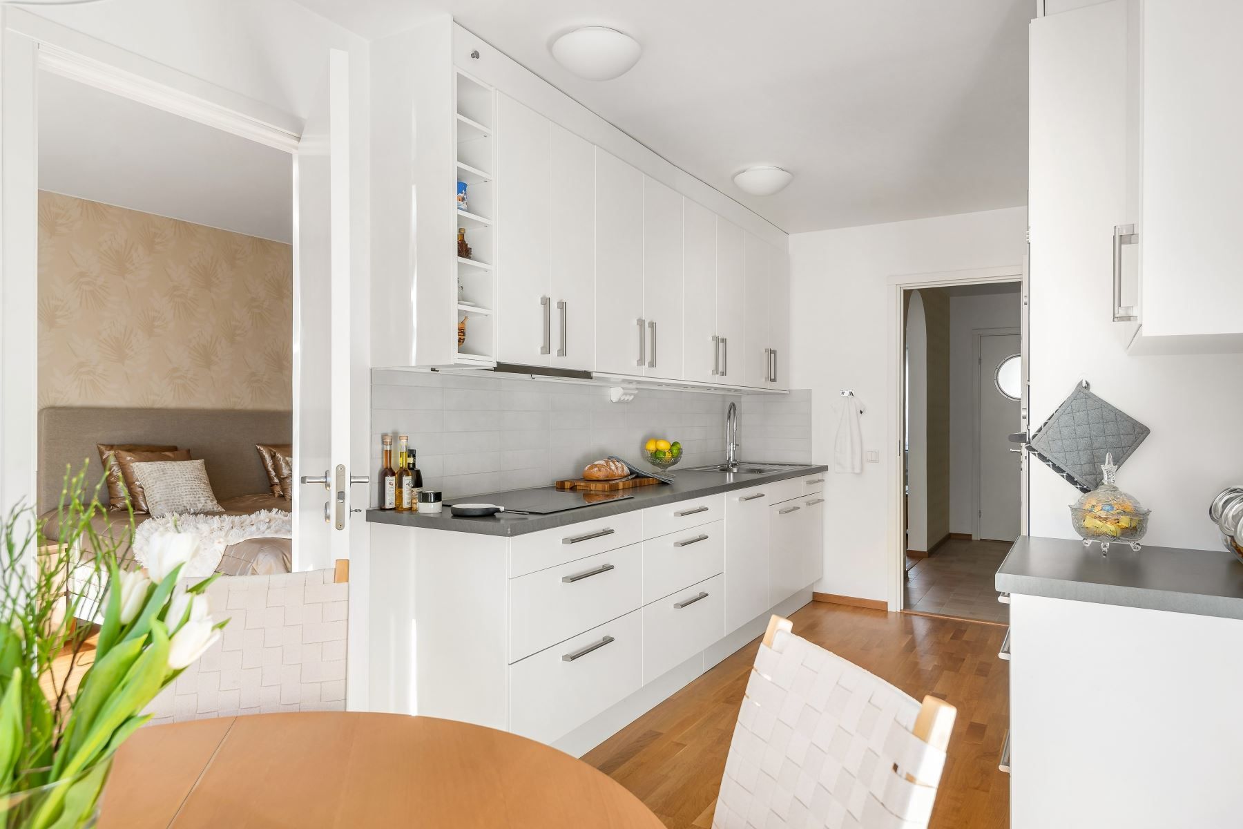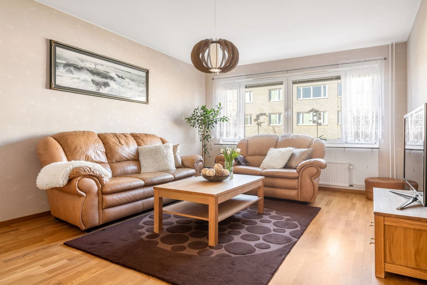 Kliv in över tröskeln in i en välkomnande hall med goda avhängningsmöjligheter i form av Elfa skjutdörrsgarderob med spegeldörrar. Här möts du av klinkergolv med golvvärme som sträcker sig till köket. Vidare in finner du ett stort och välplanerat kök med gott om plats för förvaring bakom vita skåpsluckor och bra med arbetsyta ovanför bänkskivan. Kökets maskinella utrustning från kvalitetsmärket Siemens består av kyl/frys, diskmaskin, induktionshäll, ugn och fläkt. Matplatsen rymmer bord om 6-8 personer. Vardagsrummet är bostadens givna sociala punkt med gott om plats för möblering efter smak och fint ljusflöde via 3-glas fönster. Bostaden erbjuder även ett stort och rymligt sovrum med plats för sängar i de flesta storlekar och ett stambytt badrum där det klinkergolvet går fint ihop med väggar i vitt kakel. Utrustningen i badrummet består av dusch, badkar, handfat, kommod, toalett, fönster, handukstork samt tvätt och torkmaskin från Siemens. Den inglasade balkongen är ytterligare en mysfaktor med trätrall på golvet.