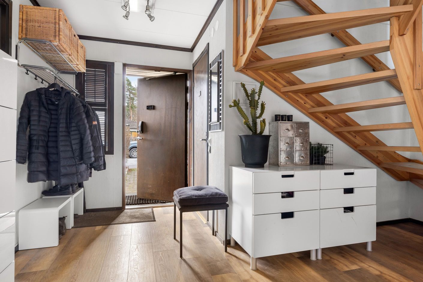 Totalt i bostaden finns fyra sovrum, men möjlighet finns att enkelt skapa ett femte. Garage, tvättstuga och förråd ger praktisk funktion till vardagen.
