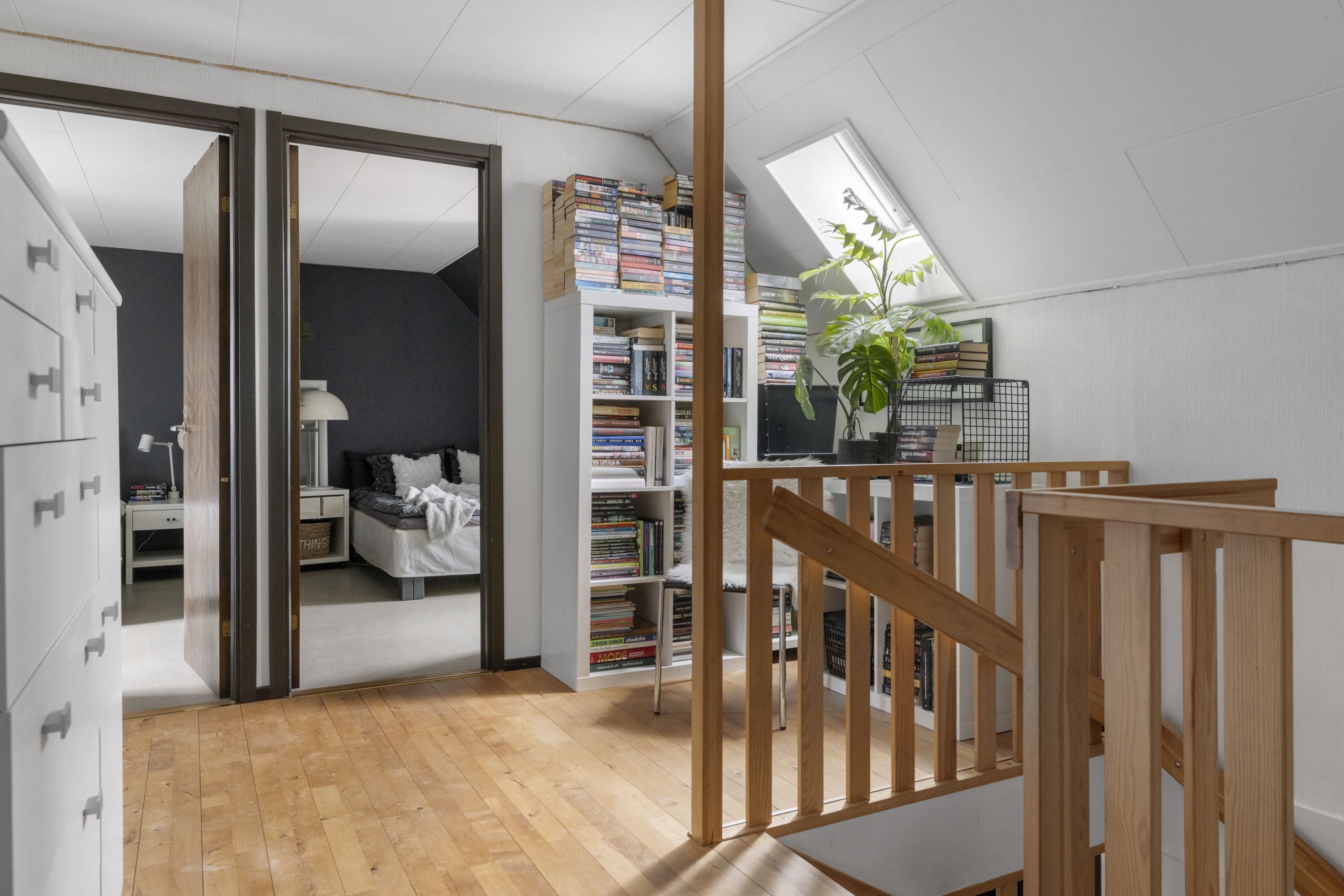 På det övre planet finns tre mycket bra sovrum, badrum samt två klädkammare. Den övre hallen fungerar som ett extra rum/kontor eller lekyta för barnen.