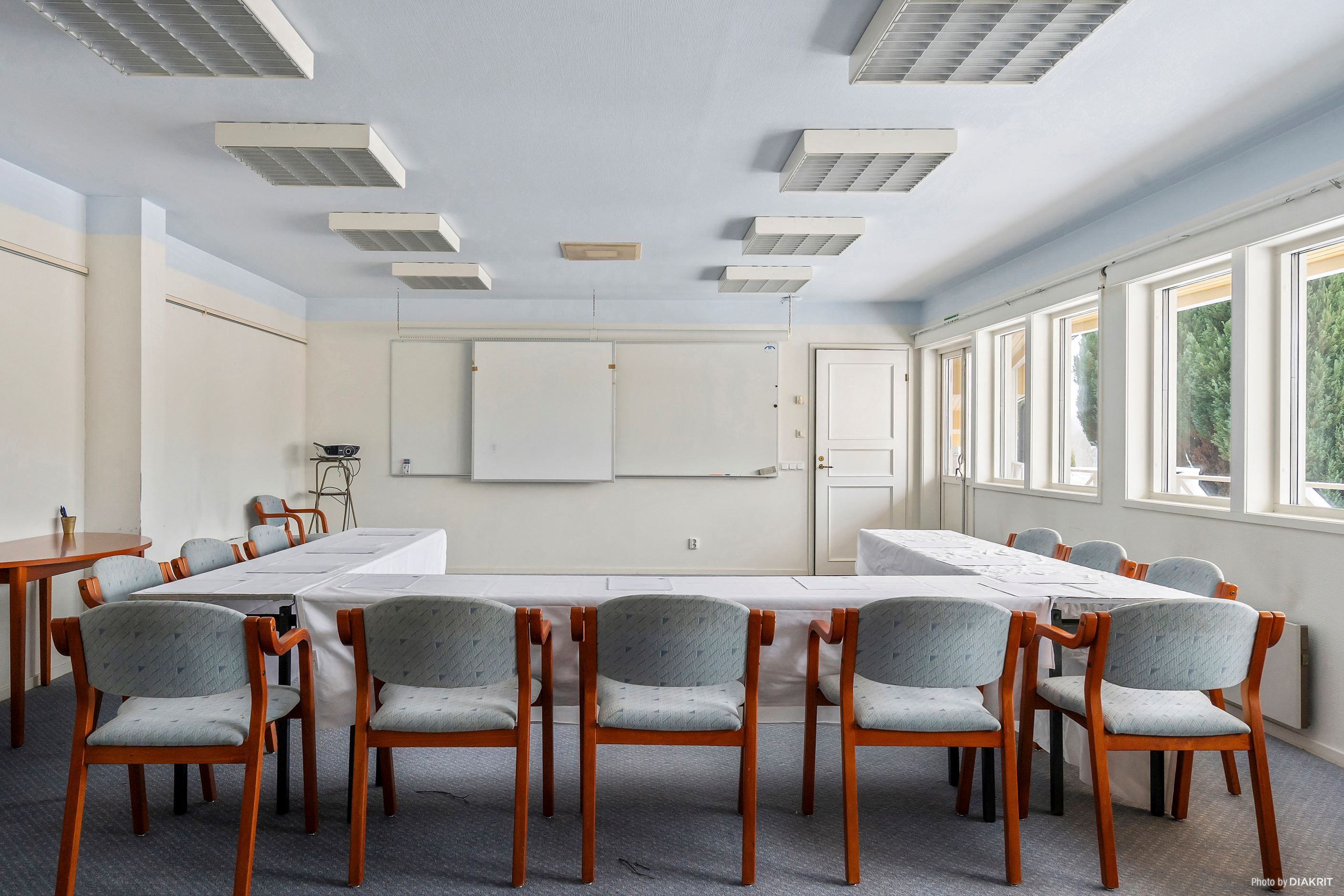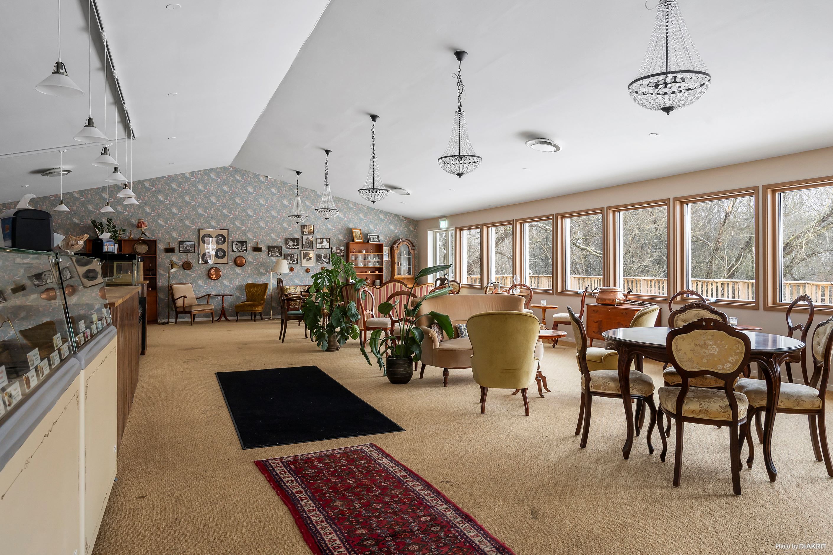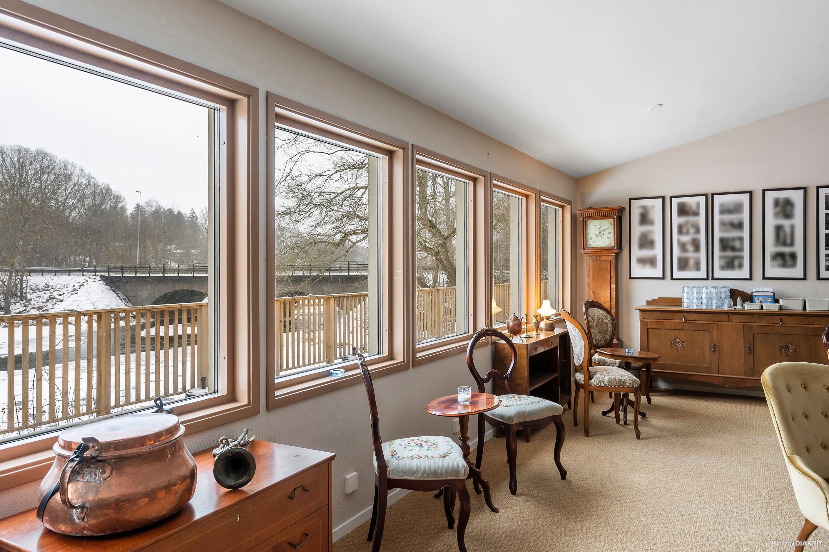 En av de tidigare konferenslokalerna med fantastiskt läge mot Rönne å har nu smakfullt byggts om till ett stort och inbjudande café med anslutande trädäck. Här skapas en svårslagen miljö med rogivande utsikt över ån – en perfekt plats för såväl frukostservering som sommarkafé, event eller kvällsarrangemang.