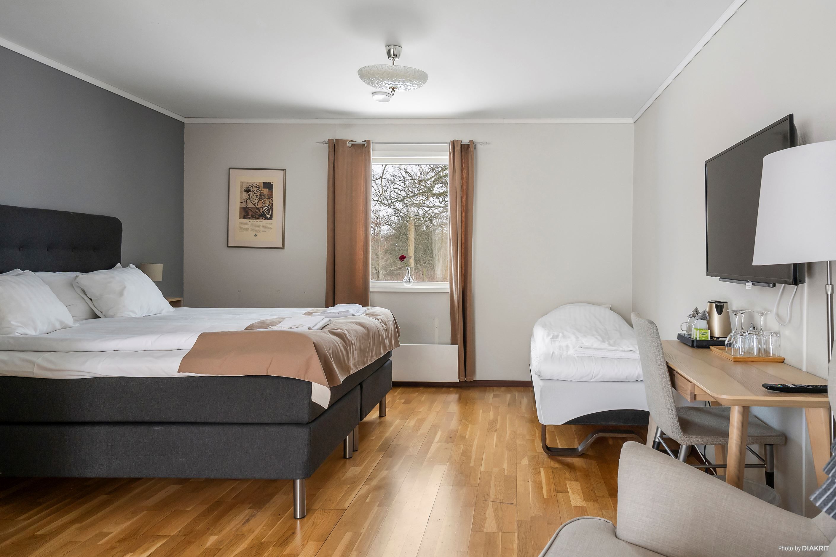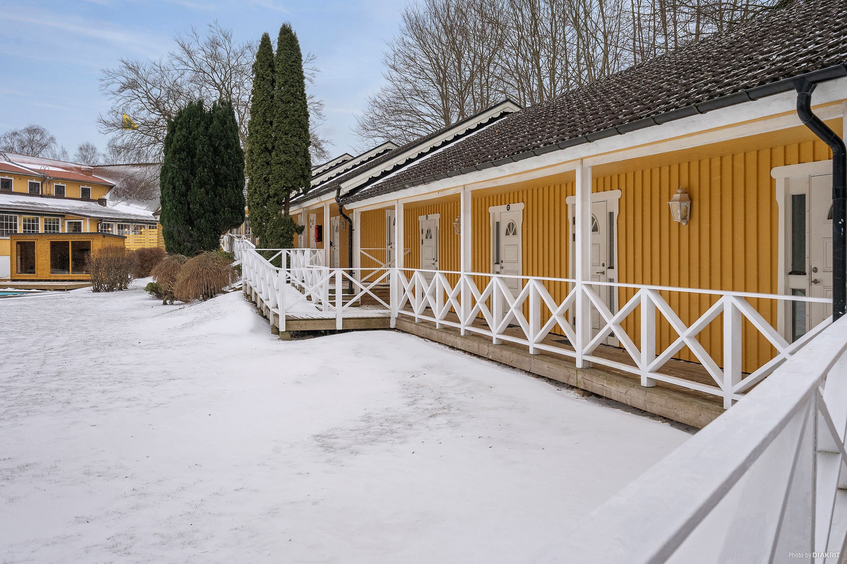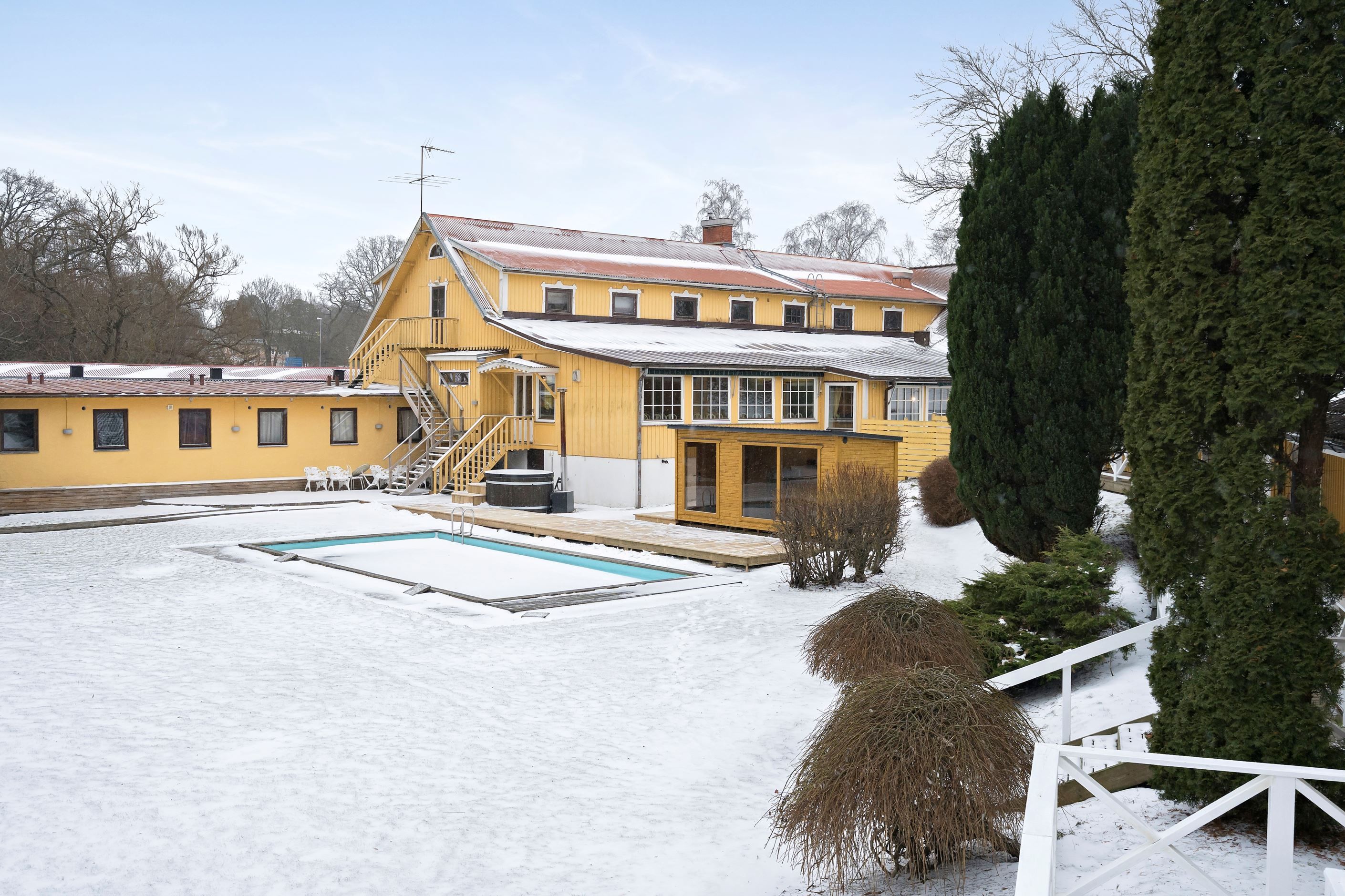 Utöver detta finns 33 brukbara hotellrum fördelade i tre separata längor samt en större konferenssal, vilket ger mycket goda förutsättningar för större arrangemang såsom bröllop, konferenser och weekendpaket. Hela 22 av rummen har under senare tid renoverats med nya ytskikt, vilket ger ett modernt och välkomnande intryck och minimerar behovet av ytterligare investeringar på kort sikt.