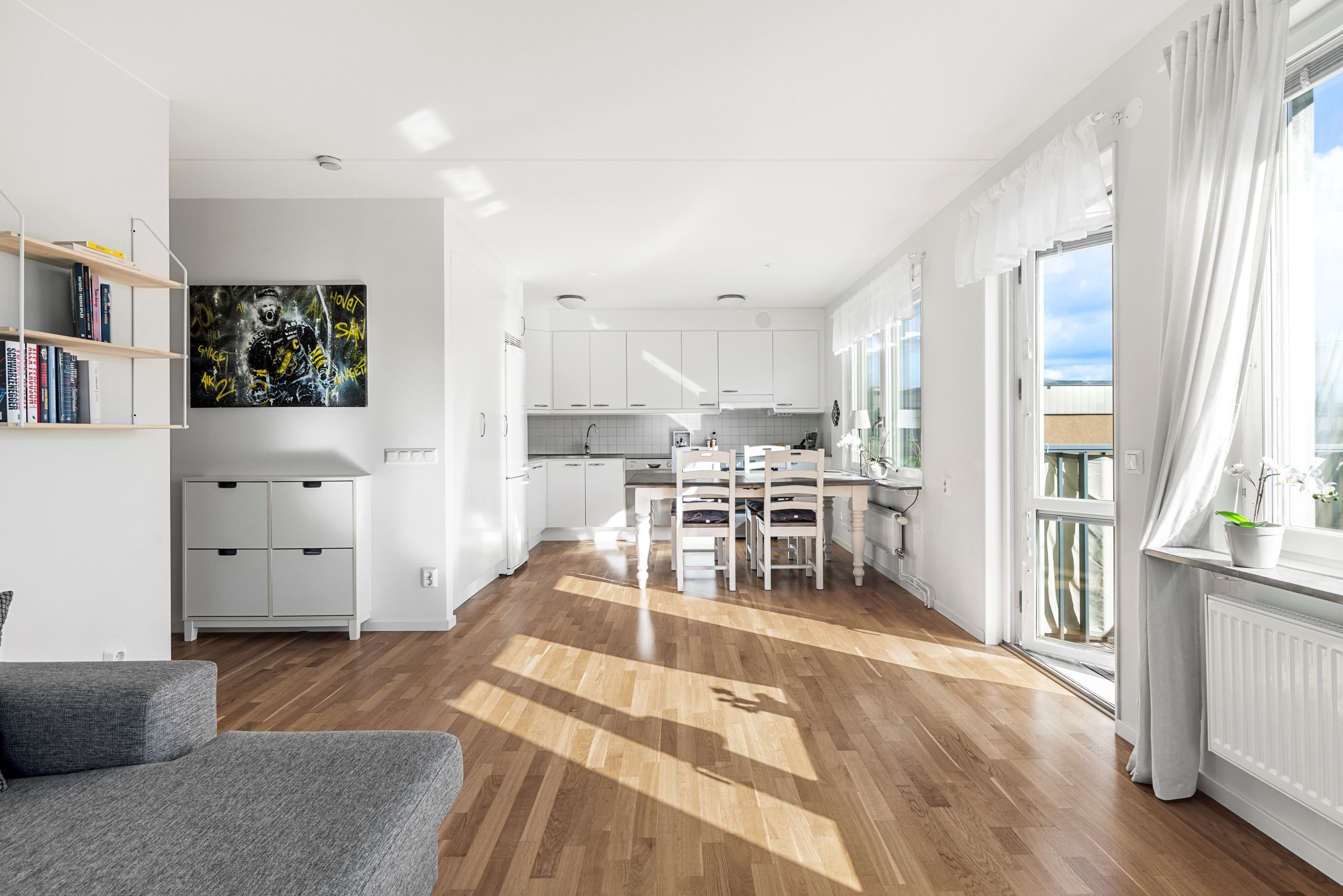 Nu är det äntligen dags att få presentera områdets kanske fräschaste 2:a med en genomtänk planlösning i en öppen planlösning där varje kvm har utnyttjas. Här bor du i moderna färg/material-tillval i ett av områdets absolut bästa läge. Rymlig balkong i söderläge med sol från morgon till kväll som även erbjuder en härlig utsikt över grönskan, ett stort helkaklat badrum med tvättmaskin, torktumlare och golvvärme samt stilrent kök med goda arbetsytor. Genomgående ekparkettgolv och ljust målade väggar. Ett hem att längta hem till helt enkelt!