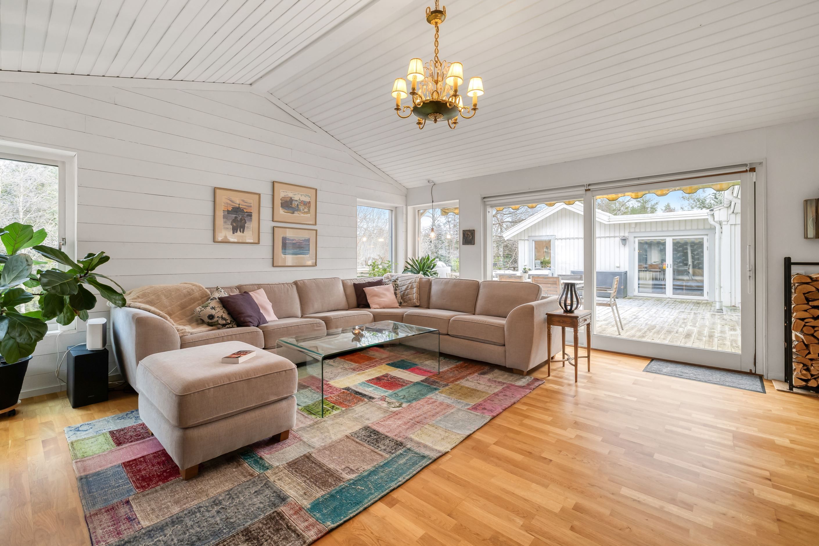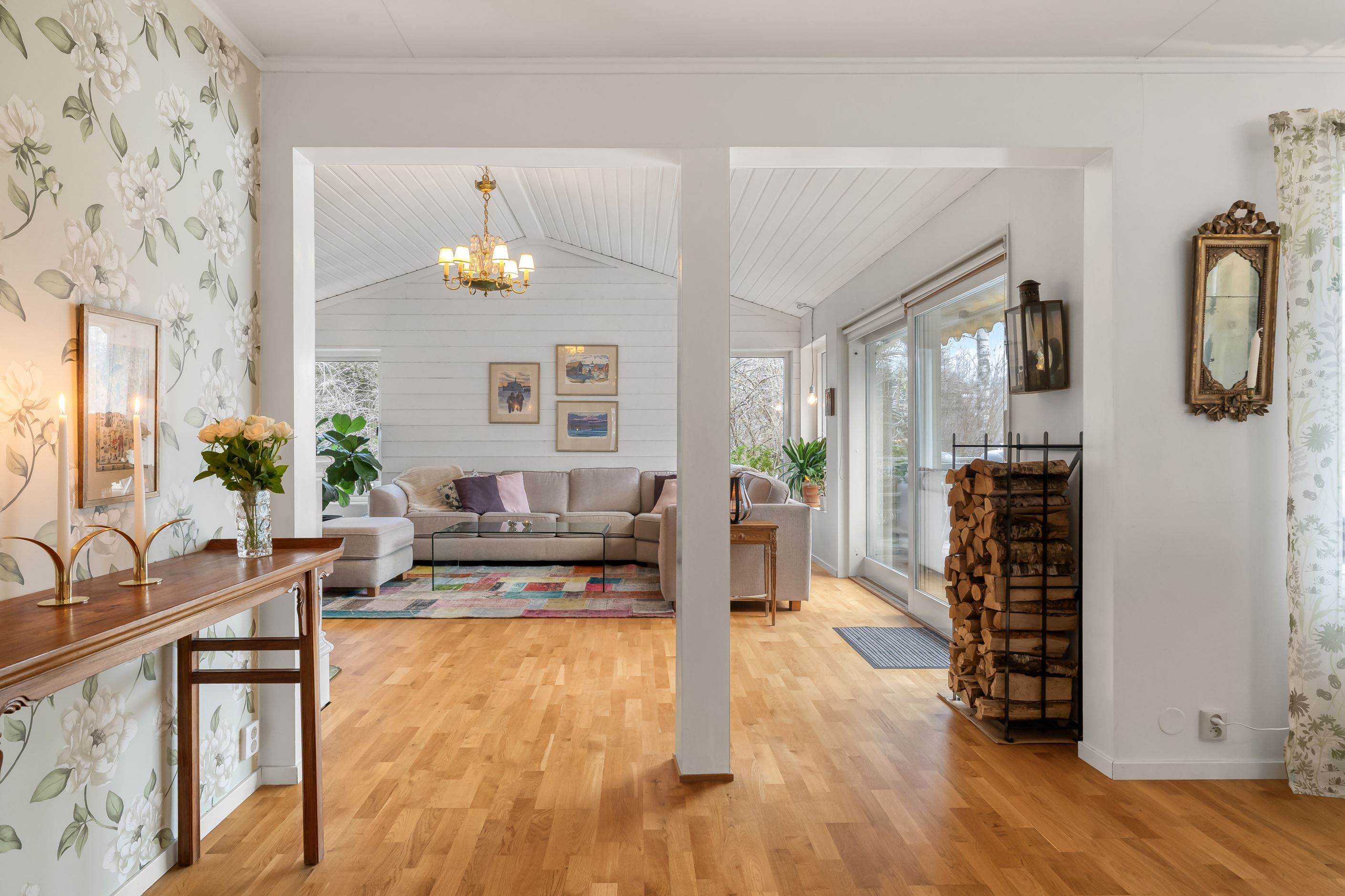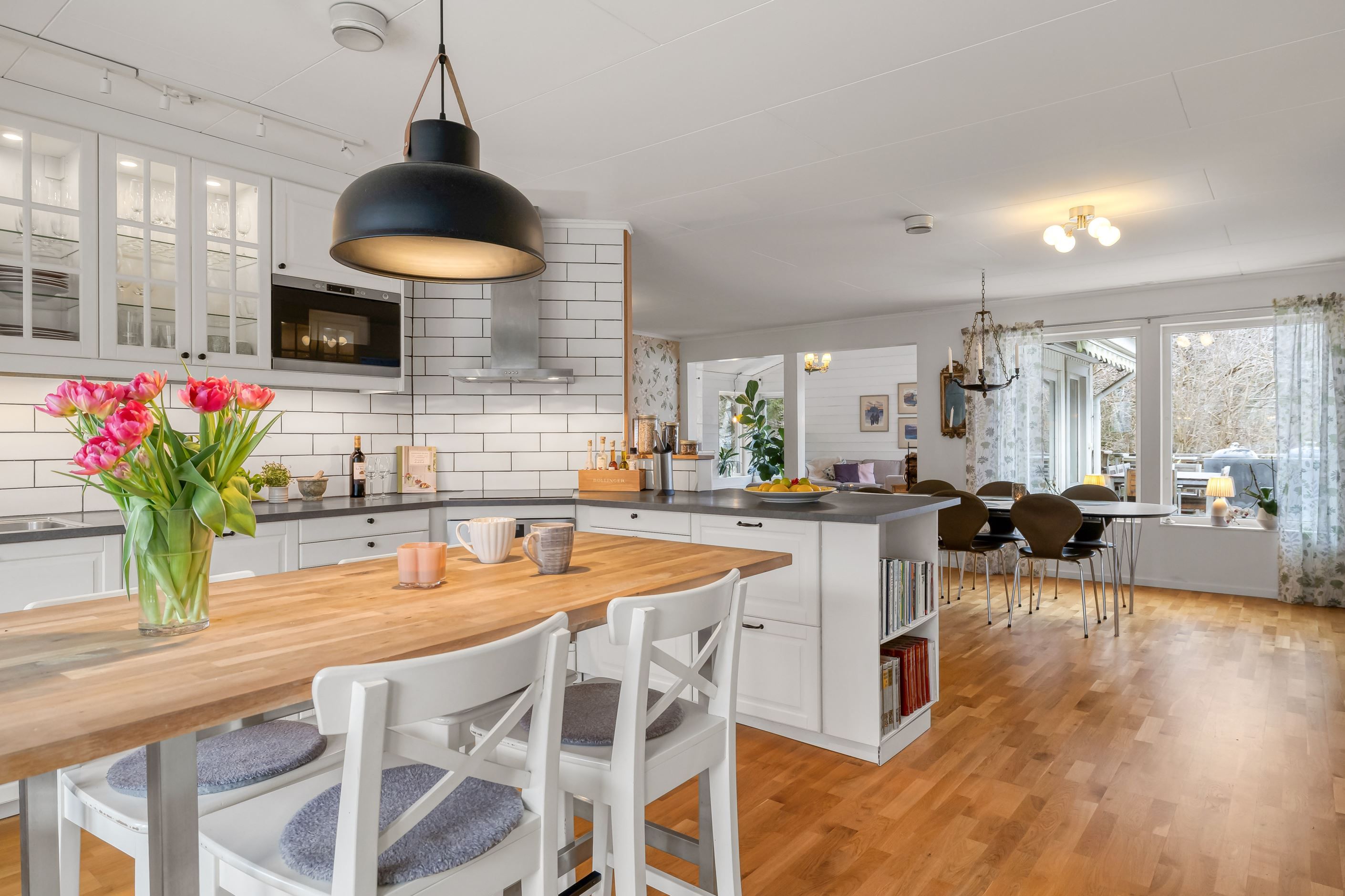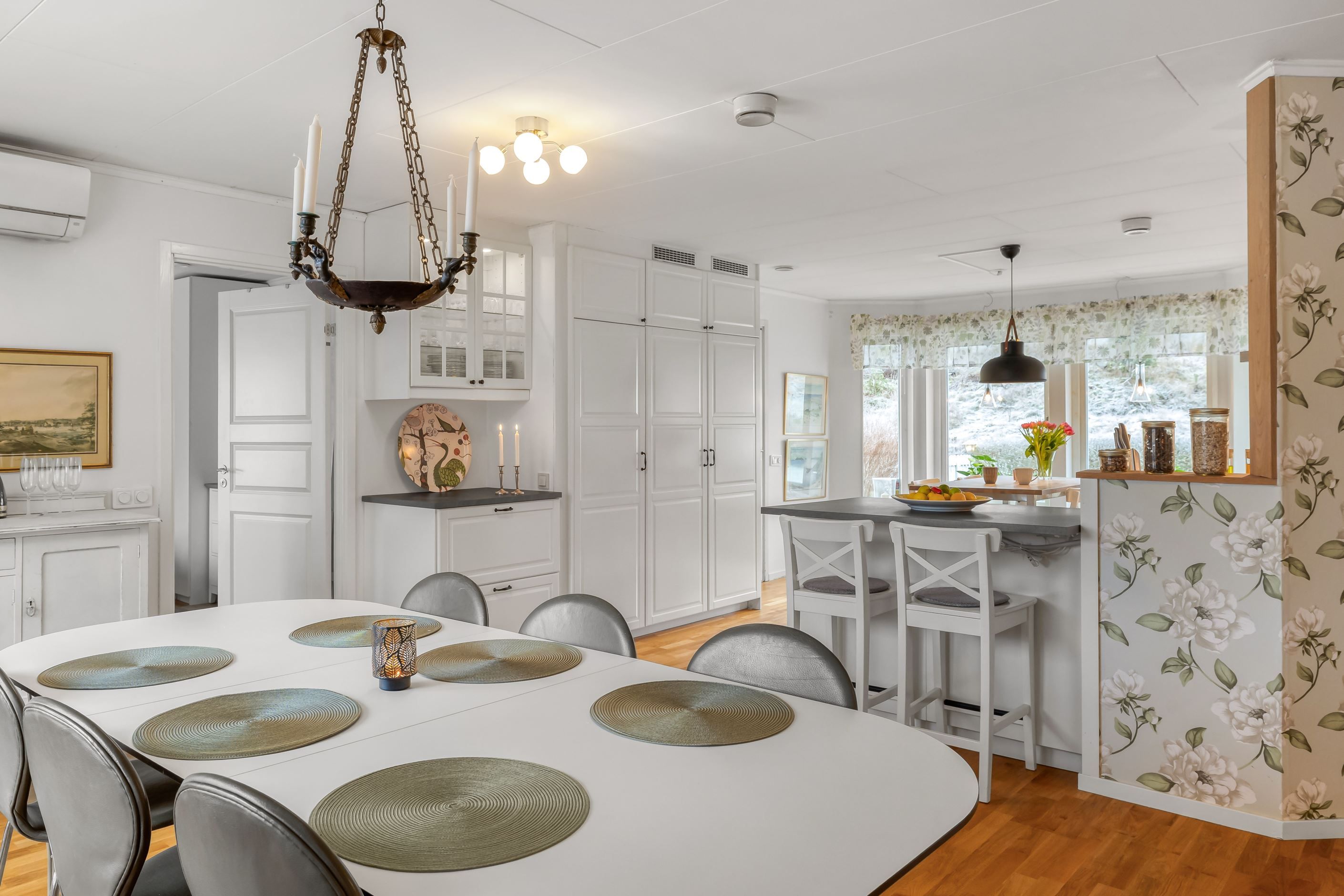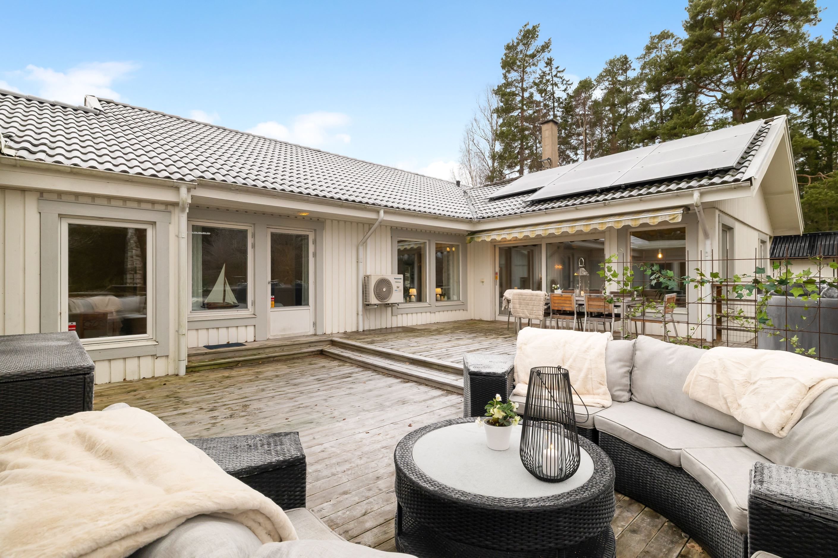 Huset erbjuder hela 7 sovrum, 3 badrum, allrum samt öppen planlösning mellan kök och vardagsrum, som har vacker kakelugn och härlig takhöjd – ett socialt och välplanerat hem där både vardag och fest får plats. Den stora samvaroytan är perfekt för underbara middagar, sommarkvällar och stora fester med familj och vänner.