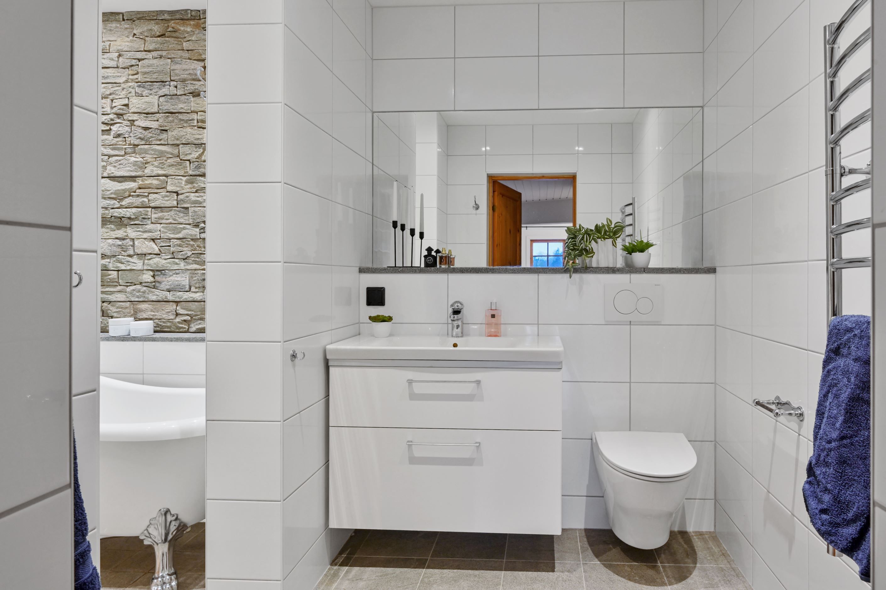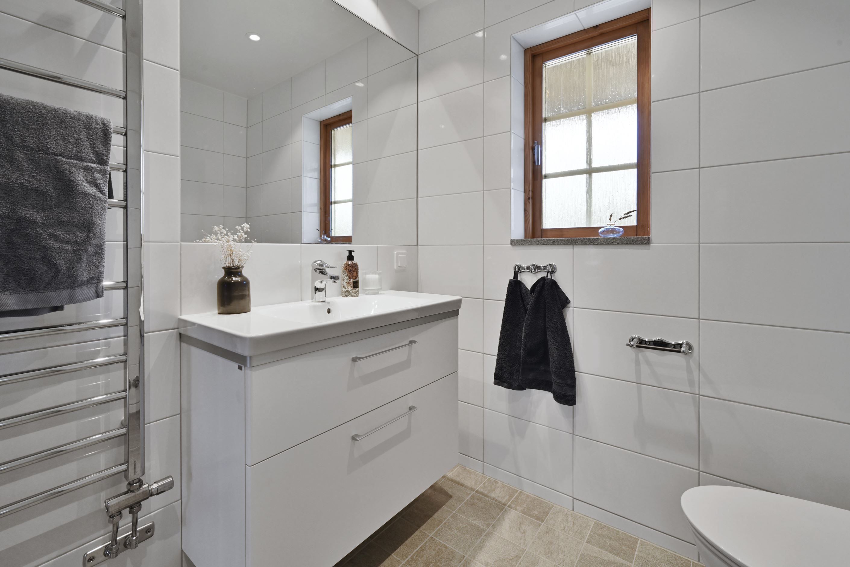 Badrummet renoverades 2022 och erbjuder en modern och fräsch känsla, liksom den praktiska groventrén som även den uppdaterades samma år. Här finns genomgående ett väl omhändertaget intryck där varje detalj är omsorgsfullt vald. På nedre plan återfinns ett magiskt spabadrum, renoverat 2018 med bastu, dusch och badkar samt ytterligare en separat toalett. I övrigt finns galet bra förvaringsmöjligheter.