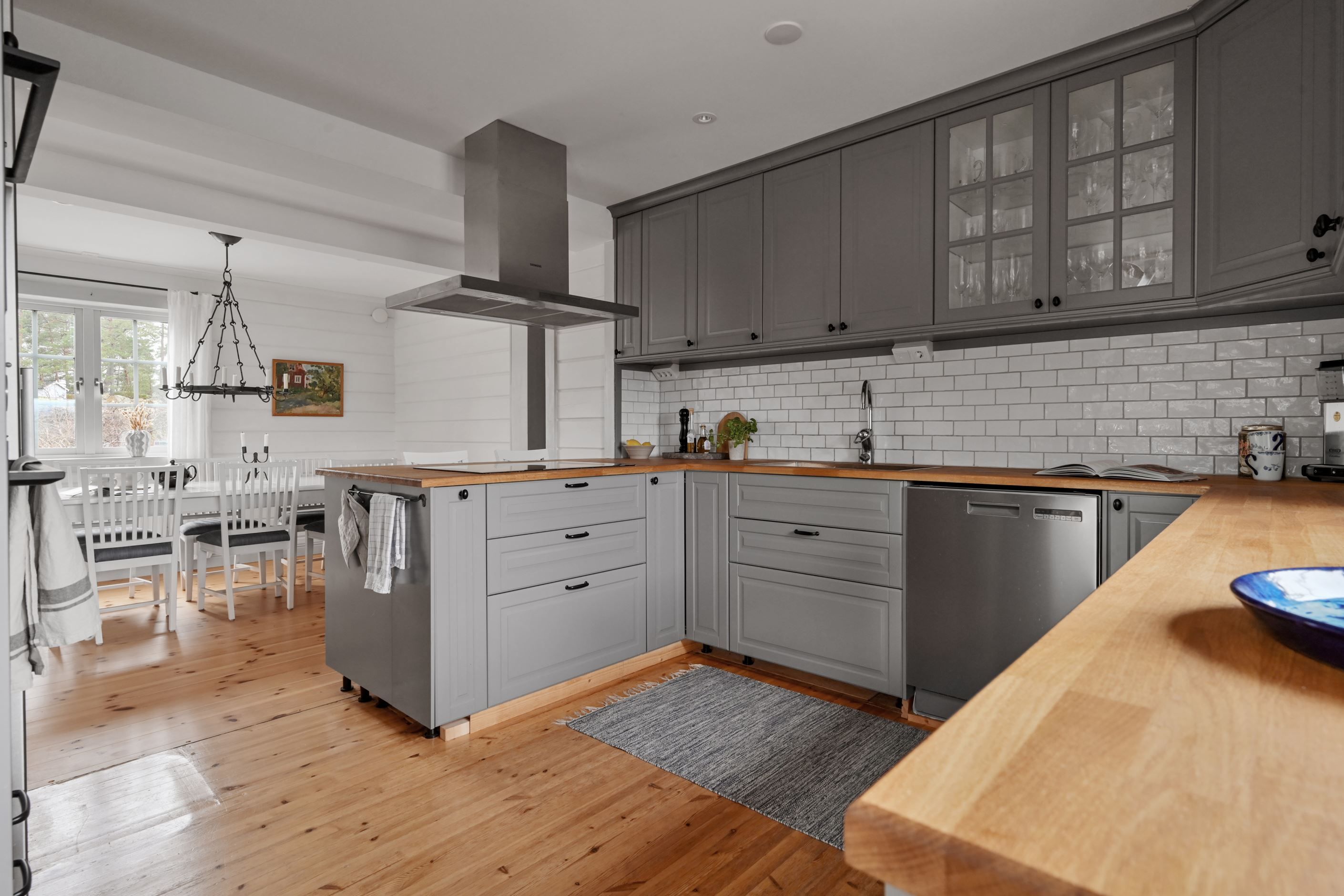 Matplats i anslutning till vardagsrummet och köket