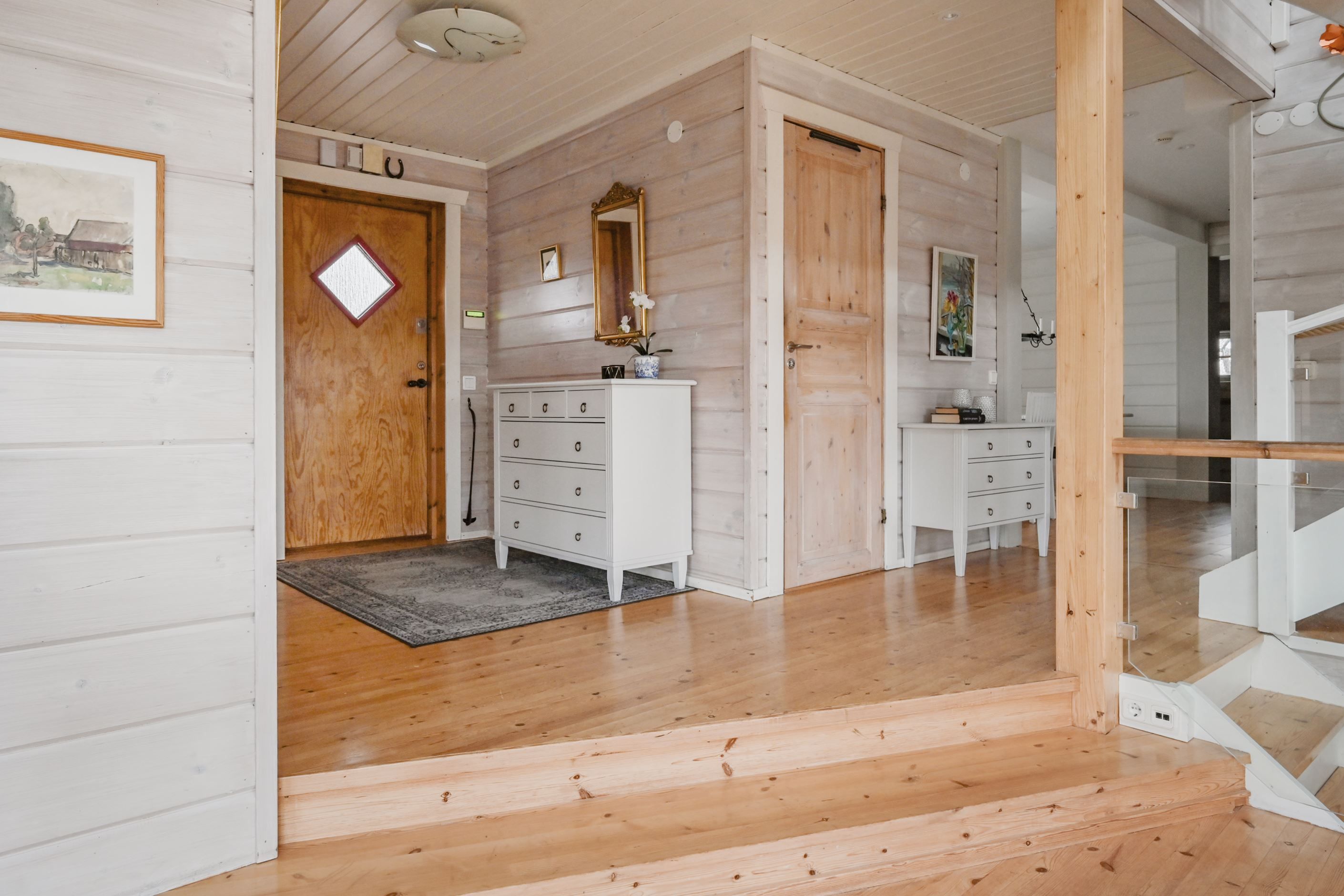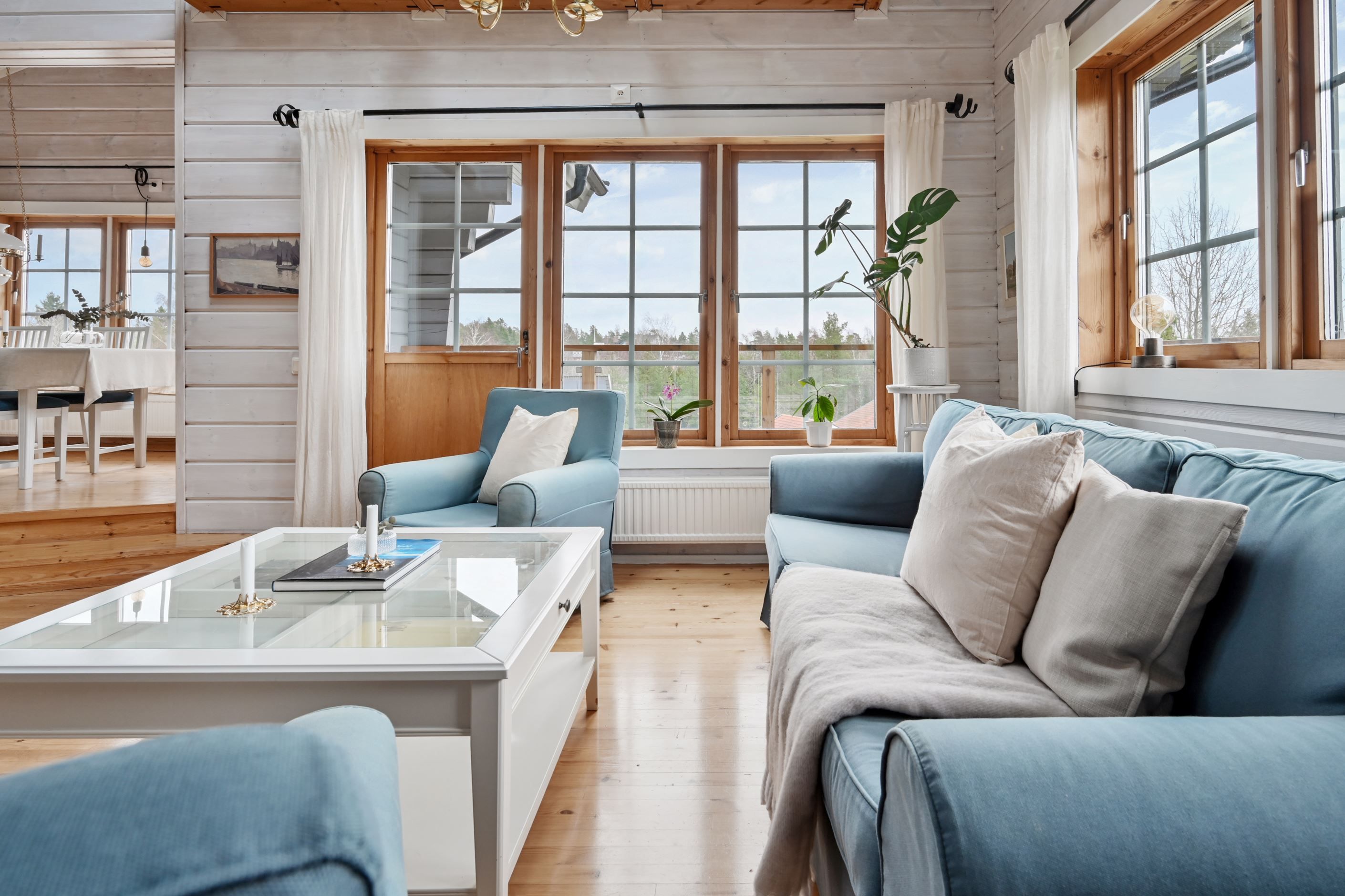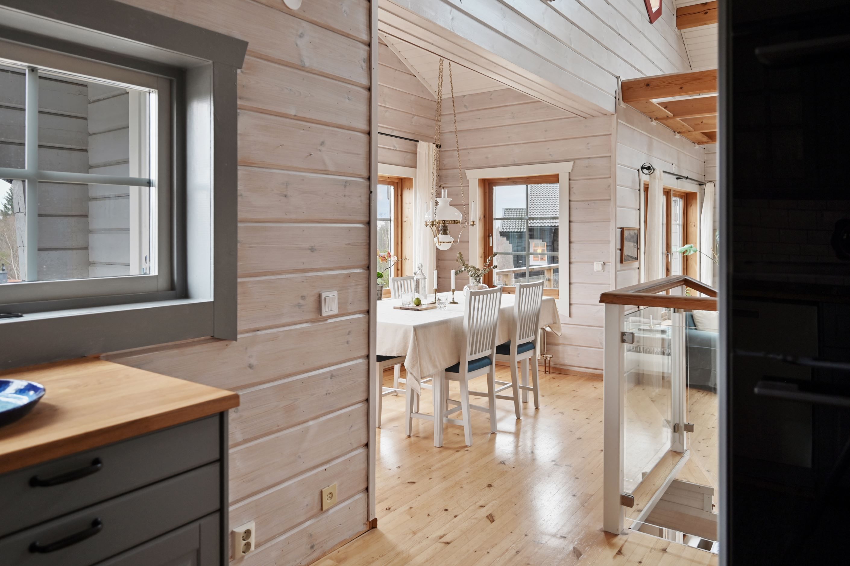 Huset bjuder på öppna och sociala ytor där kök och vardagsrum möts i en inbjudande planlösning. Det stilrena köket renoverades 2022 och är utformat för både matlagning och umgänge. Vardagsrummet präglas av hög takhöjd och ett härligt ljusinsläpp som skapar en luftig och trivsam atmosfär. Här finns gott om plats för större sällskap och två naturliga matplatser som gör hemmet perfekt för både familjeliv och middagar med vänner.