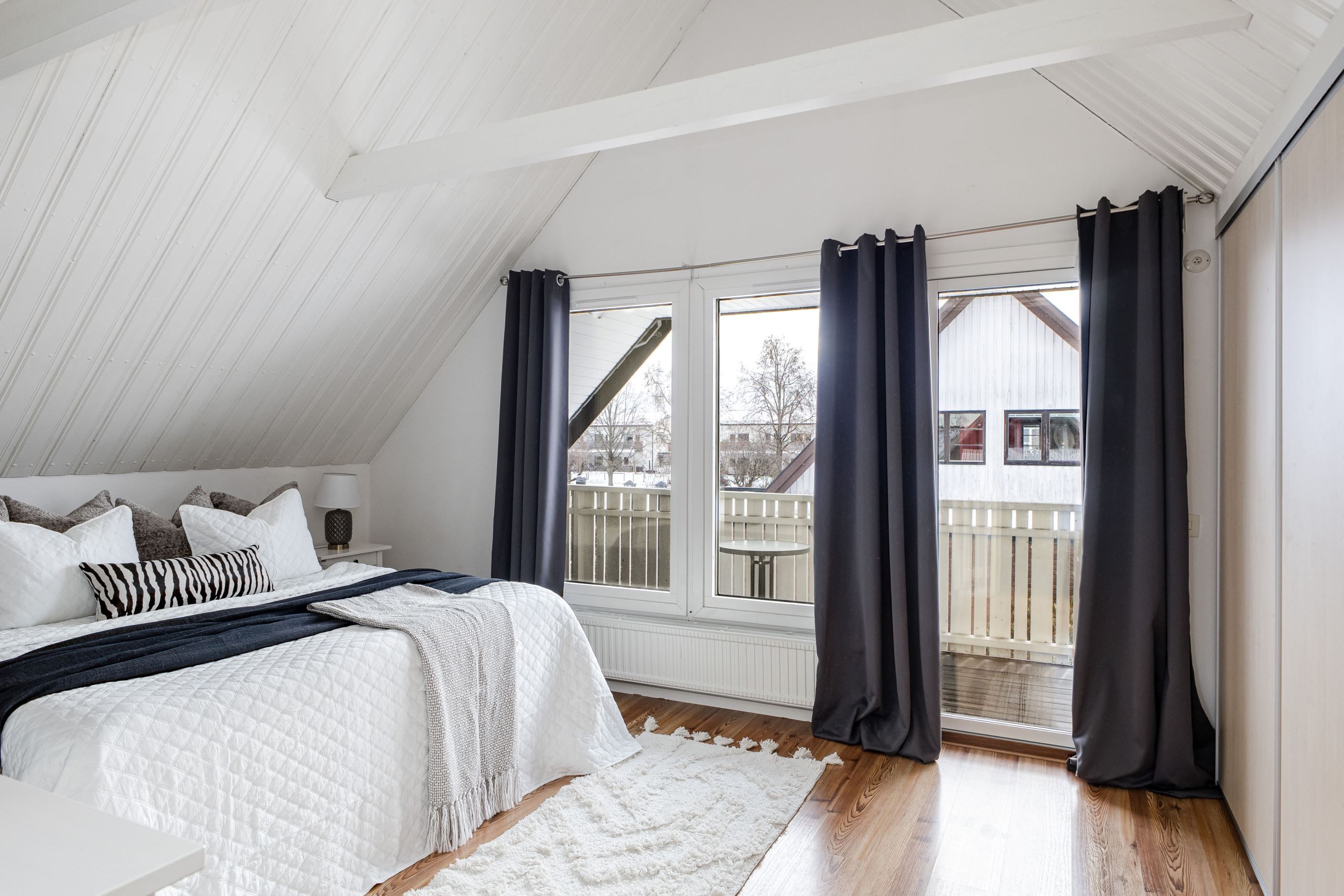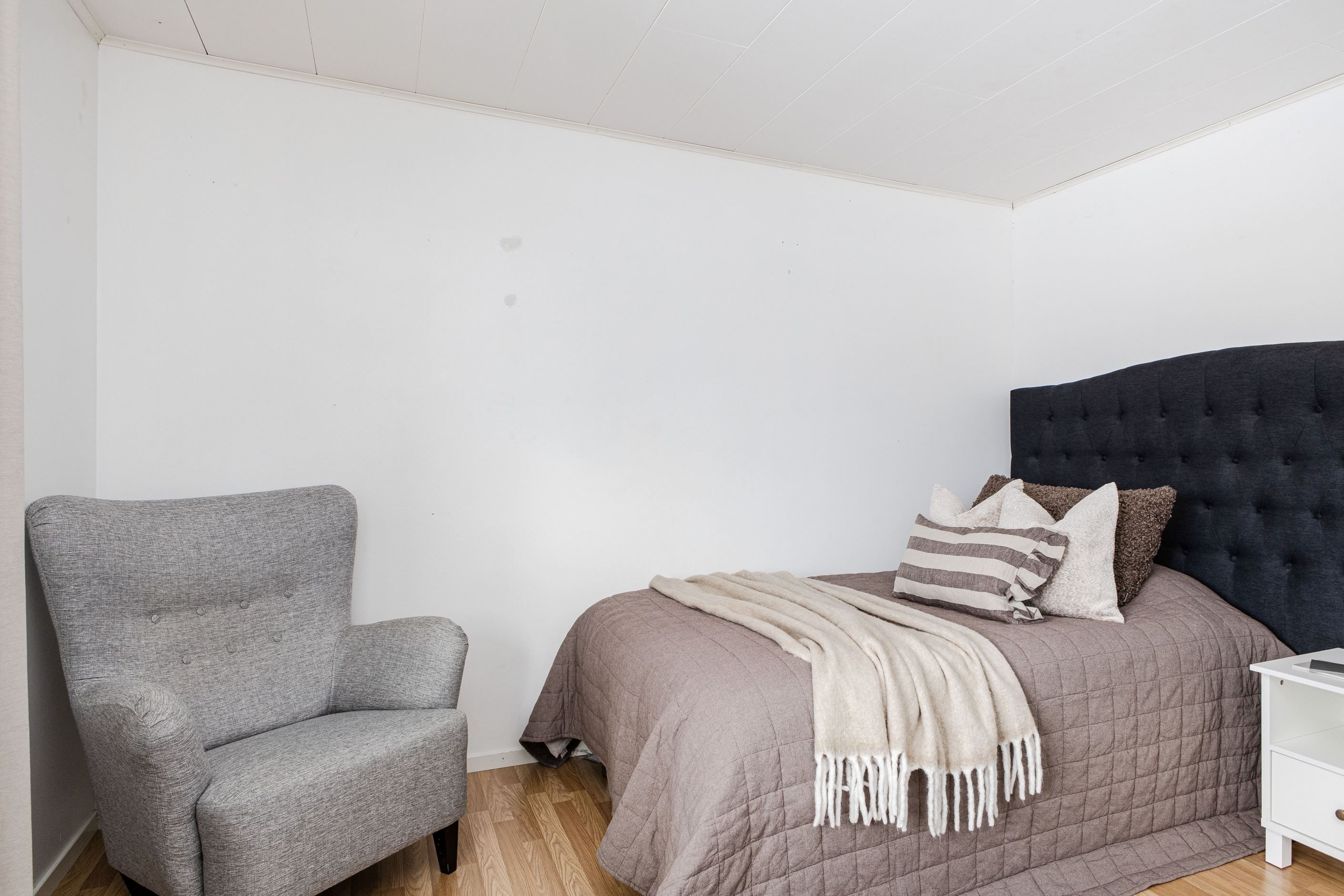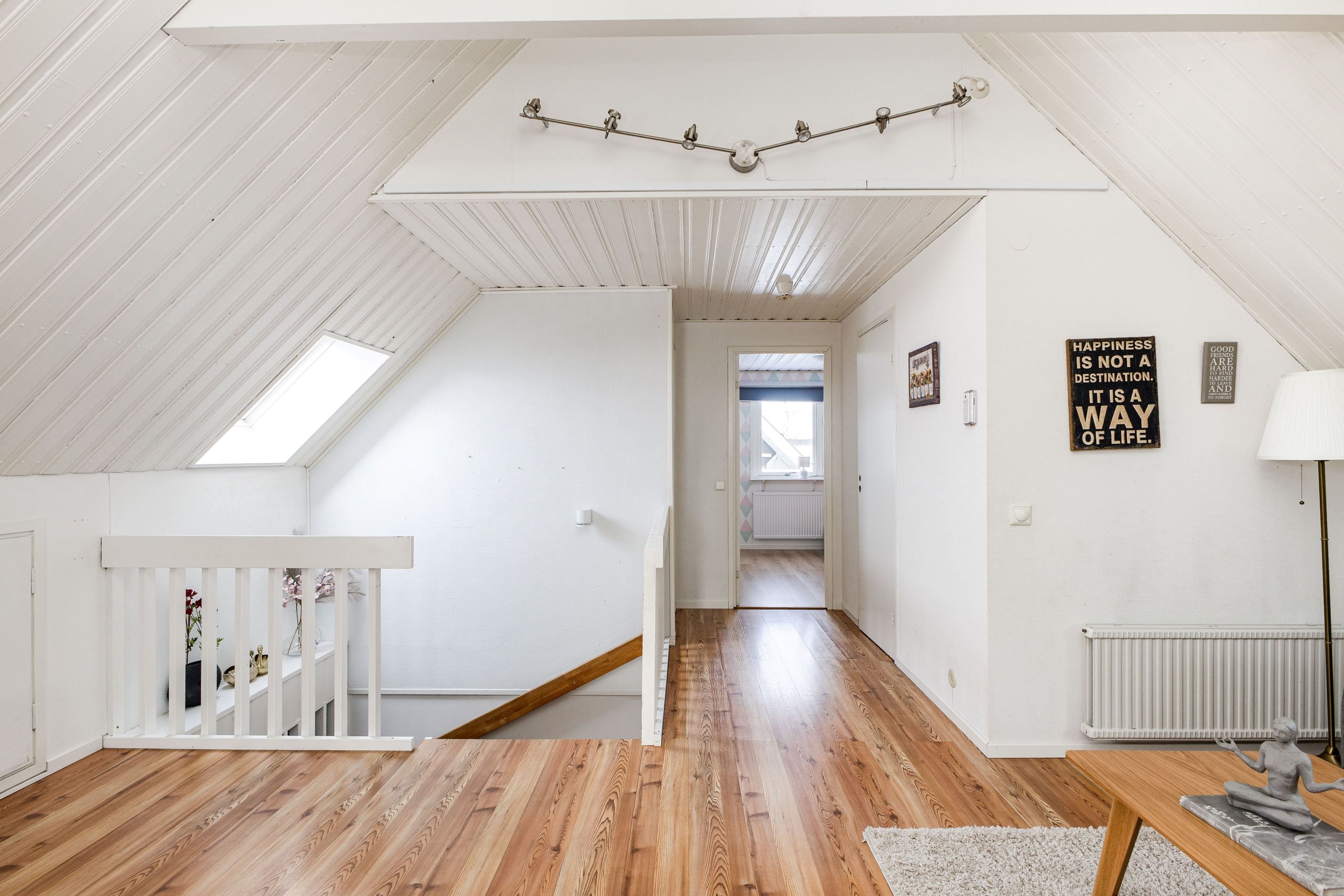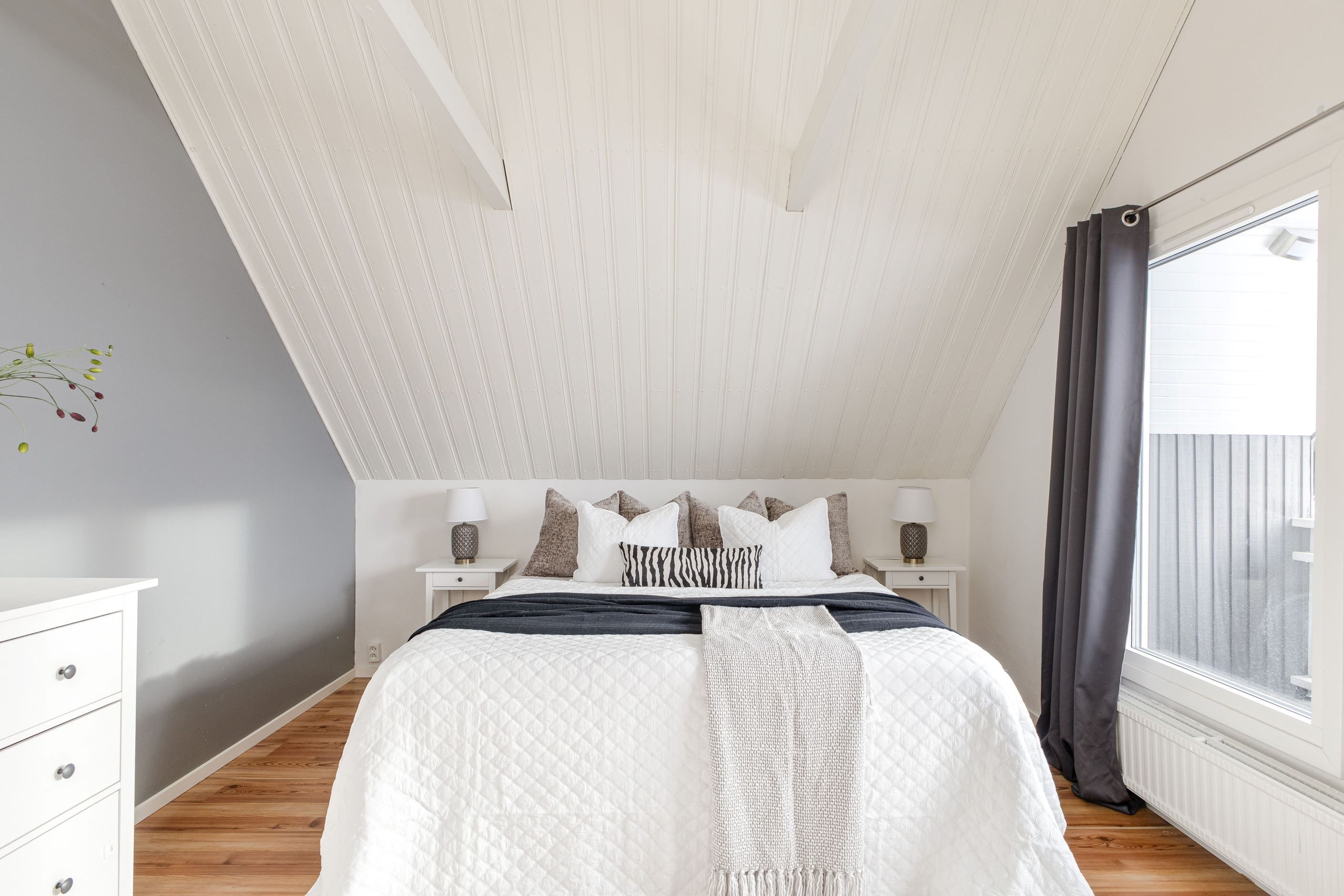 På övre plan finns ett trivsamt allrum samt tre rymliga sovrum som med fördel kan användas som sovrum, gästrum eller hemmakontor. Här finns även ett badrum utrustat med kommod, wc och badkar.