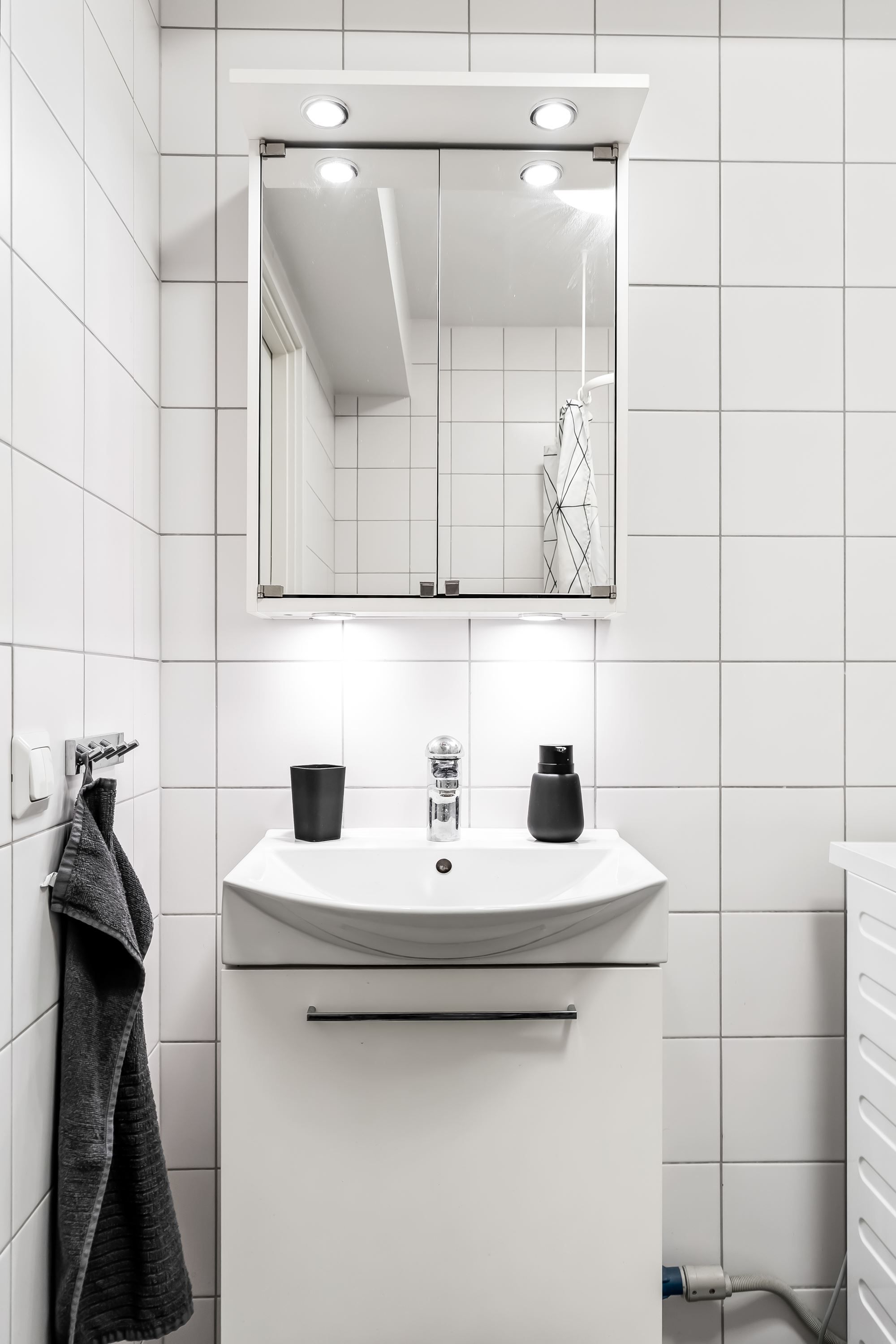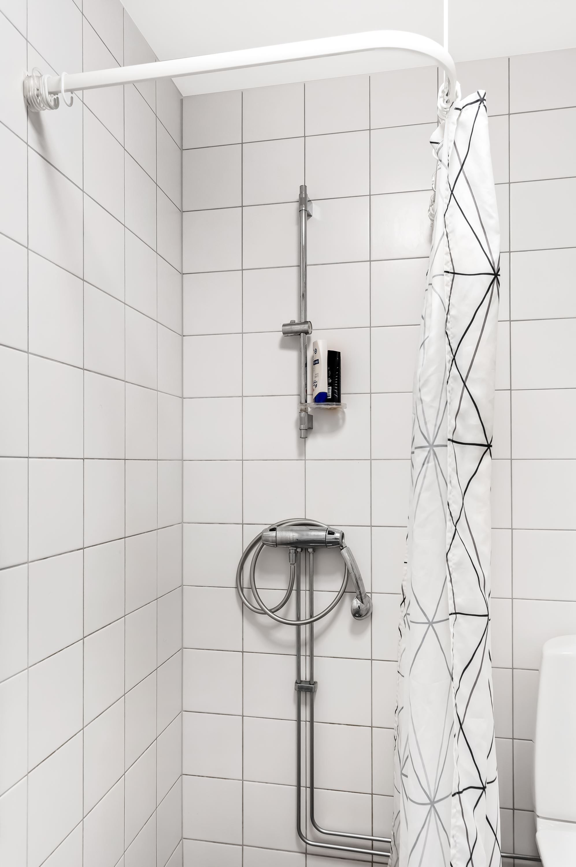 Köket är utrustat med integrerad mikro, spis, fläkt, diskmaskin, kyl/frys samt ugn. Vidare finner ni ett fräscht helkaklat badrum med klinkergolv utrustat med kombinerad tvättmaskin/torktumlare.
