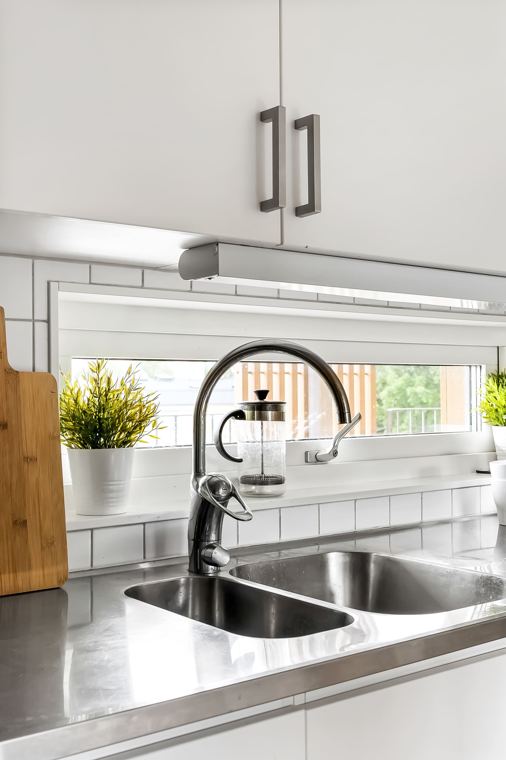 Modernt och välplanerat kök med bra förvaringsmöjligheter samt en generös arbetsyta där goda måltider kan tillagas. Ovanför arbetsytan har ni ett trevligt fönster som bidrar till extra ljusinflöde i bostaden. Mellan köket och allrummet finns plats för matgrupp att samlas runt med nära och kära för goda middagar och trevliga tillställningar.