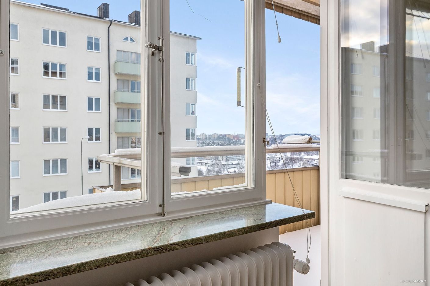 Visning 14/2 och 15/2! Med utsikt över takåsar och ned mot Karlbergs slott ligger denna trivsamma bostad. Skicket är bra med ett badrum som är renoverat under 2020, fina golv och vitmålade väggar. Köket är äldre, men i bra skick, så här finns stor potential för den som vill flytta köket och göra om lägenheten till en välplanerad 2:a. Balkongen är mysig med gott om plats för utemöbler. Här kan man under sommaren njuta av solnedgången.