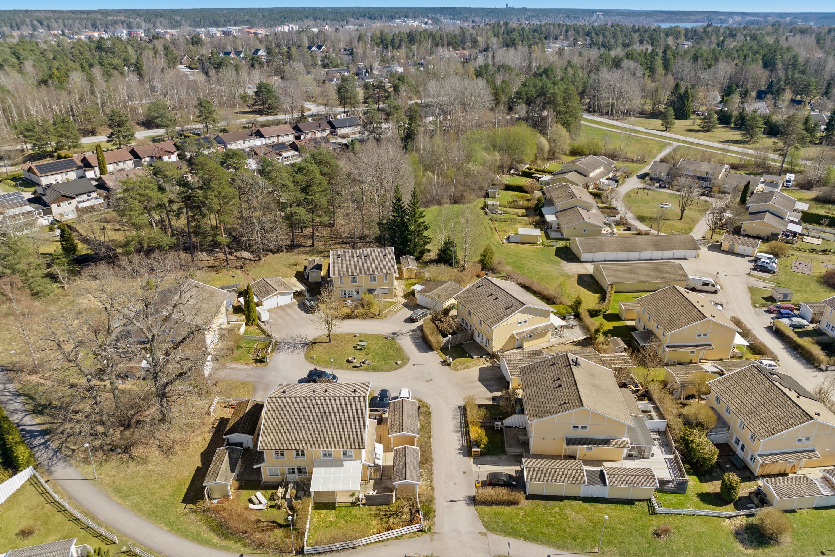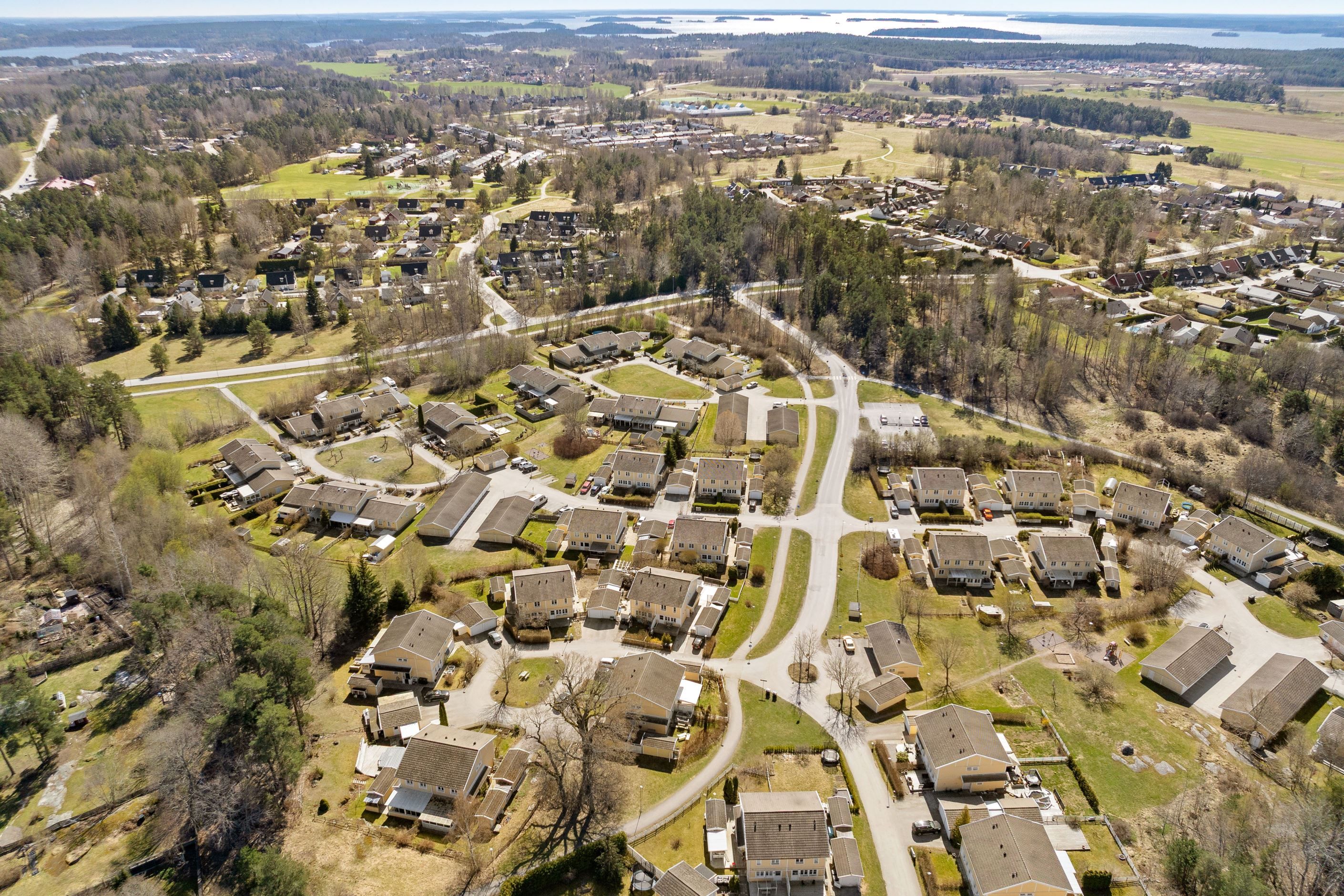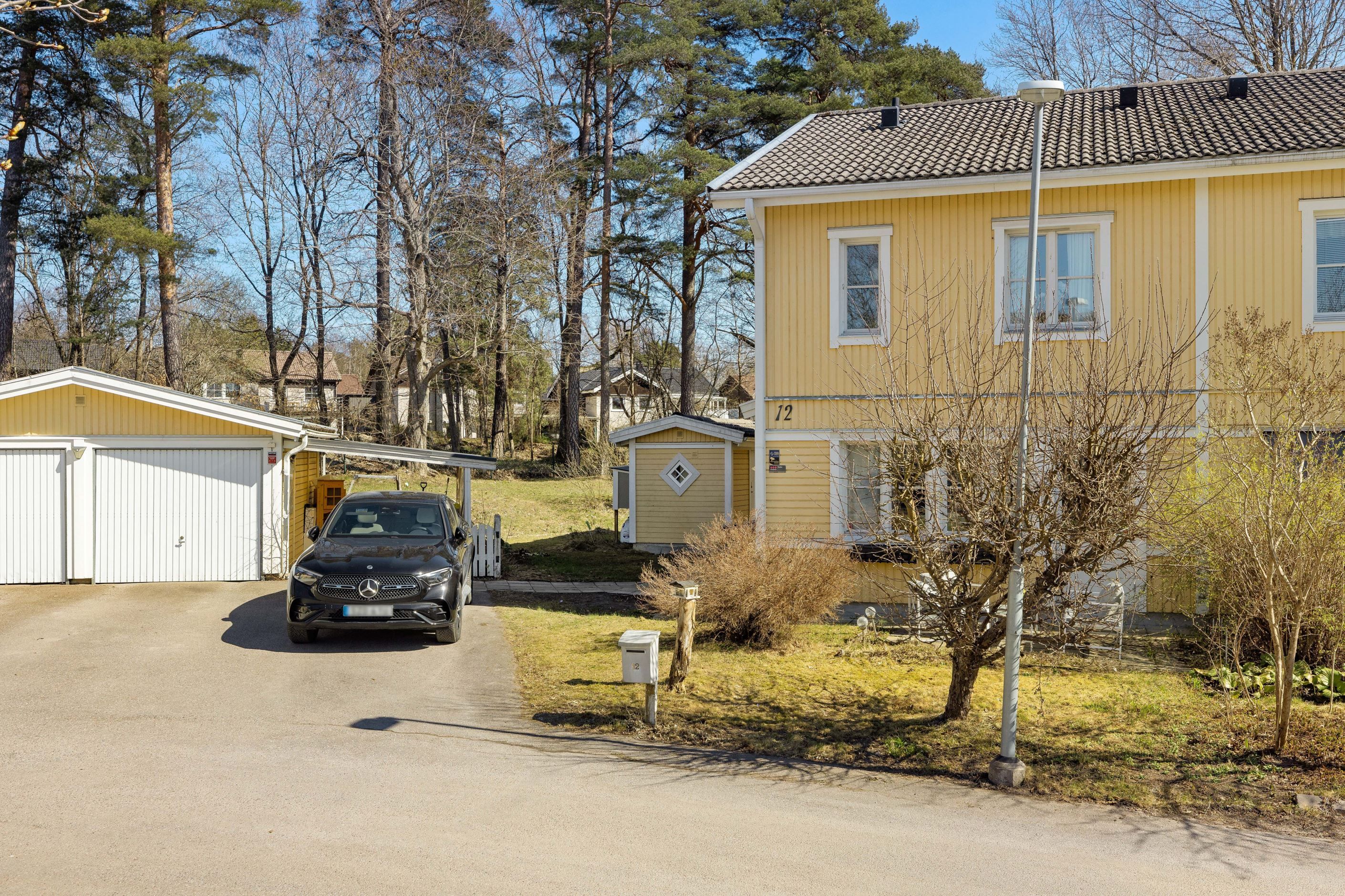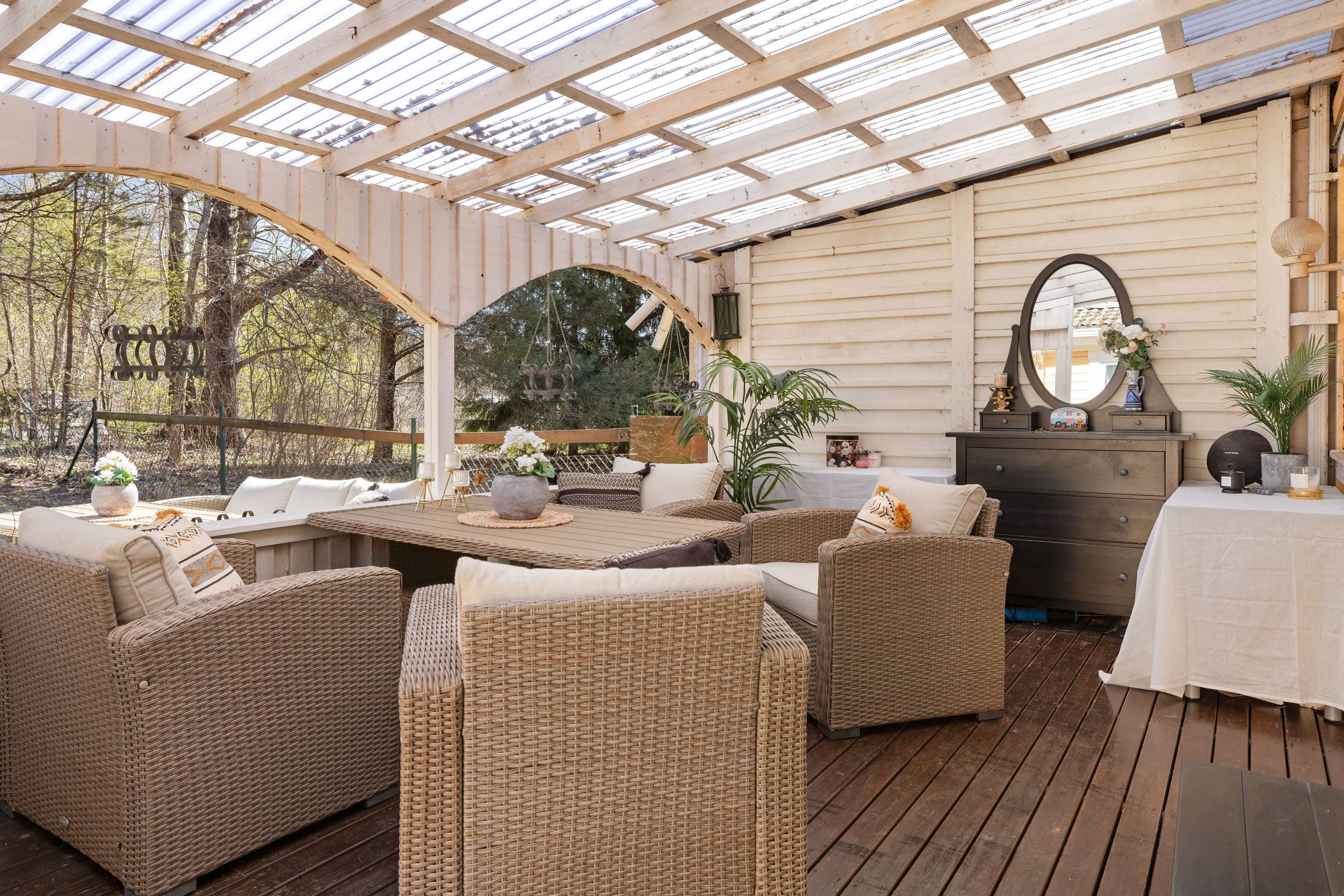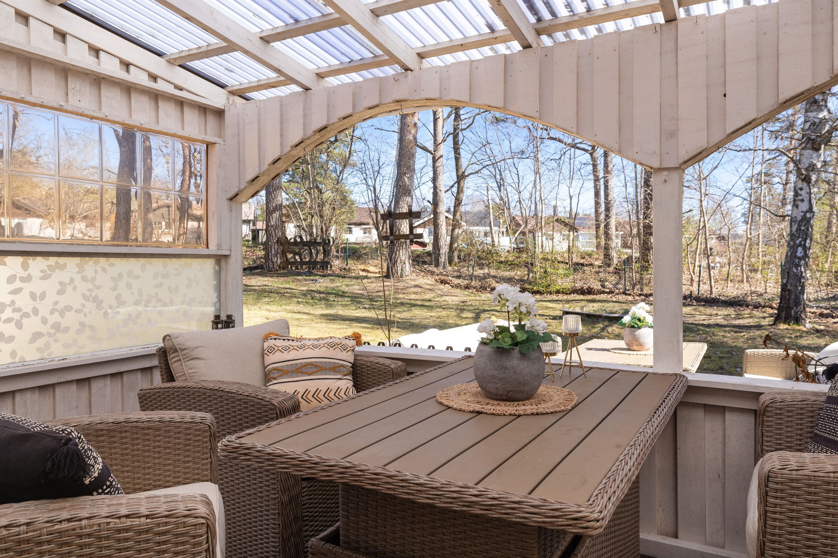 Från vardagsrummet finns en utgång till den insynsskyddade altanen under tak. Mysig och ombonad trädgård med gräsmatta. Här finns gott om plats för familjemiddagar och mycket lek & spring.
