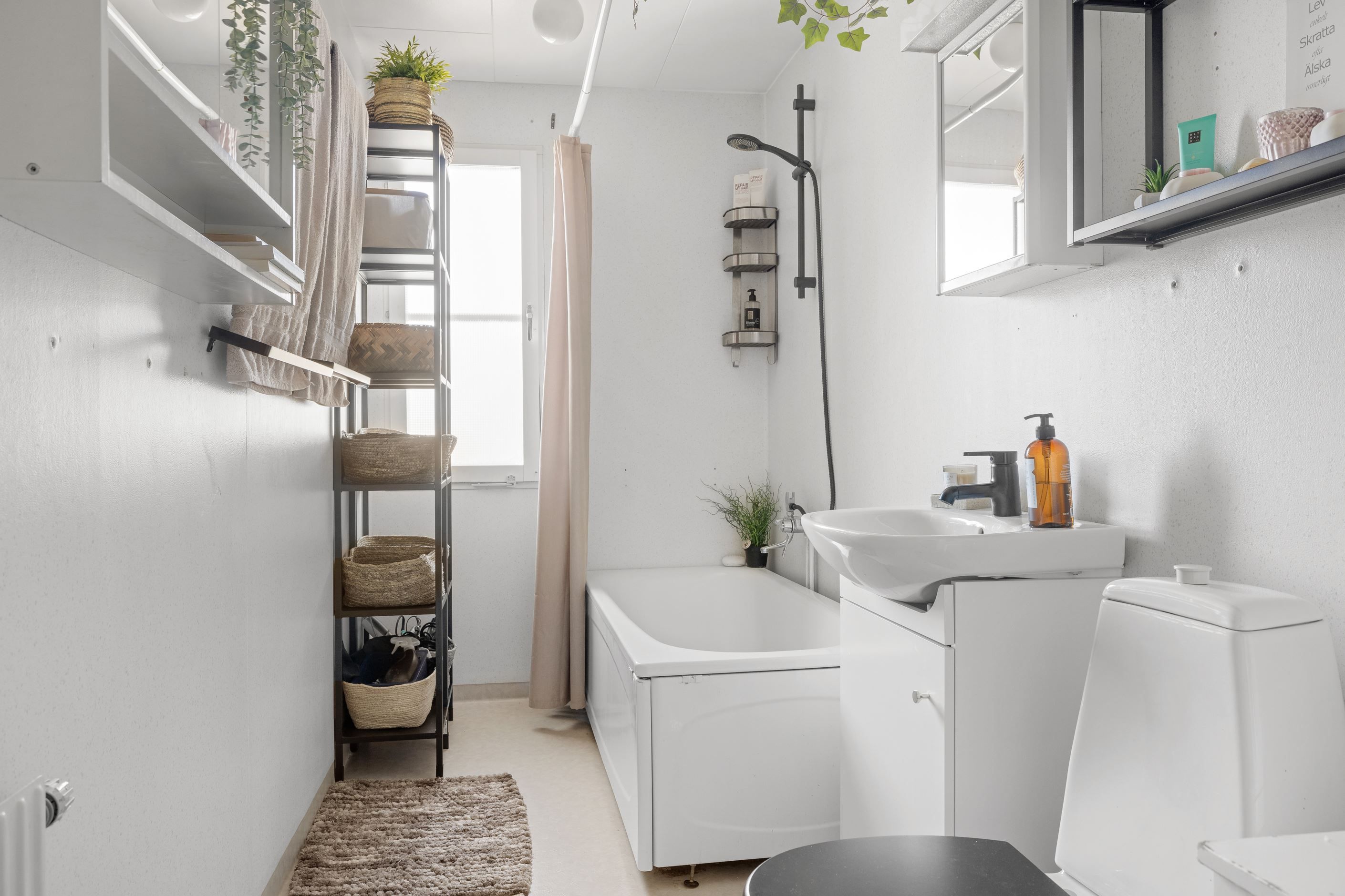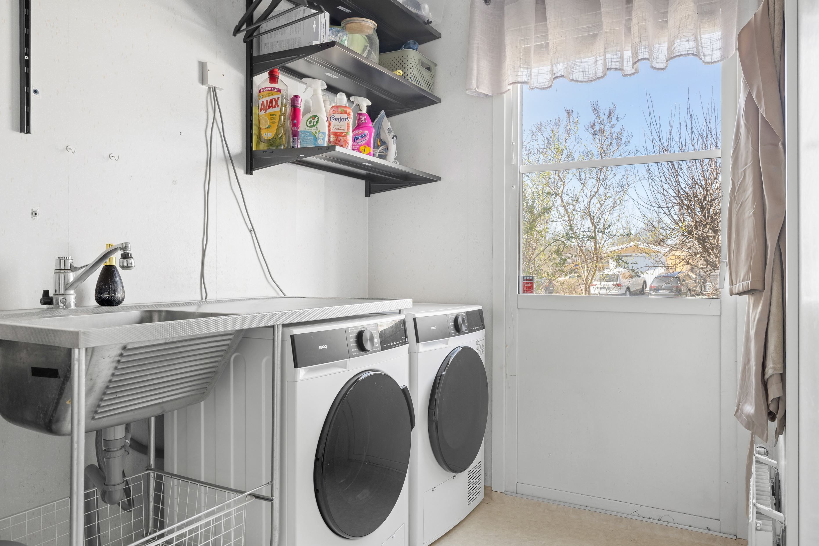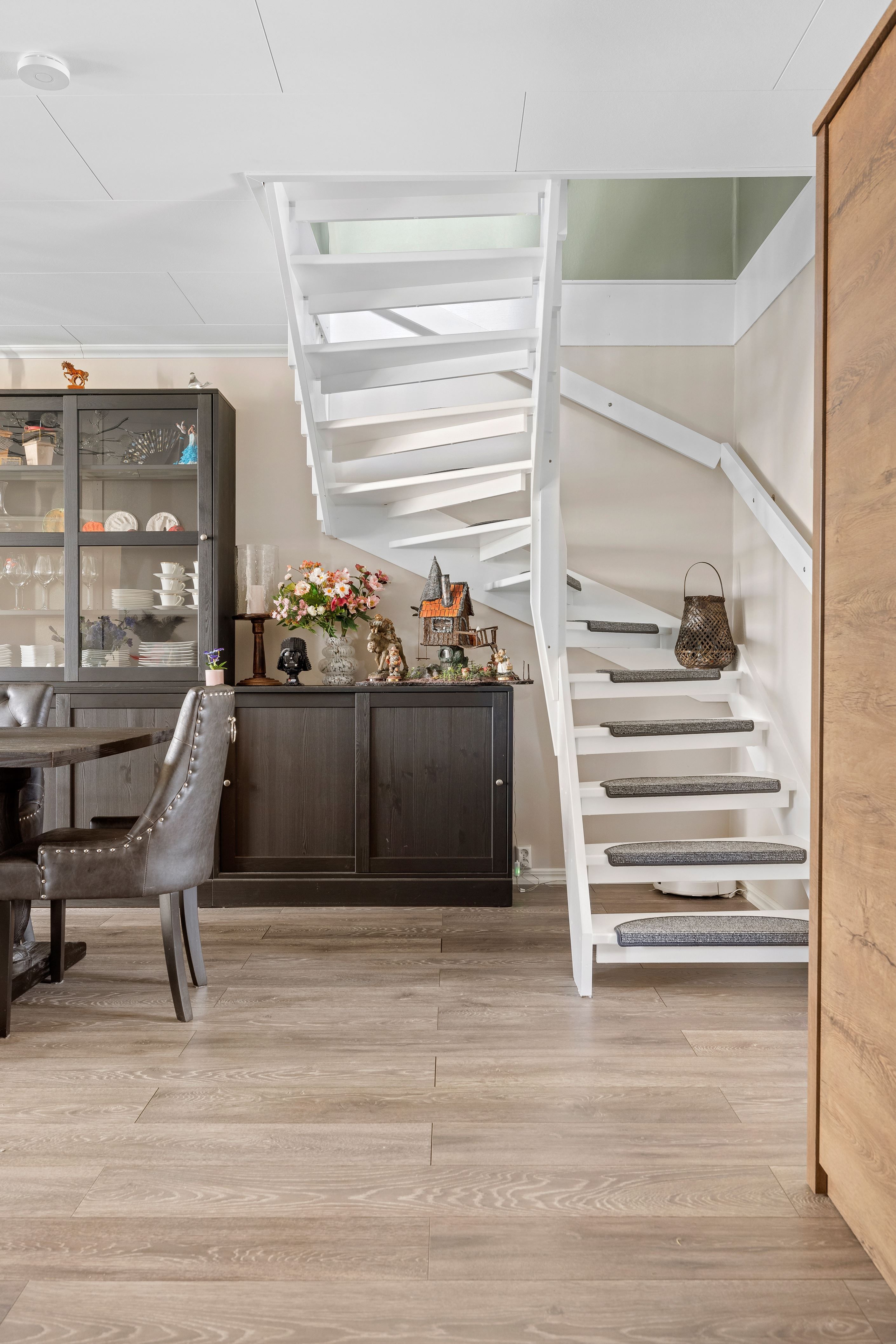 Denna bostad disponeras över två plan. Entréplan med en rymlig hall, fräscht och totalrenoverat kök och praktisk tvättstuga med groventré. Badrum med dusch samt generöst vardagsrum som kan, om så önskas delas av till ett 4:e sovrum om behov finnes. Bostaden har genomgående nya ytskikt och nya golv. Vidare totalrenoverat kök med härlig köksö samt inbyggda maskiner och mycket bra förvaring.