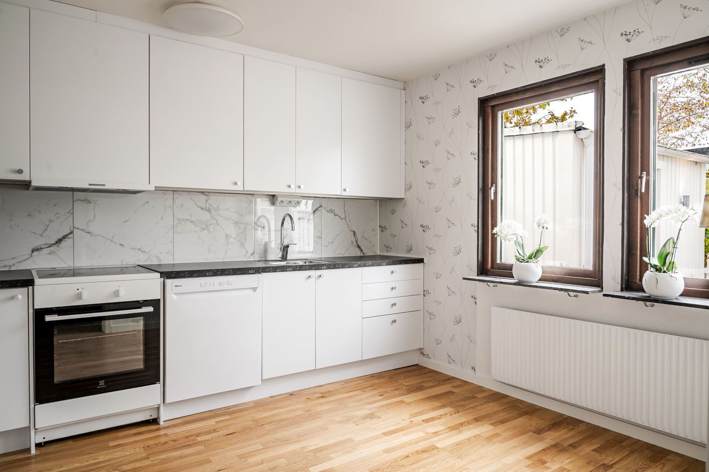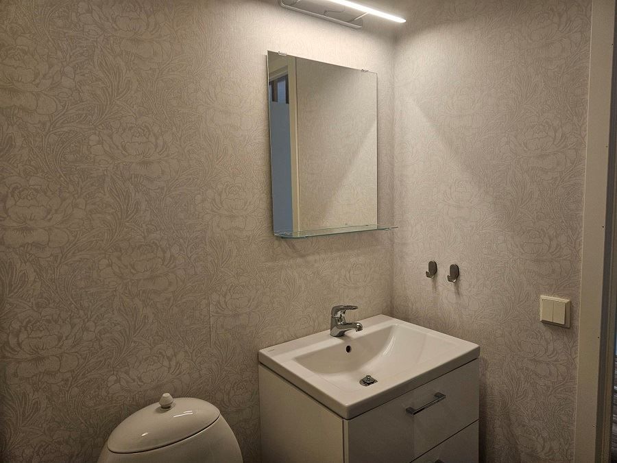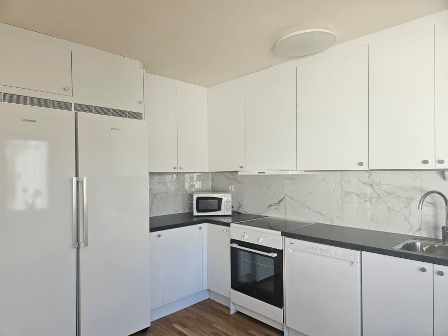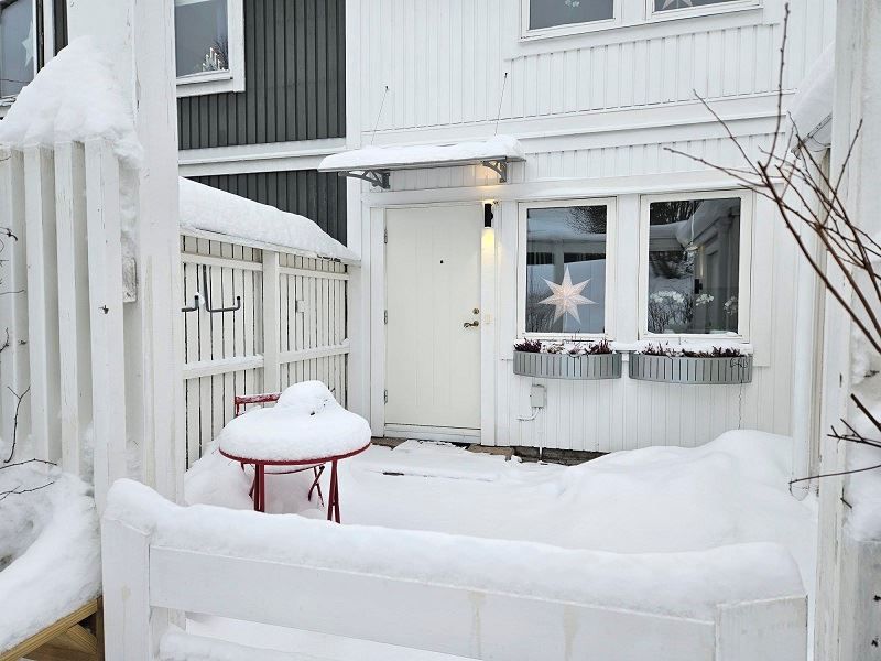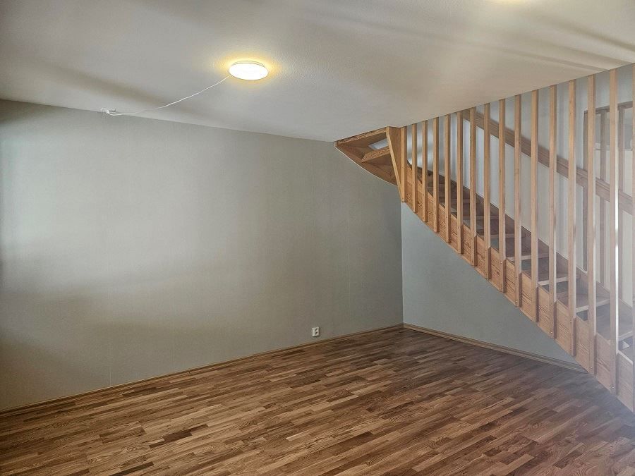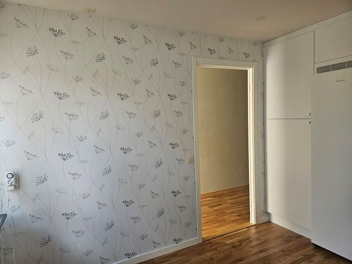 Nytt kök ink nya vitvaror (kyl, frys & spis ej från 2025), wc med klinkergolv, ekparkett i kök, hall och vardagsrum. Samtliga ytskikt golv, golvlister tapeter och målning nytt 2025.